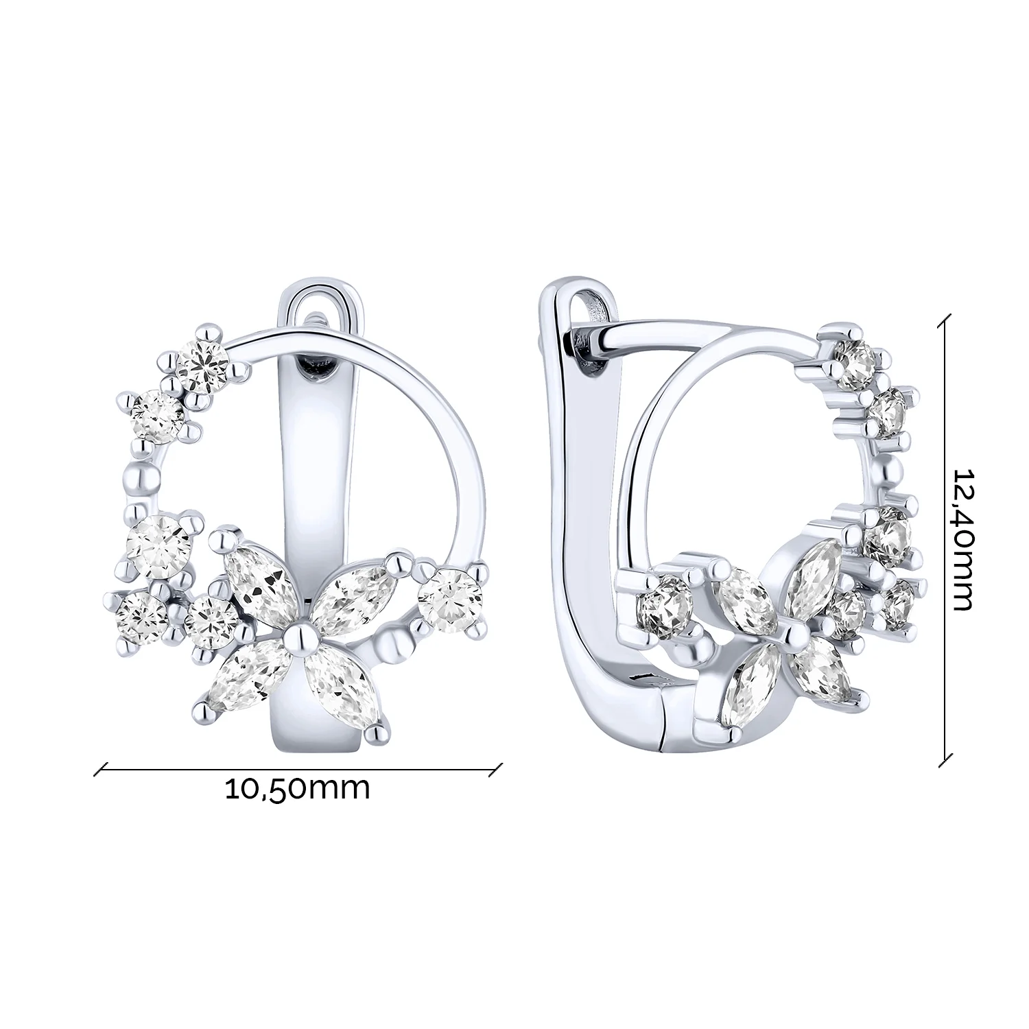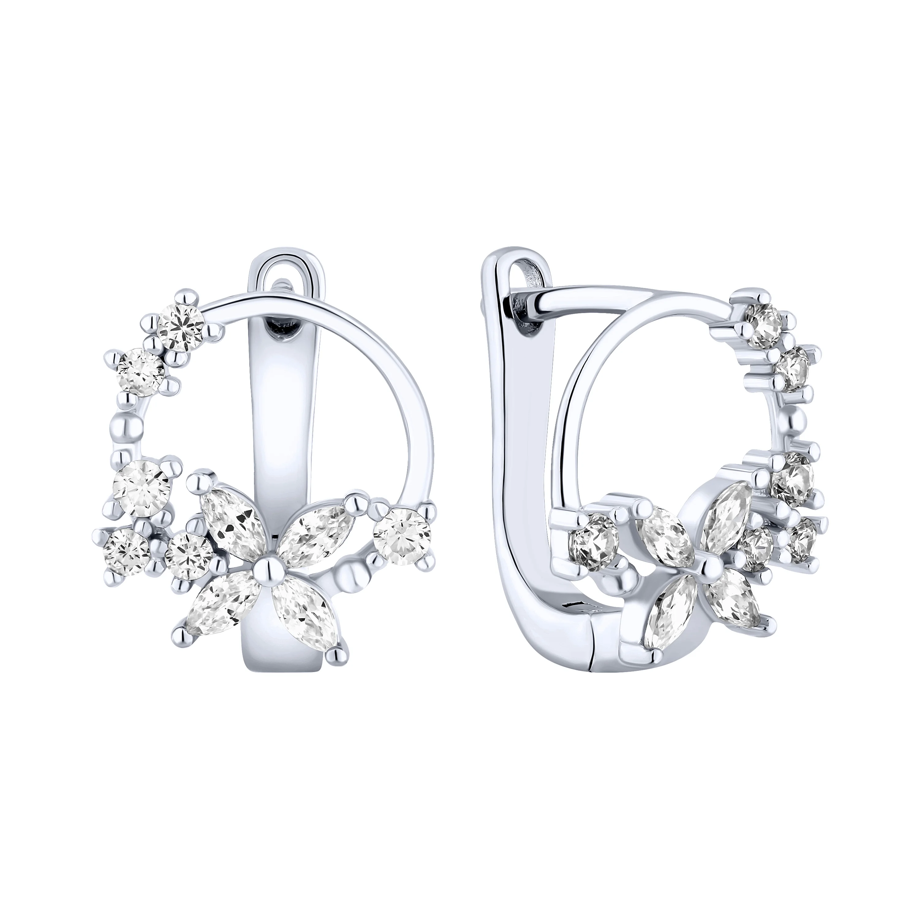 Серьги "Цветы" из серебра с фианитами - 2216802