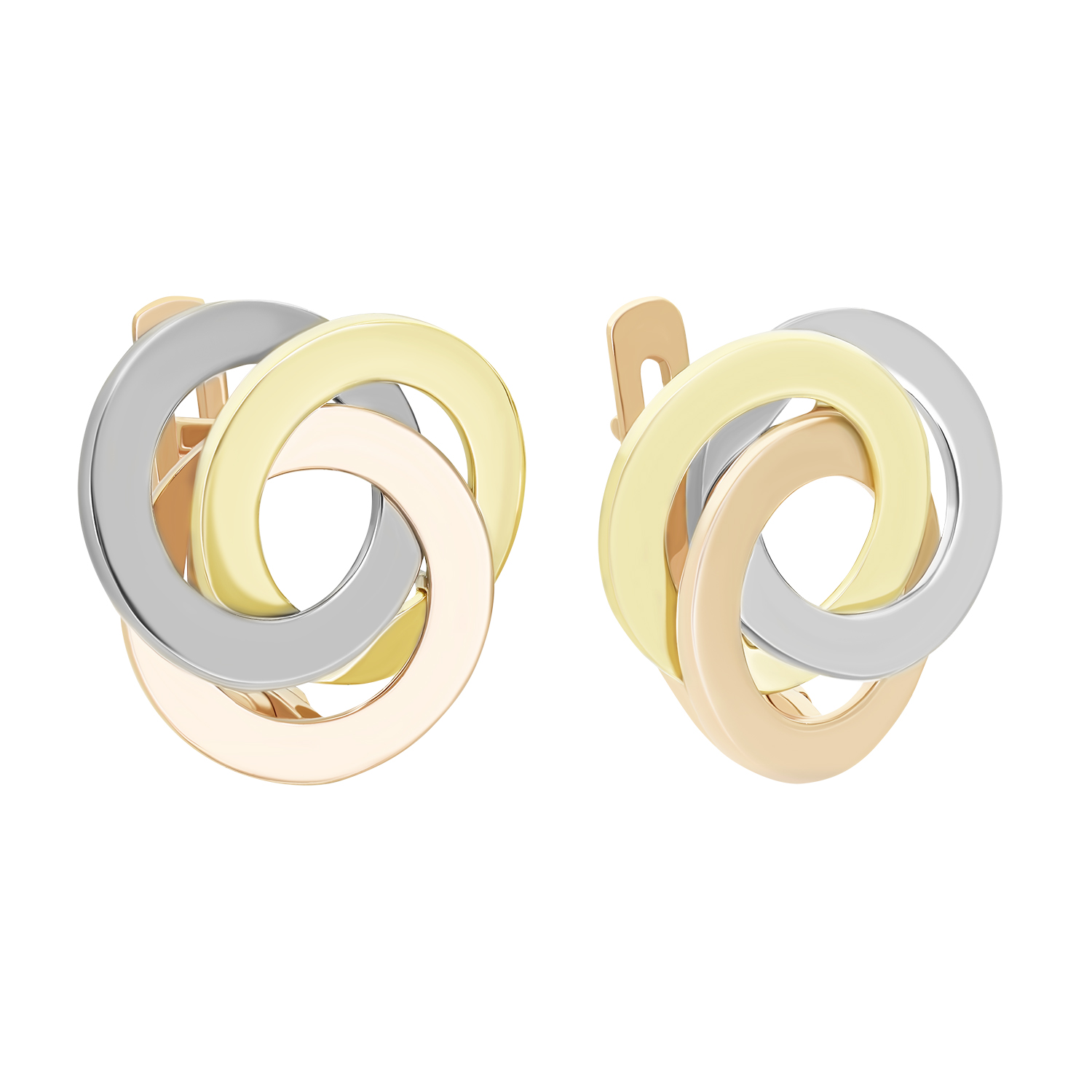 Серьги в комбинированном золоте "Переплетение Колец" - 2128348