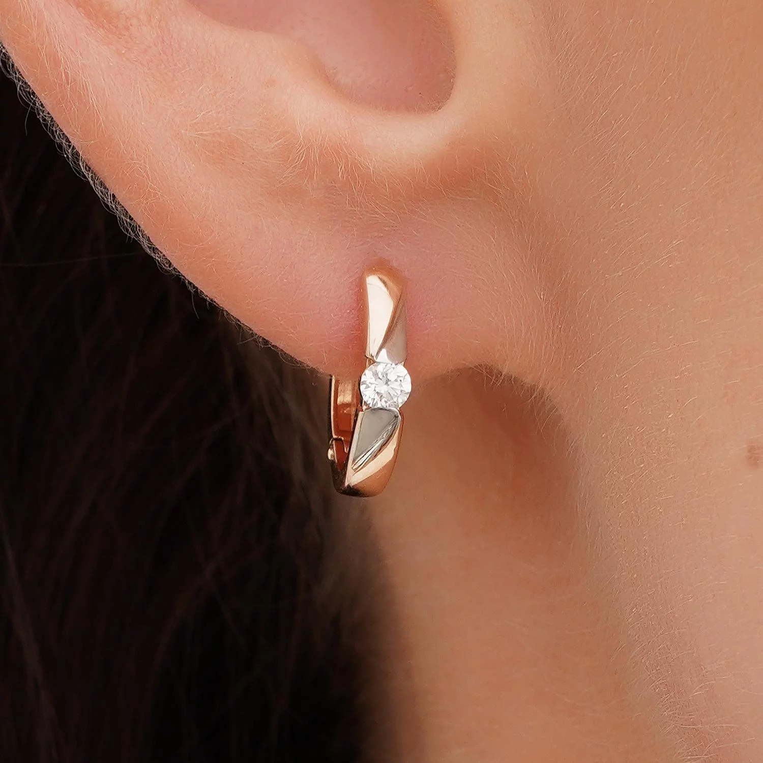 Серьги-гвоздики из белого золота с бриллиантом в минималистическом стиле - 1819023