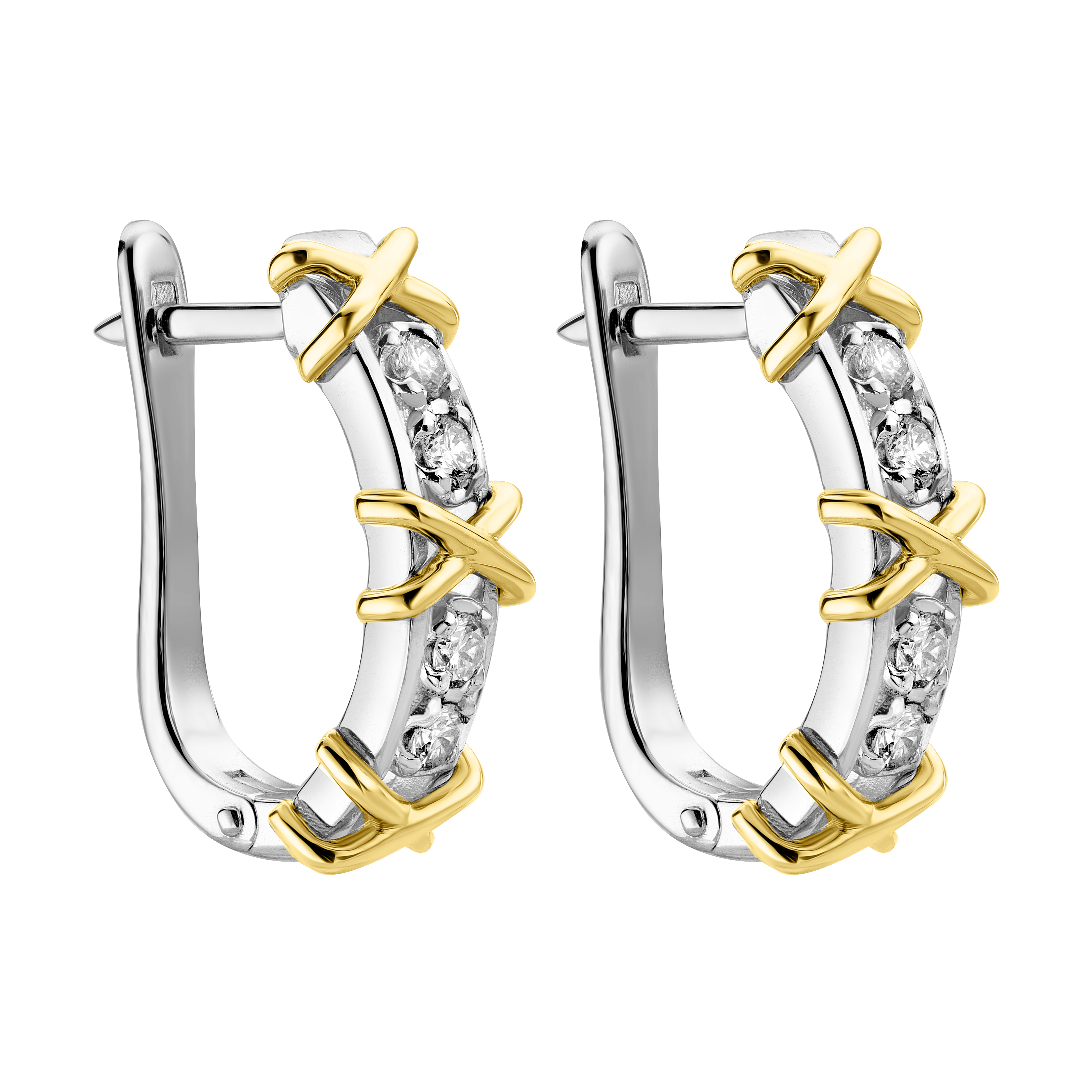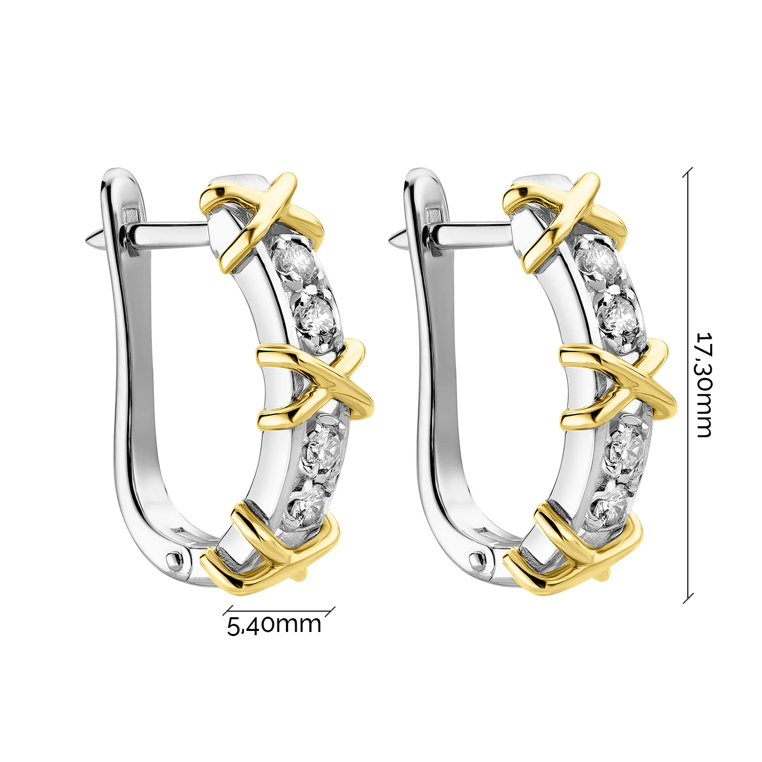 Серьги в комбинированном золоте с дорожкой бриллиантов - 2182686