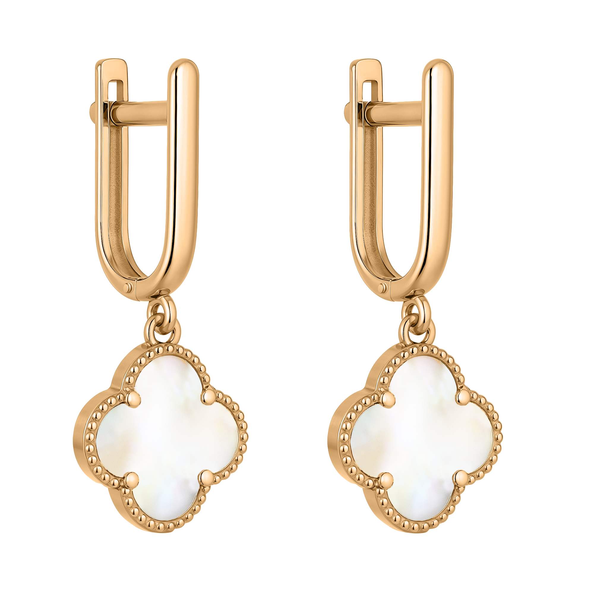 Серьги в красном золоте "Клевер" с перламутром - 2139281