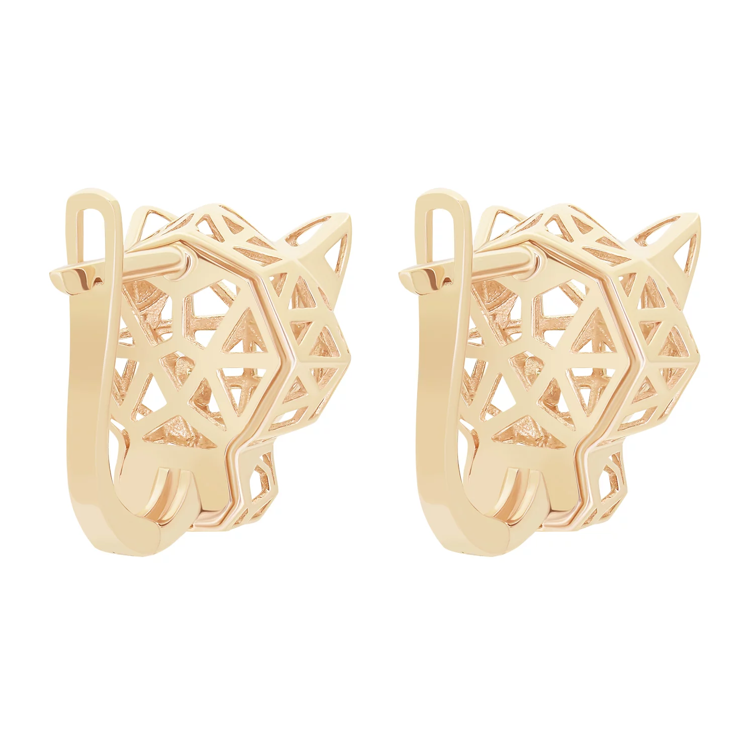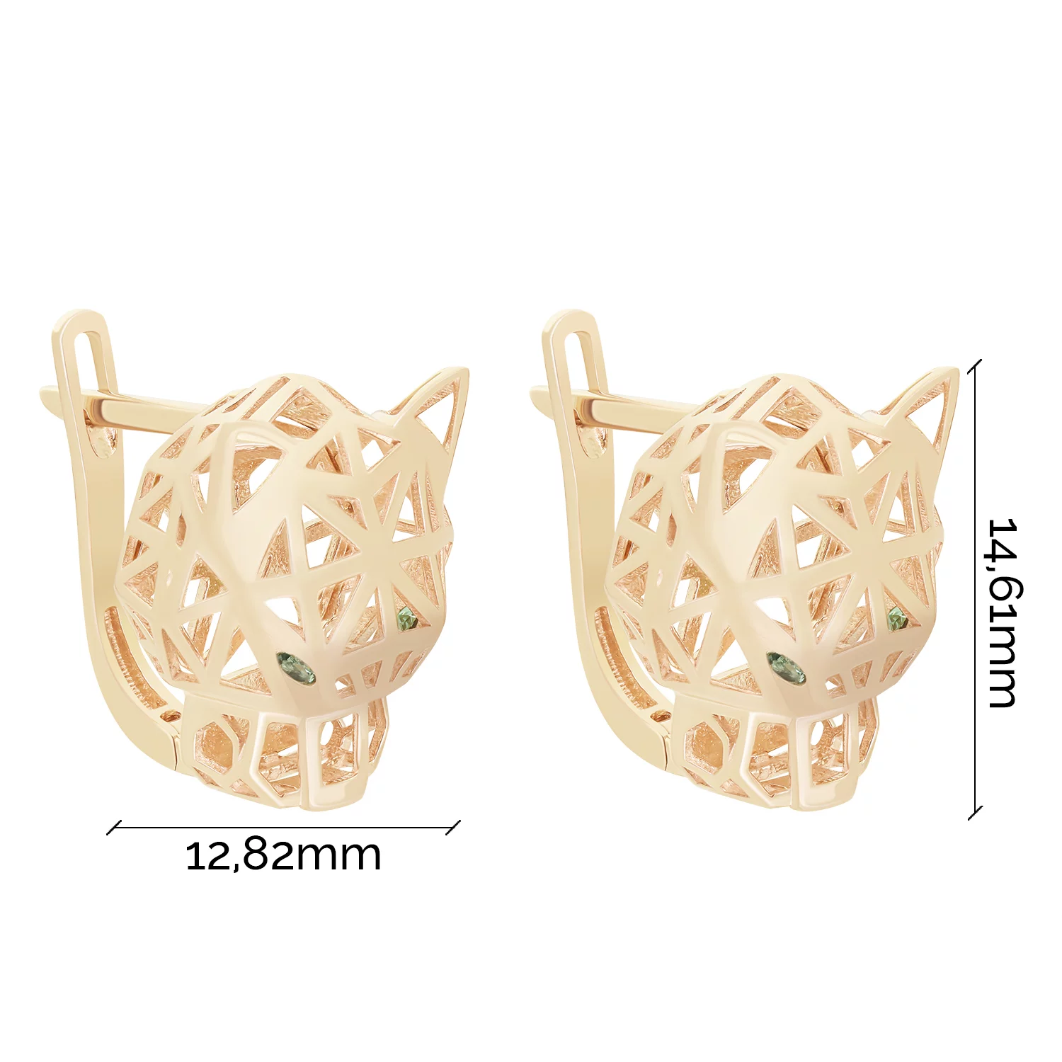 Сережки-кольца из красного золота с подвесами "Пантера" с фианитом - 1476753