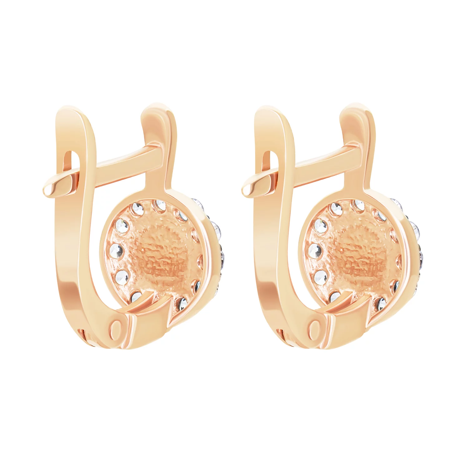 Стильные сережки-пусеты "Круг" в красном золоте с эмалью и фианитами - 1958570