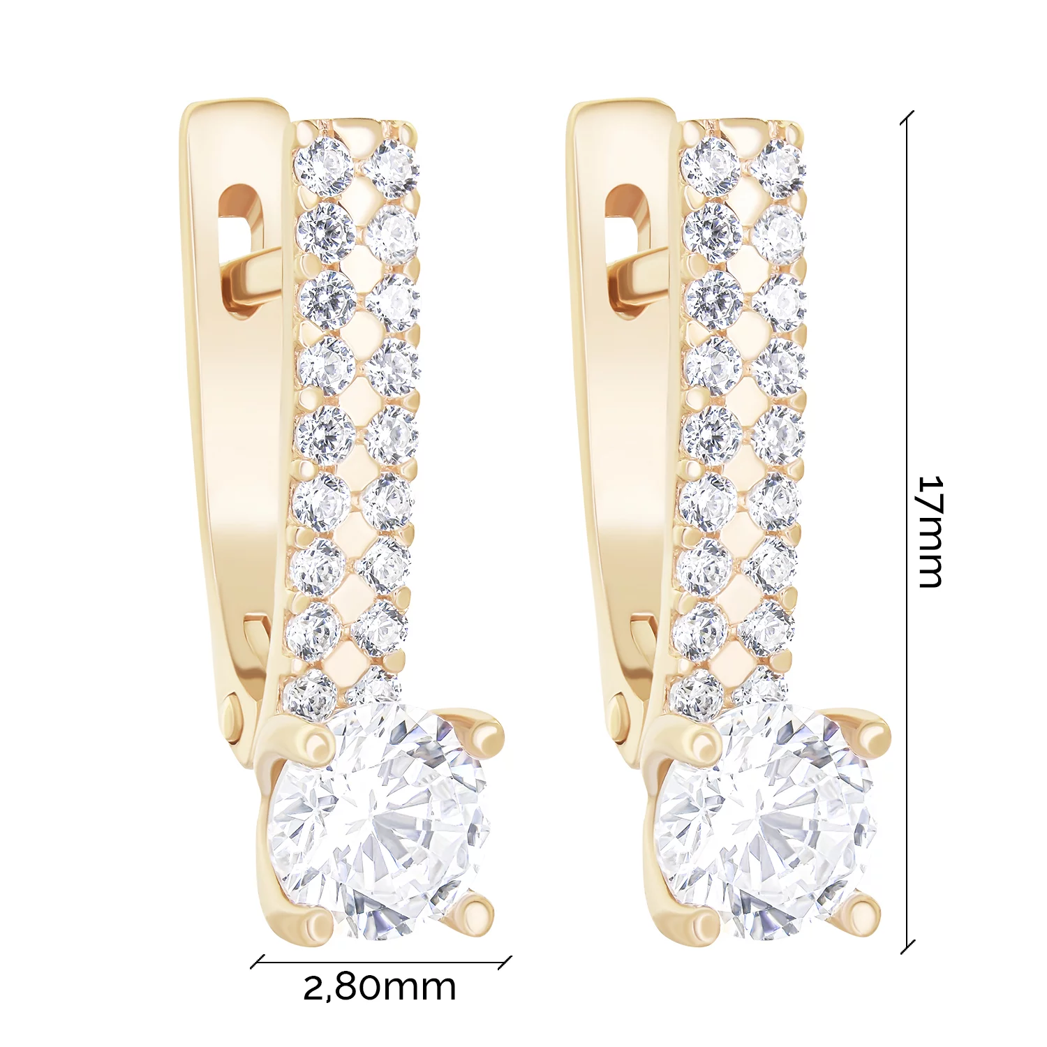 Стильные сережки из красного золота с фианитами и топазом лондон - 1875543
