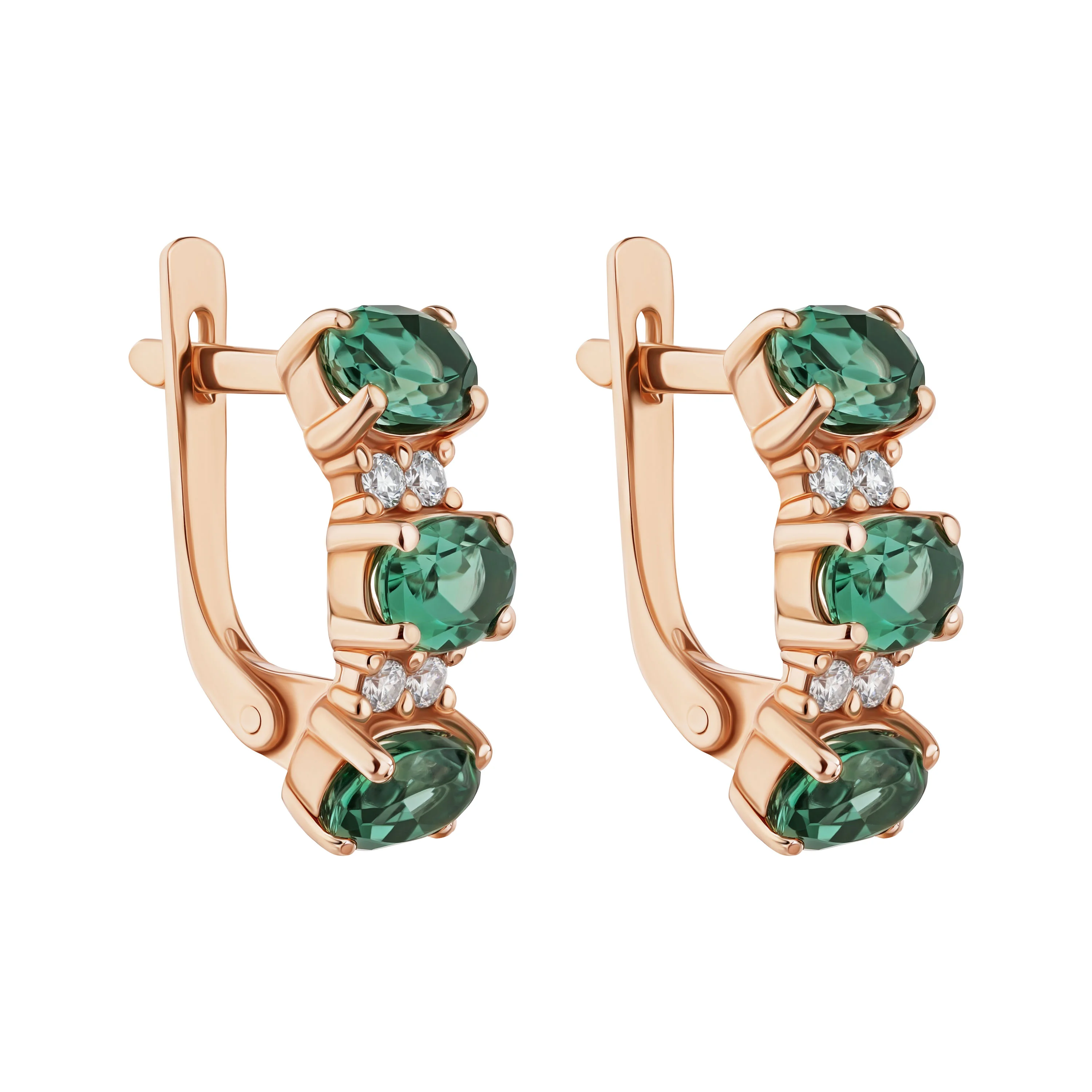 Серьги в красном золоте с кварцем и фианитами - 2178340