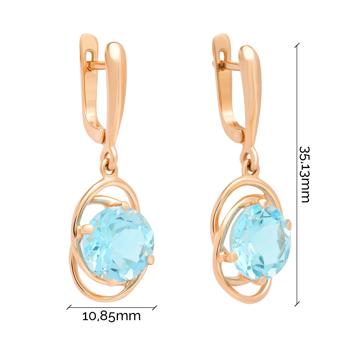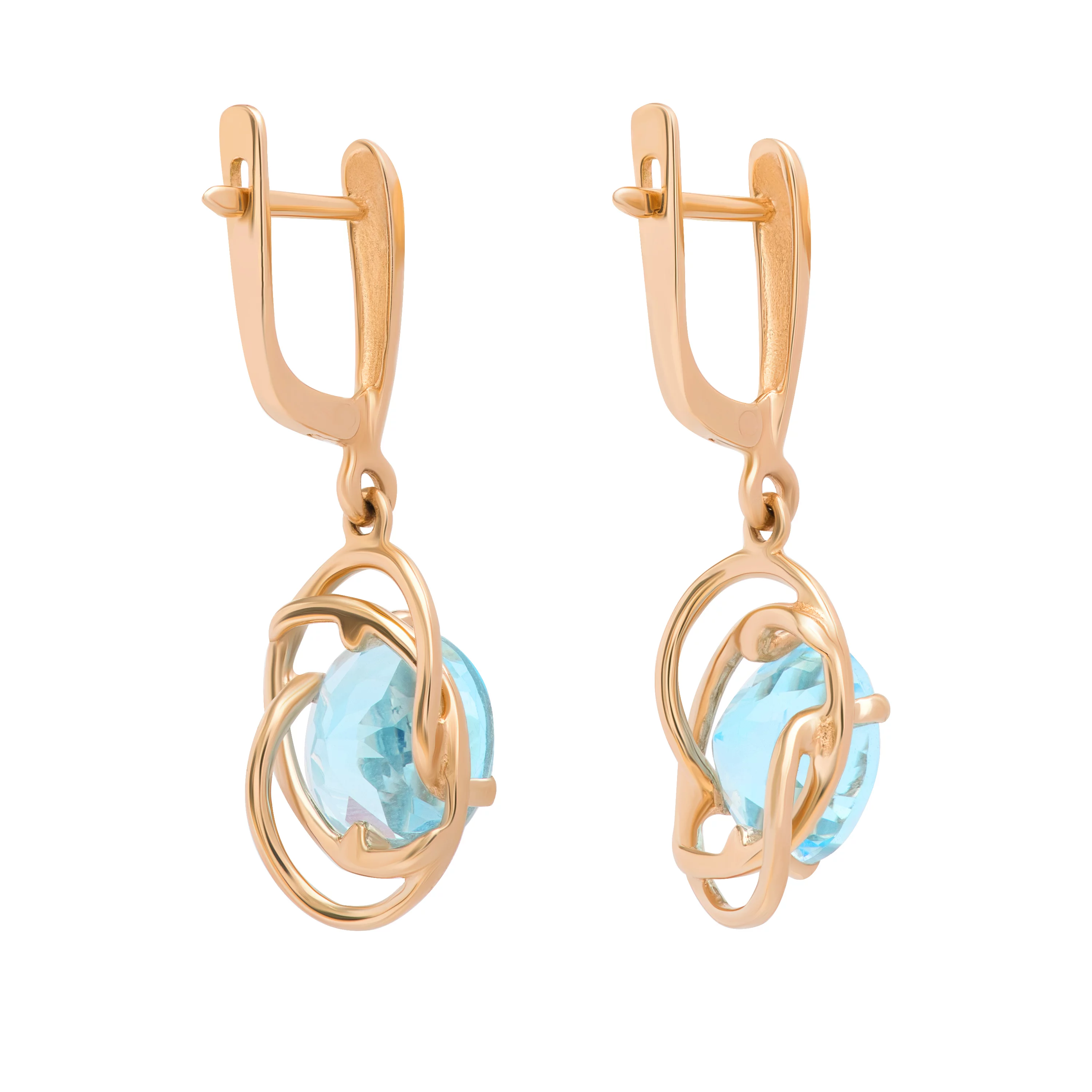 Стильные сережки из красного золота в геометрическом стиле с топазом и фианитами - 1925553