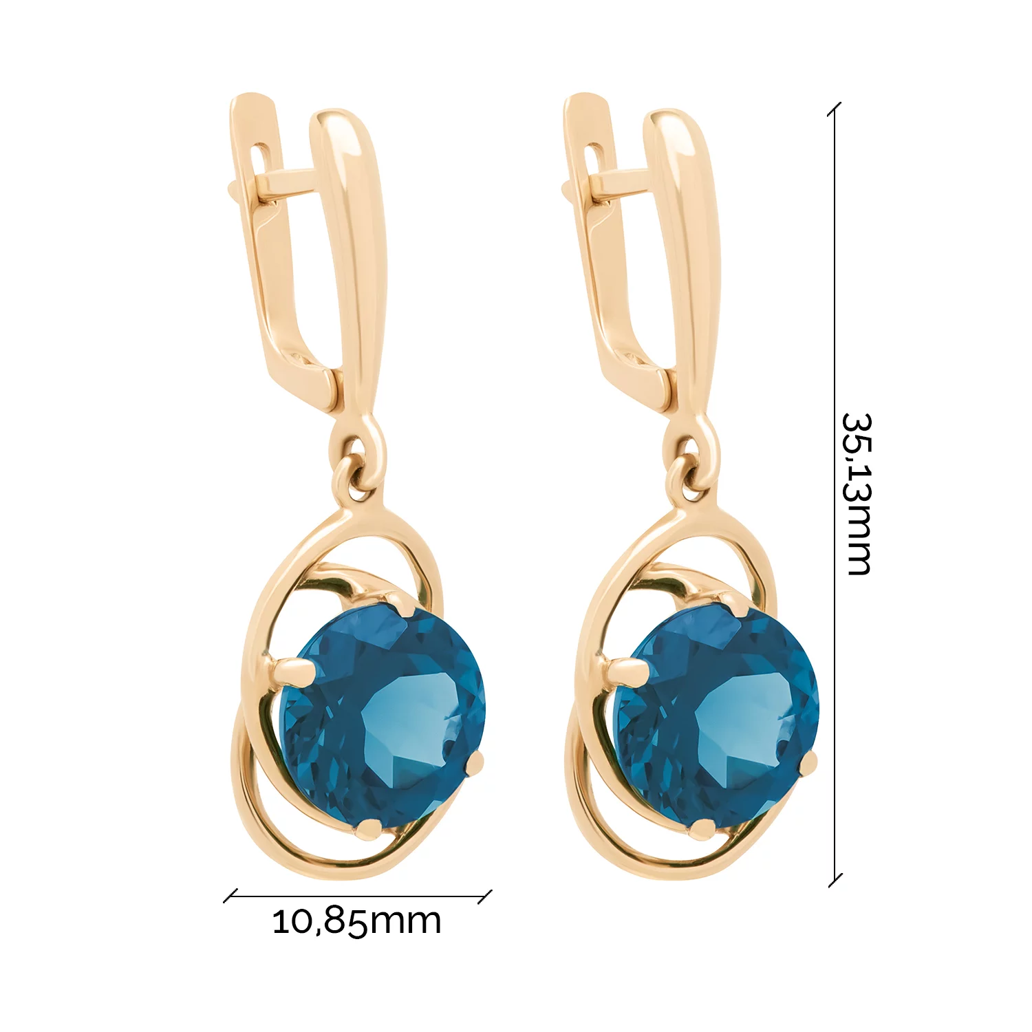 Серьги в красном золоте с подвеской и топазом лондон - 1670383