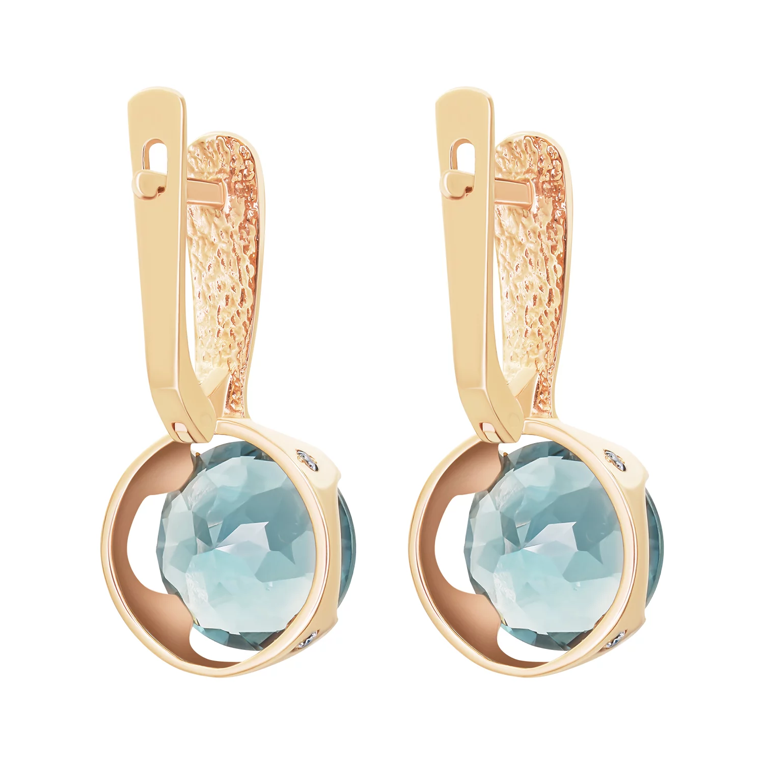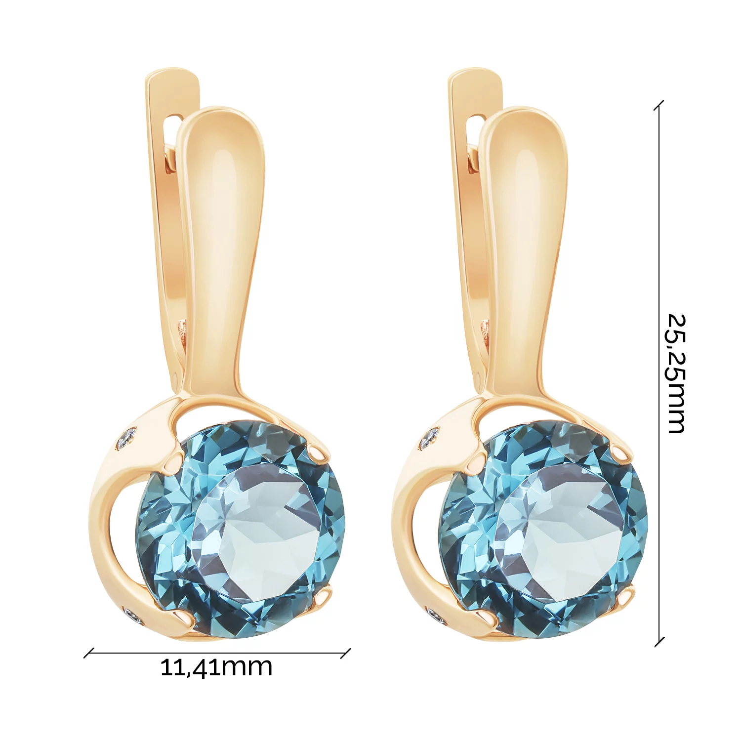 Сережки-гвоздики с топазом лондон и фианитами из красного золота - 1525469