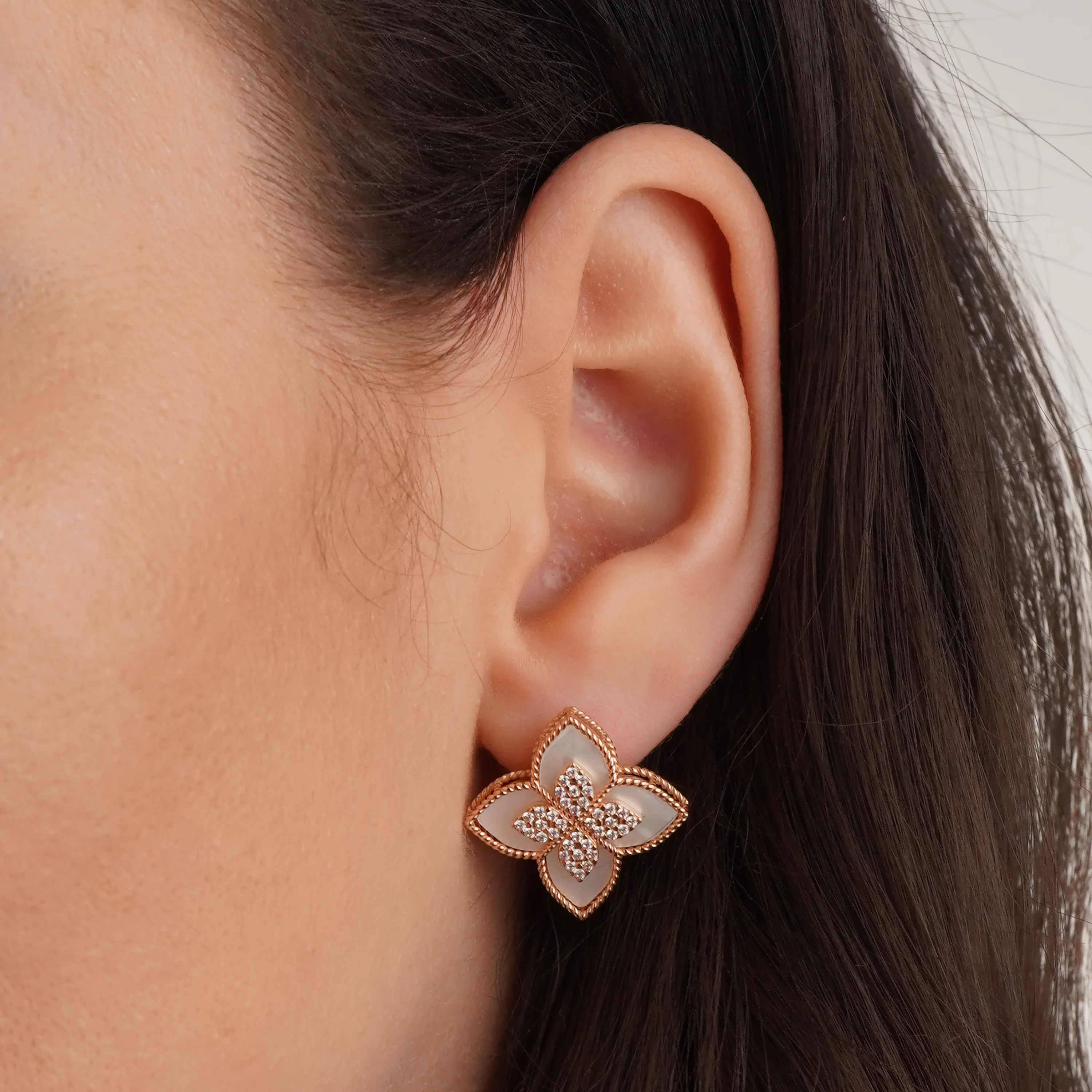 Серьги в красном золоте "Цветок" с фианитами и перламутром - 2139315