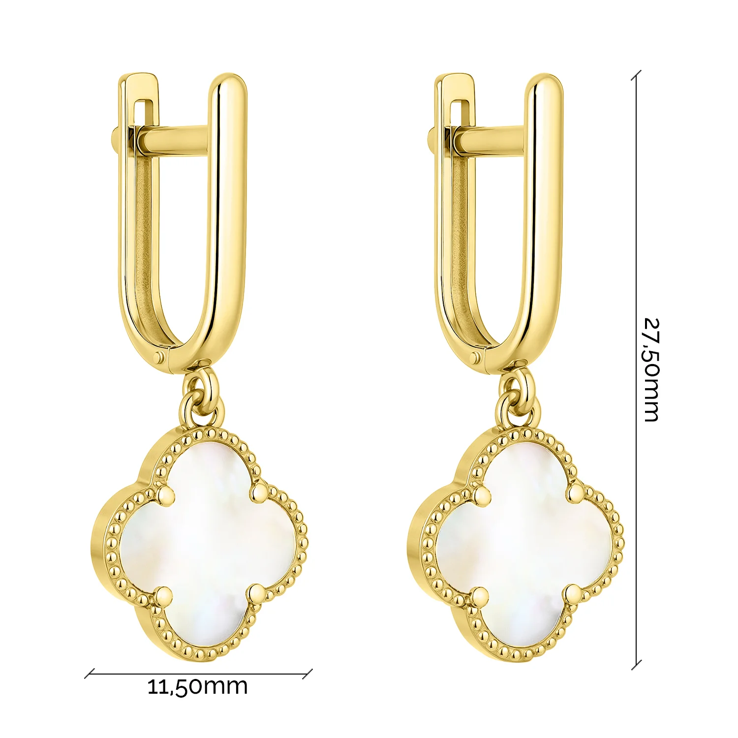 Серьги в желтом золоте "Клевер" с перламутром - 2139263