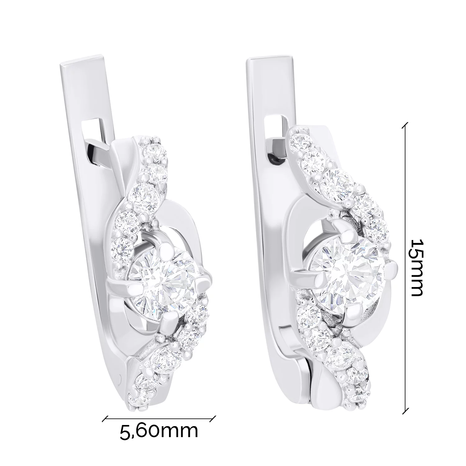 Серьги "Завитки" из серебра с фианитами - 1545999