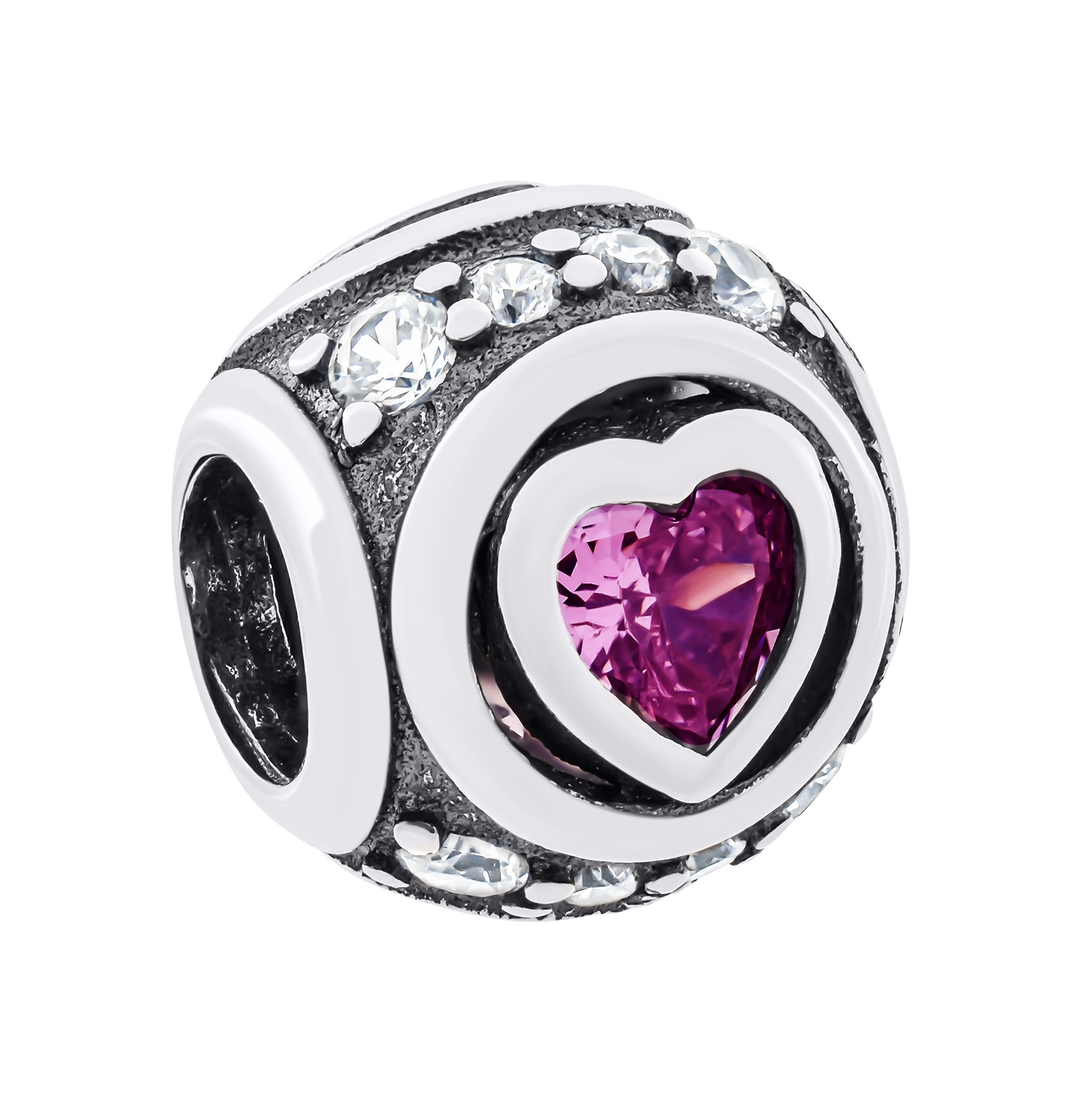Шарм с альпинитом и фианитами "Сердце" из серебра с чернением - 1505603