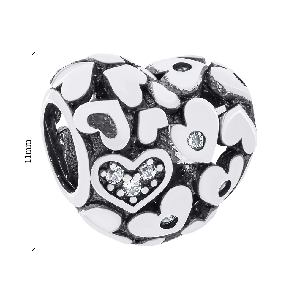 Шарм в форме "Сердца" с фианитами из серебра - 1505599