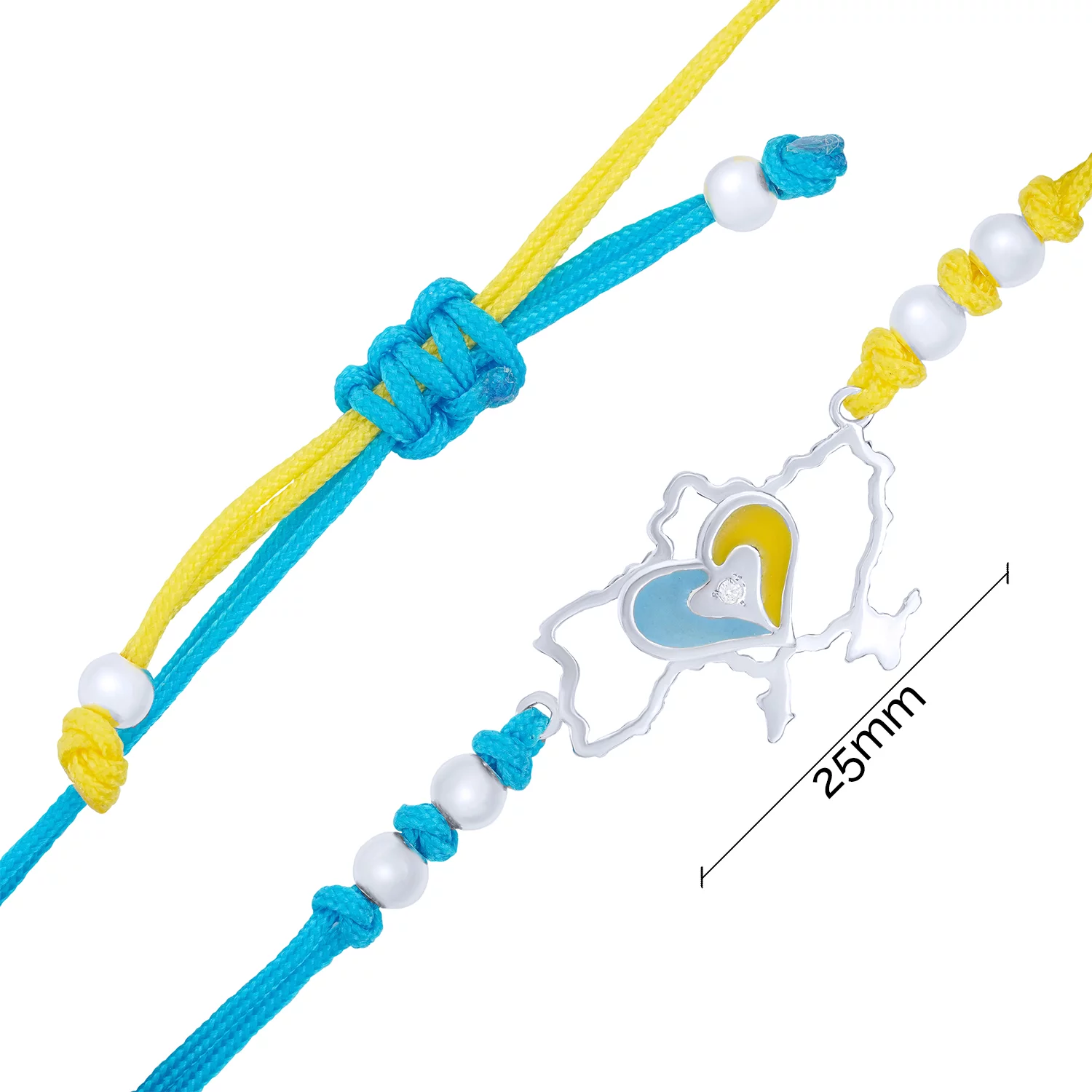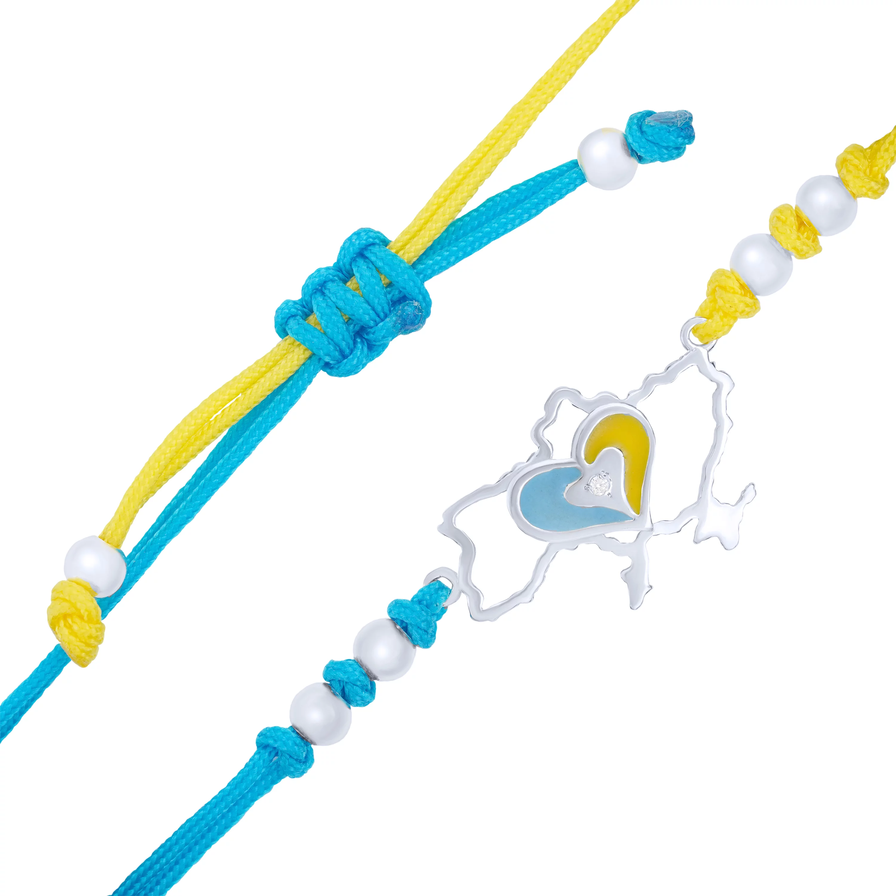 Браслет из сине-желтого шелка с вставкой из серебра "Украинское Сердце" с фианитами - 1549772