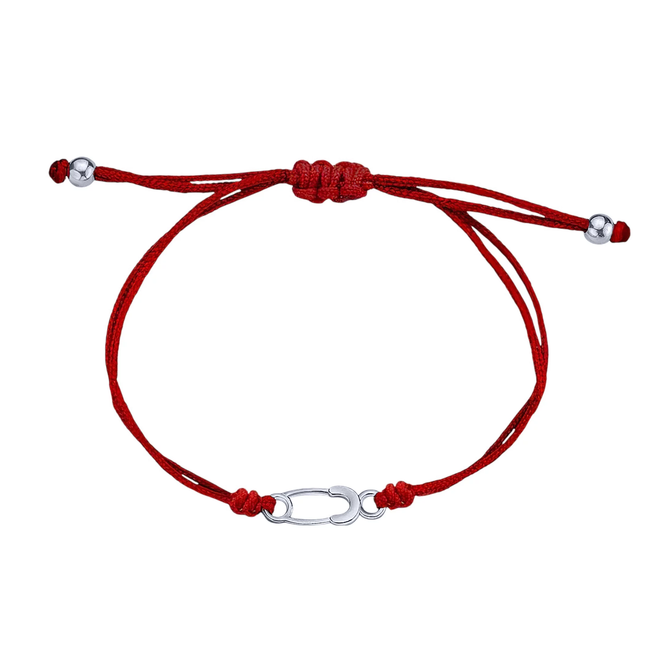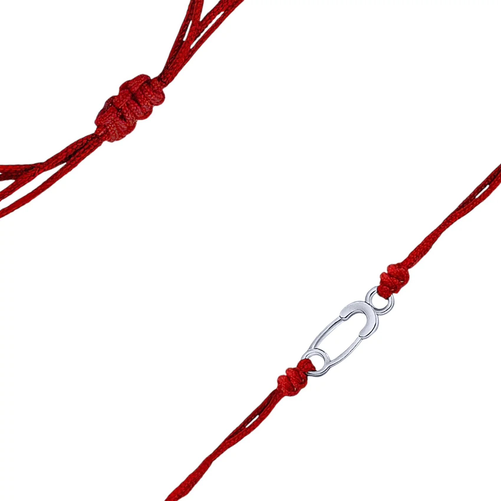 Красный шелковый браслет с серебряной вставкой "Тризуб-Герб Украины" - 1706421