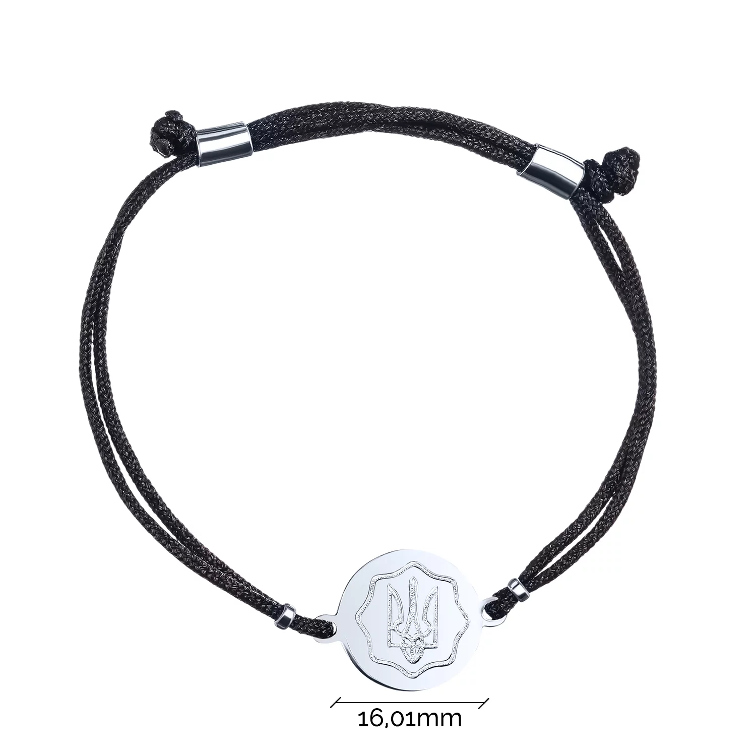 Шелковый браслет со вставкой "Тризуб-Герб Украины" из серебра - 1760273
