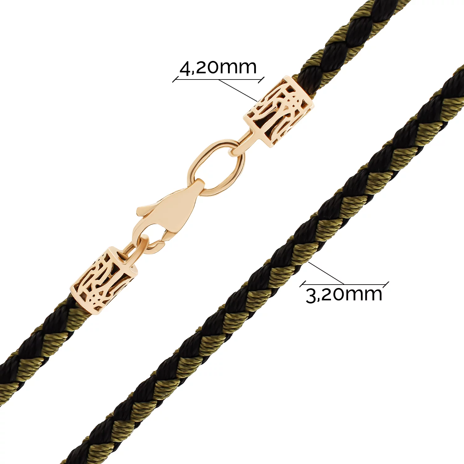 Вощёный шнурок с застежкой из красного золота "Герб України-Тризуб" - 1538249