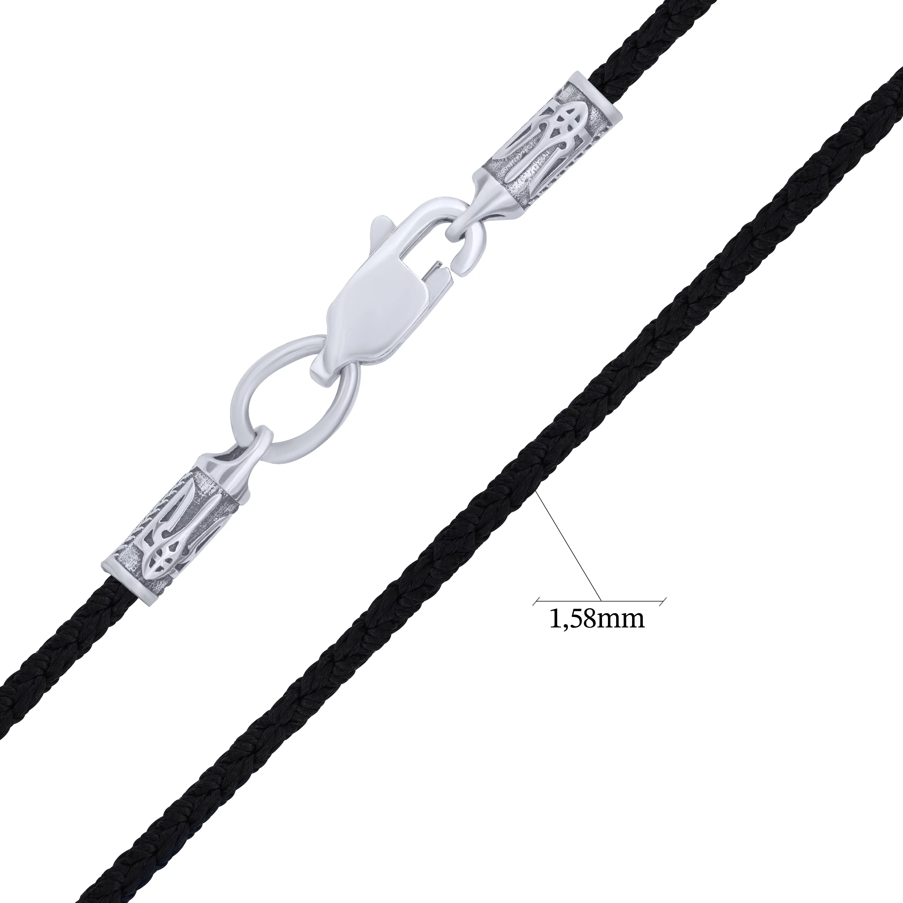 Шелковый шнурок с застежкой из серебра "Герб Украины-Тризуб" - 1682655