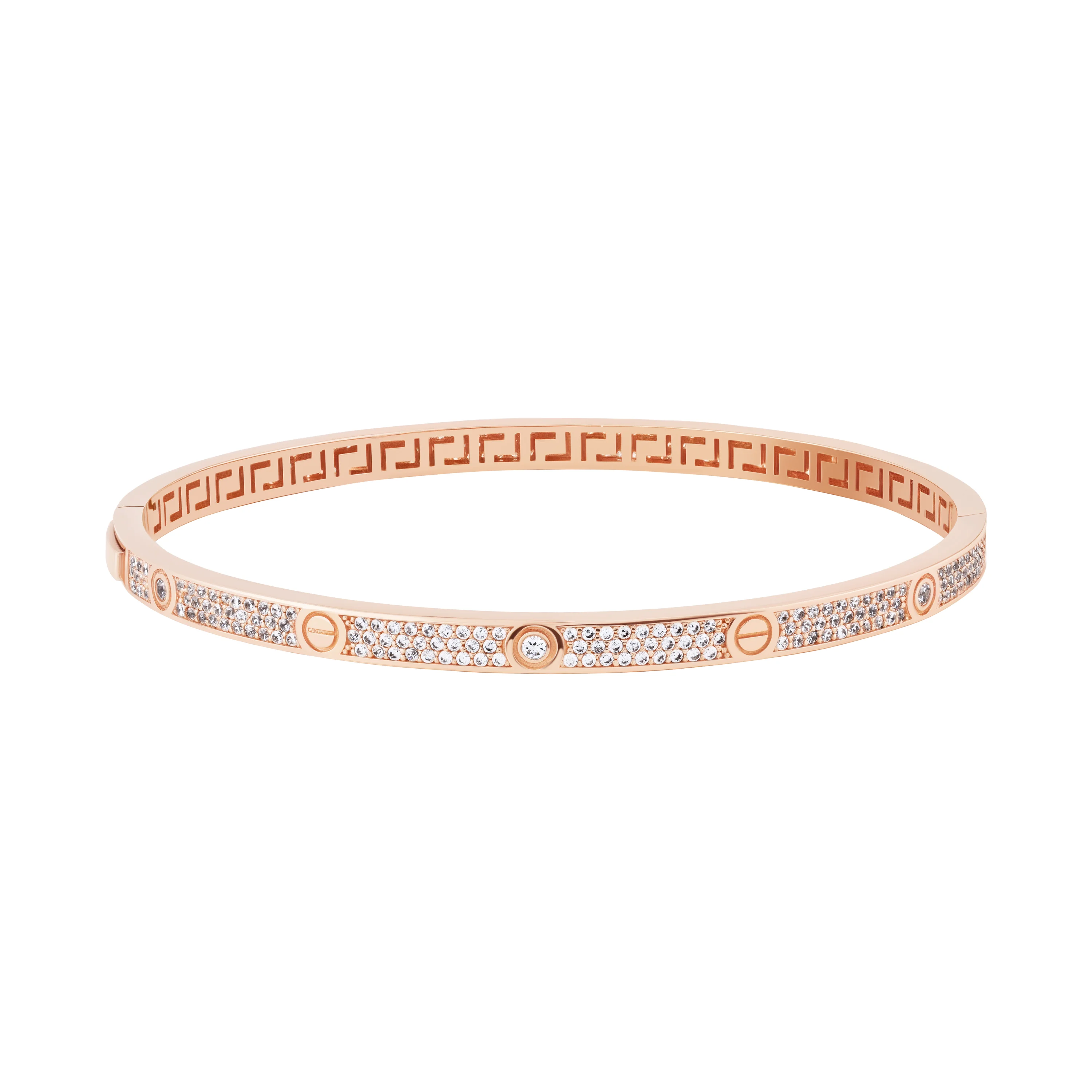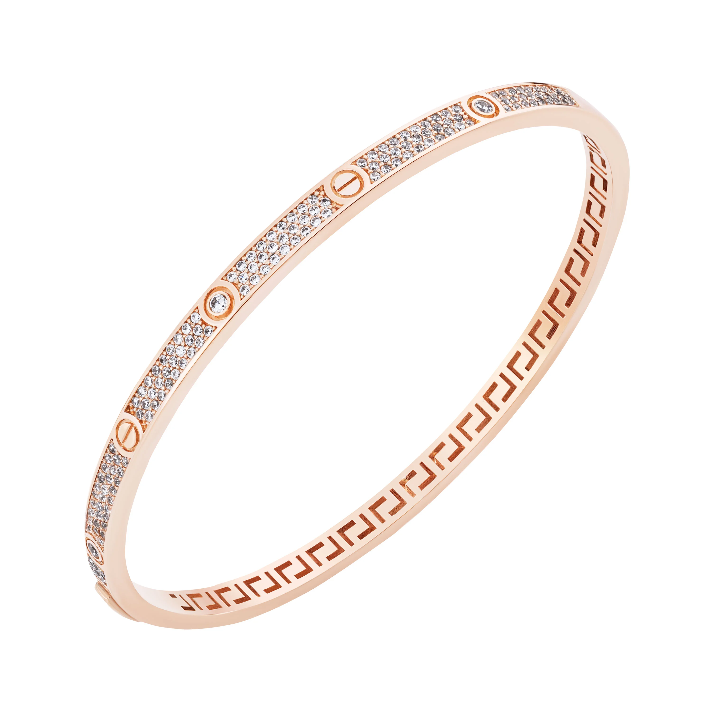 Шикарный жесткий браслет "Love" из красного золота с фианитами - 2102179