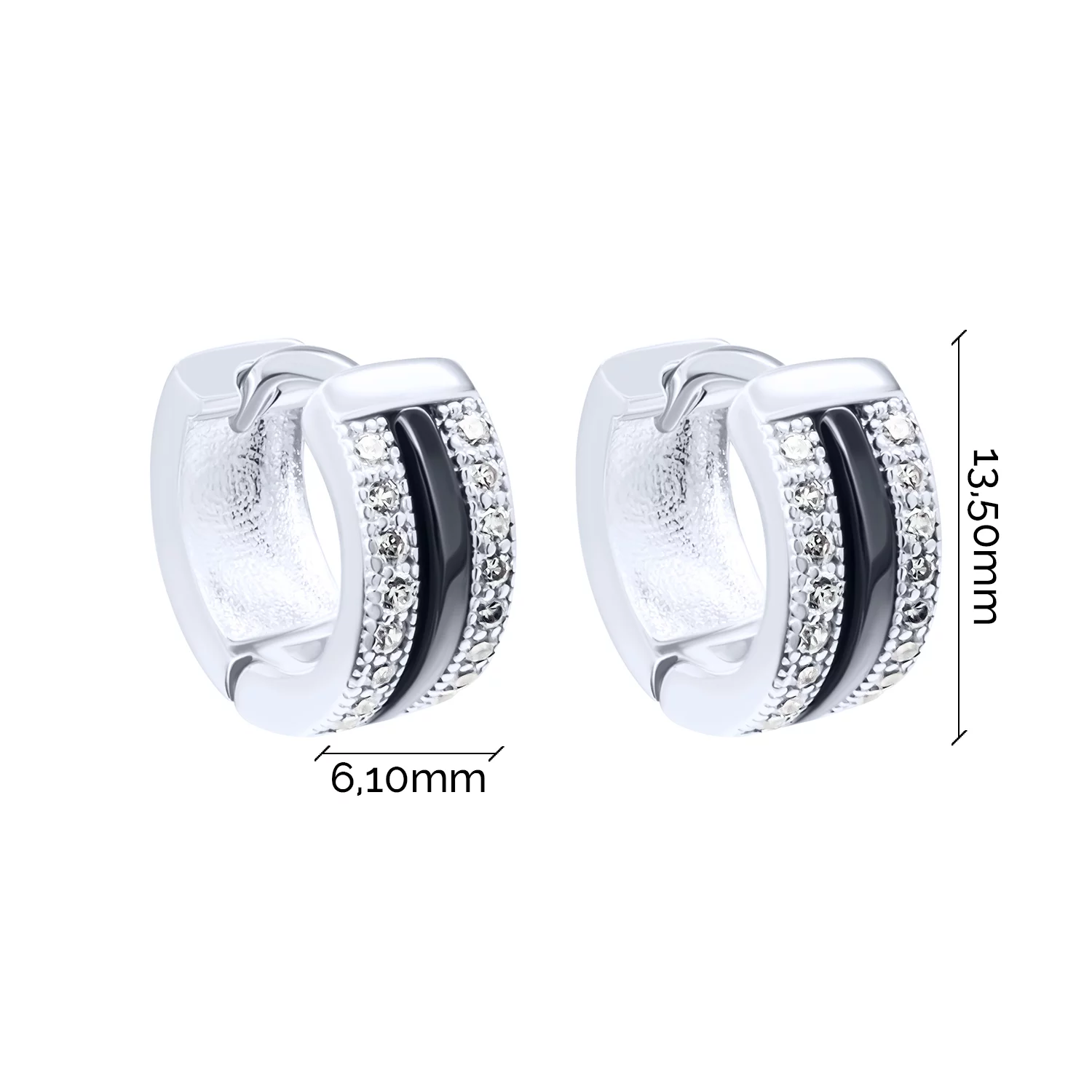 Широкие серьги-кольца из серебра с фианитами и керамикой - 1813013