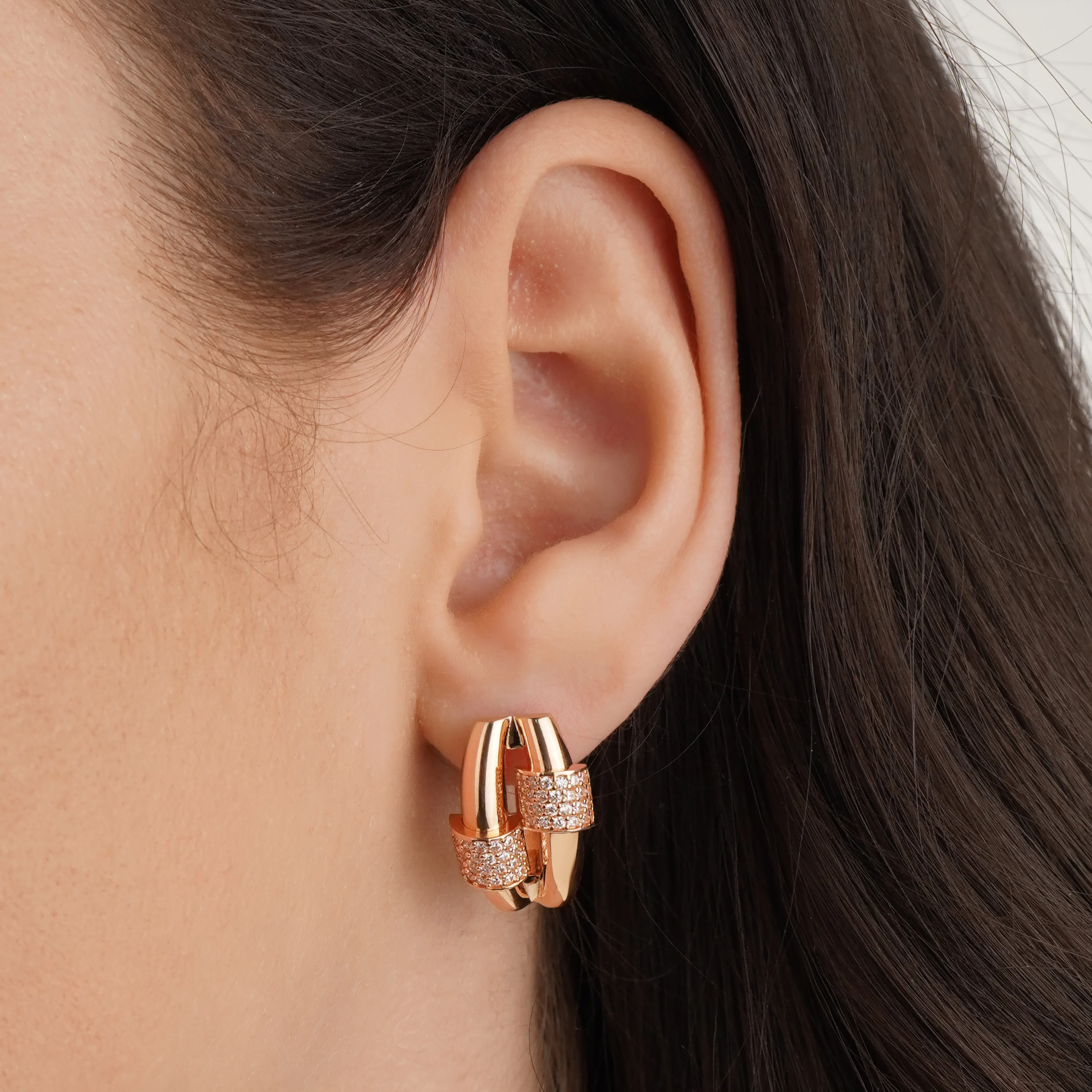 Широкие серьги из красного золота с фианитами - это роскошный аксессуар, сочетающий в себе тепло металла и ослепительную игру света. Главным акцентом модели служит массивная форма, украшенная россыпью фианитов, создающих эффект сплошного драгоценного полотна. Каждый камень закреплен так, чтобы при малейшем движении украшение излучало магнетическое сияние, придавая образу особую торжественность и величие. Аксессуар оснащен надежной английской застежкой, которая обеспечивает идеальную посадку и гарантирует максимальный комфорт в течение всего дня.¶
