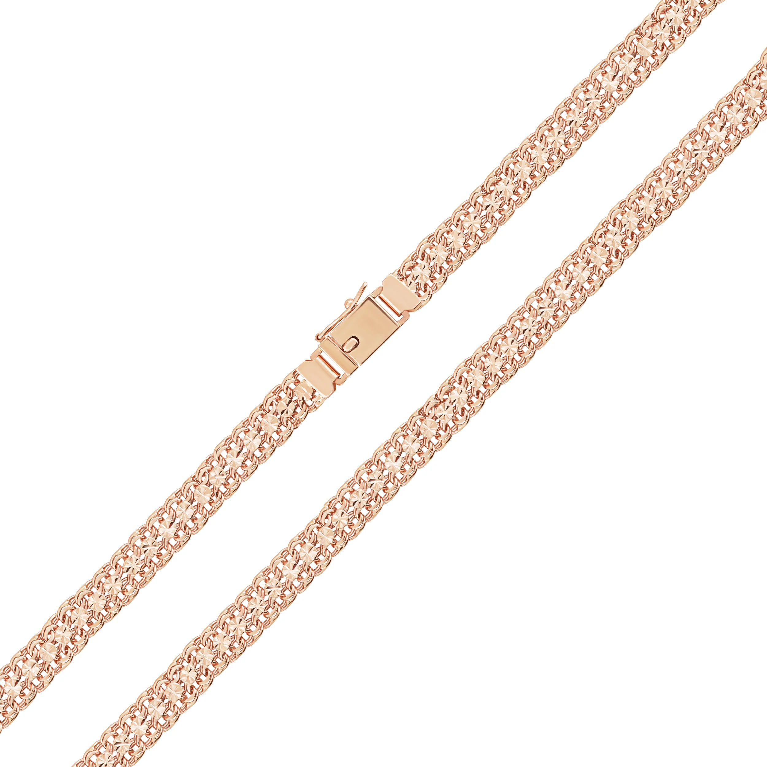 Широкий браслет из красного золота в плетении двойной бисмарк - 2107944