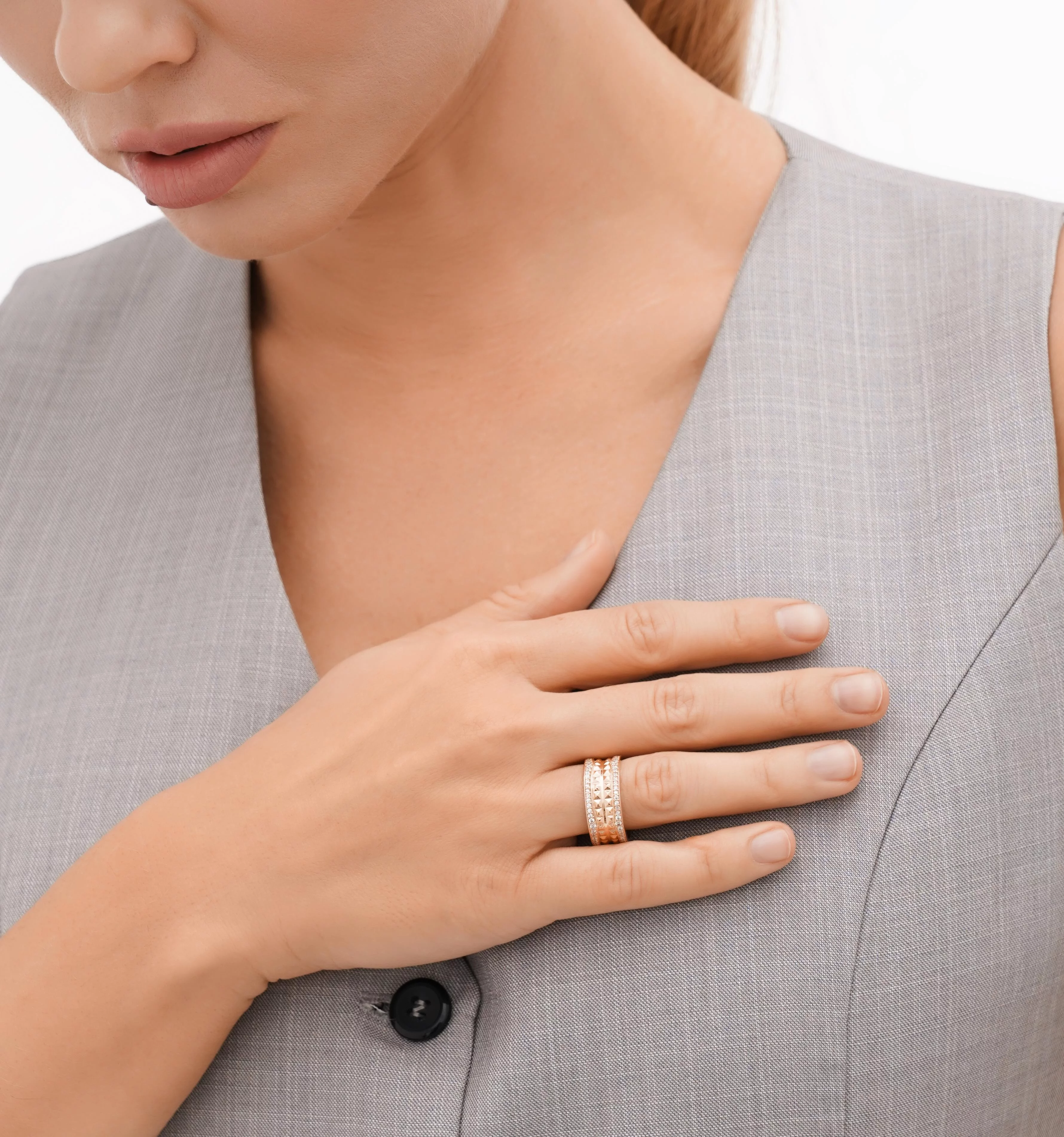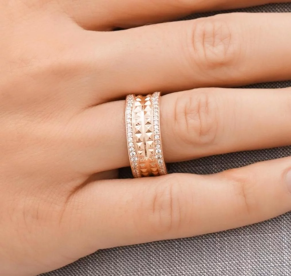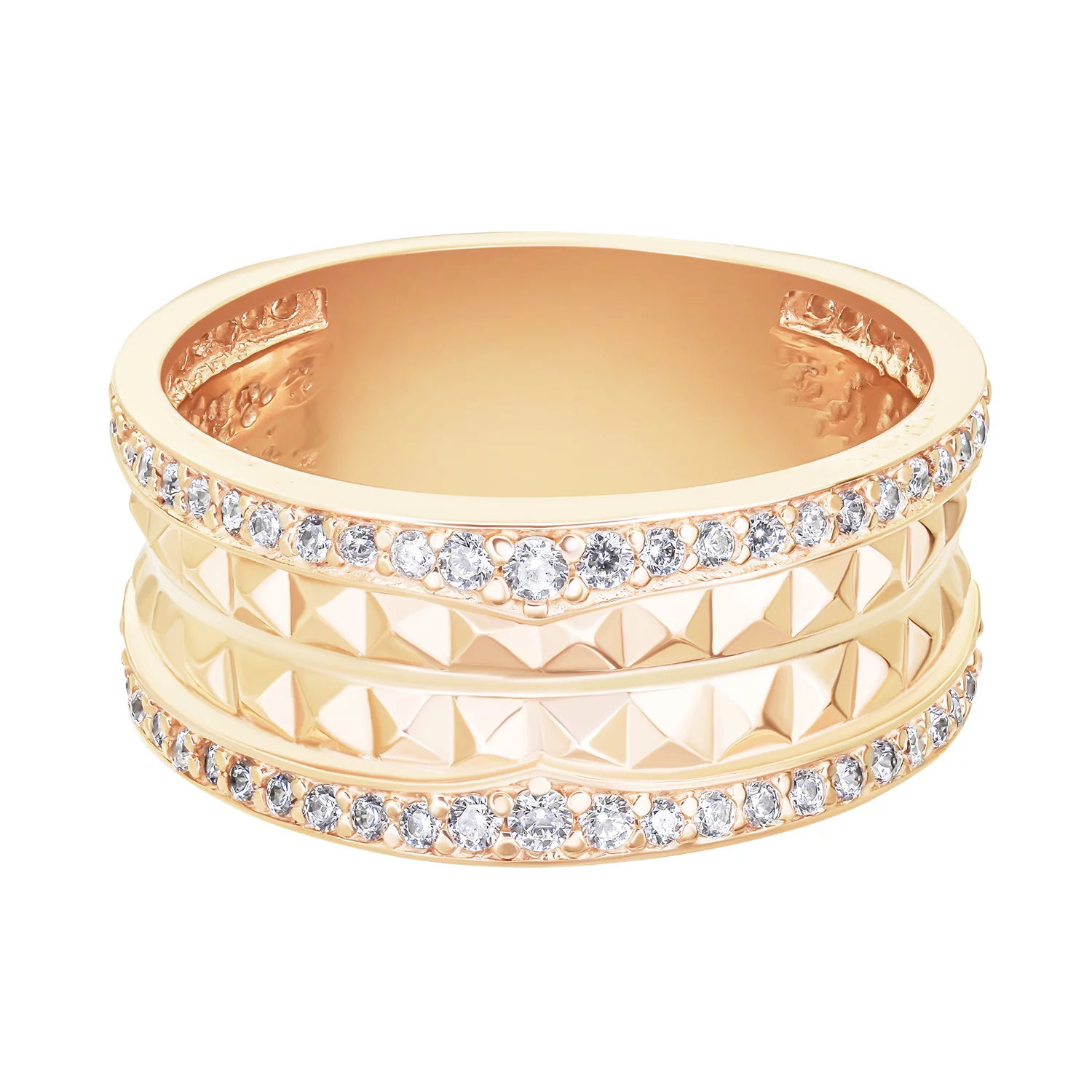 Кольцо с зеленым кварцем и фианитами в комбинированном золоте - 538348