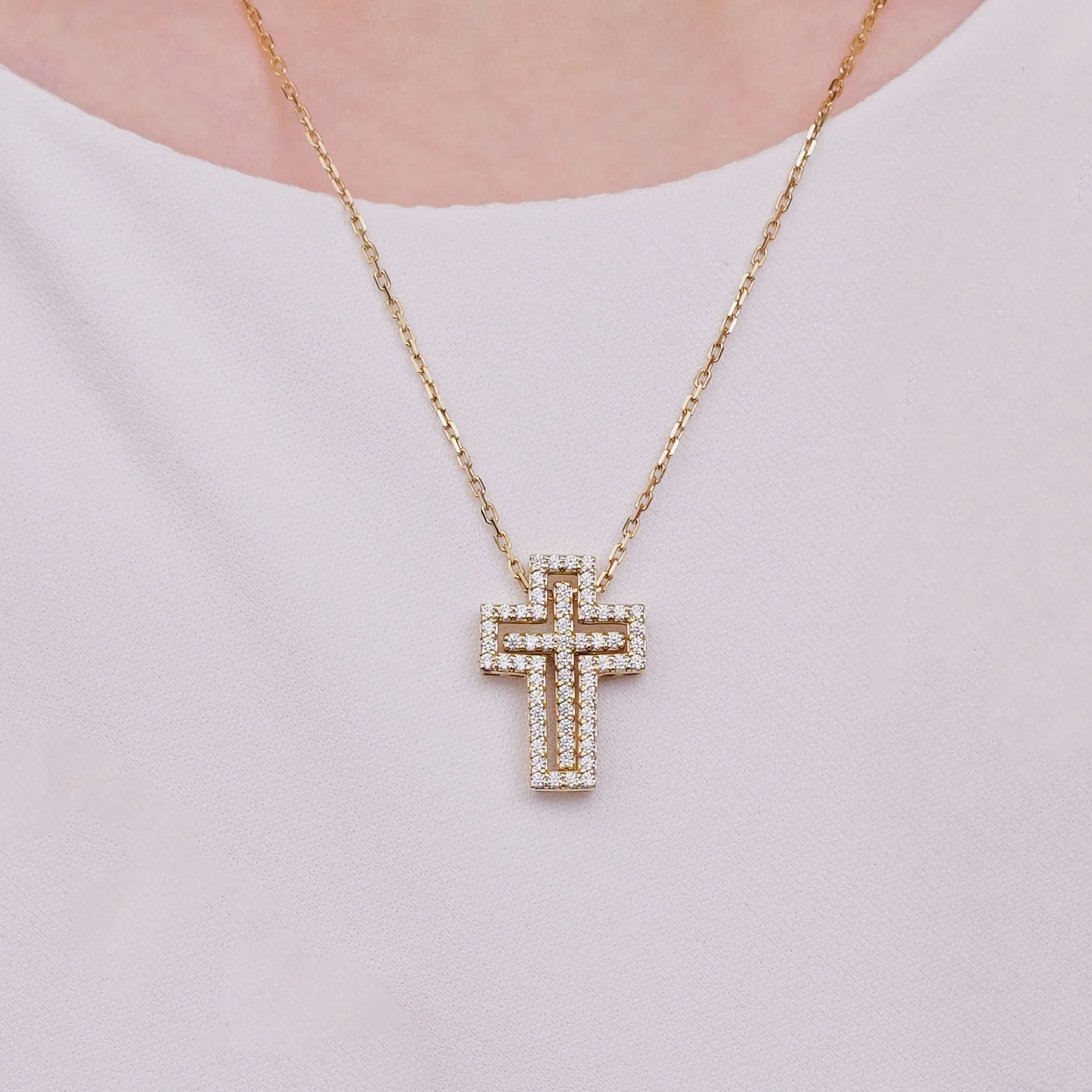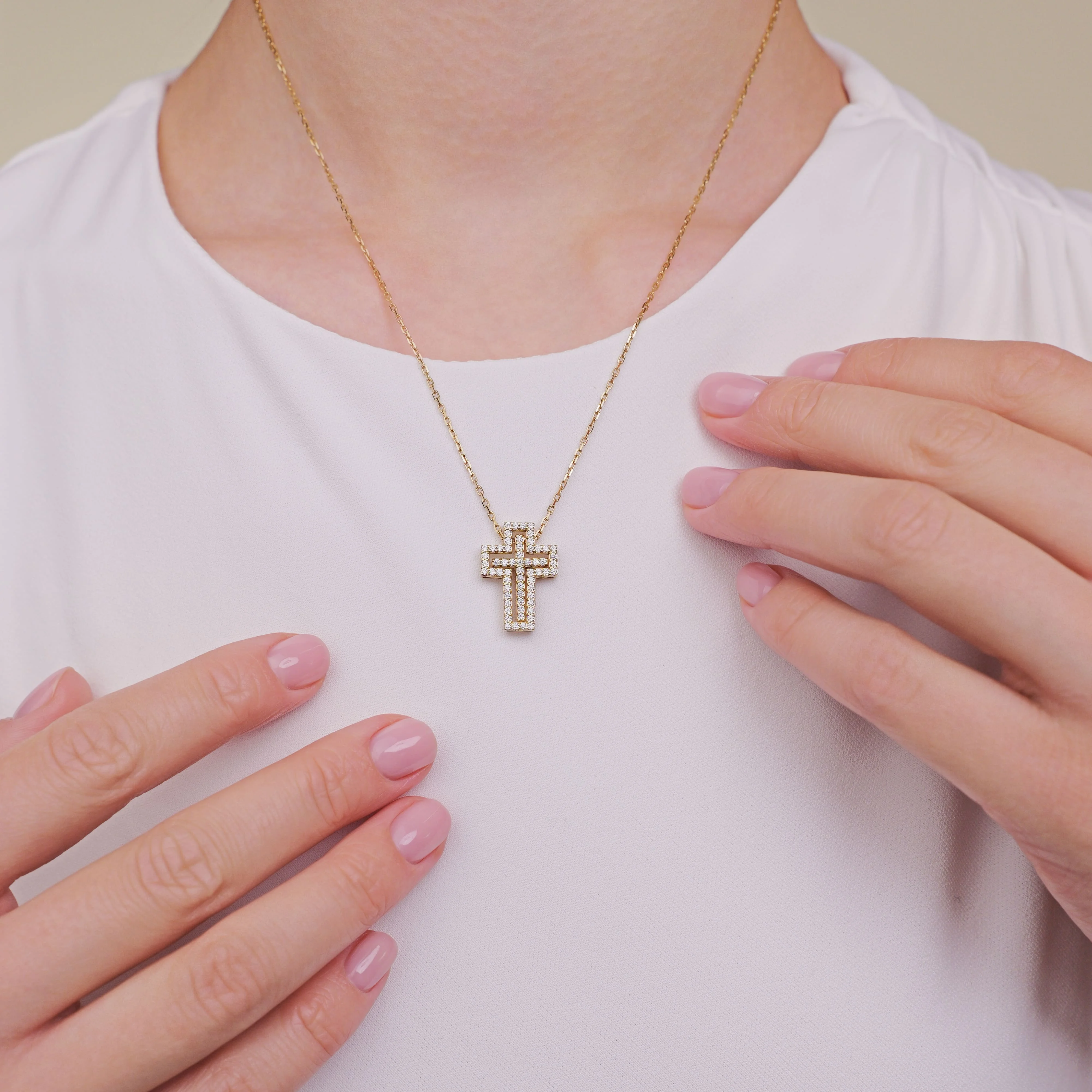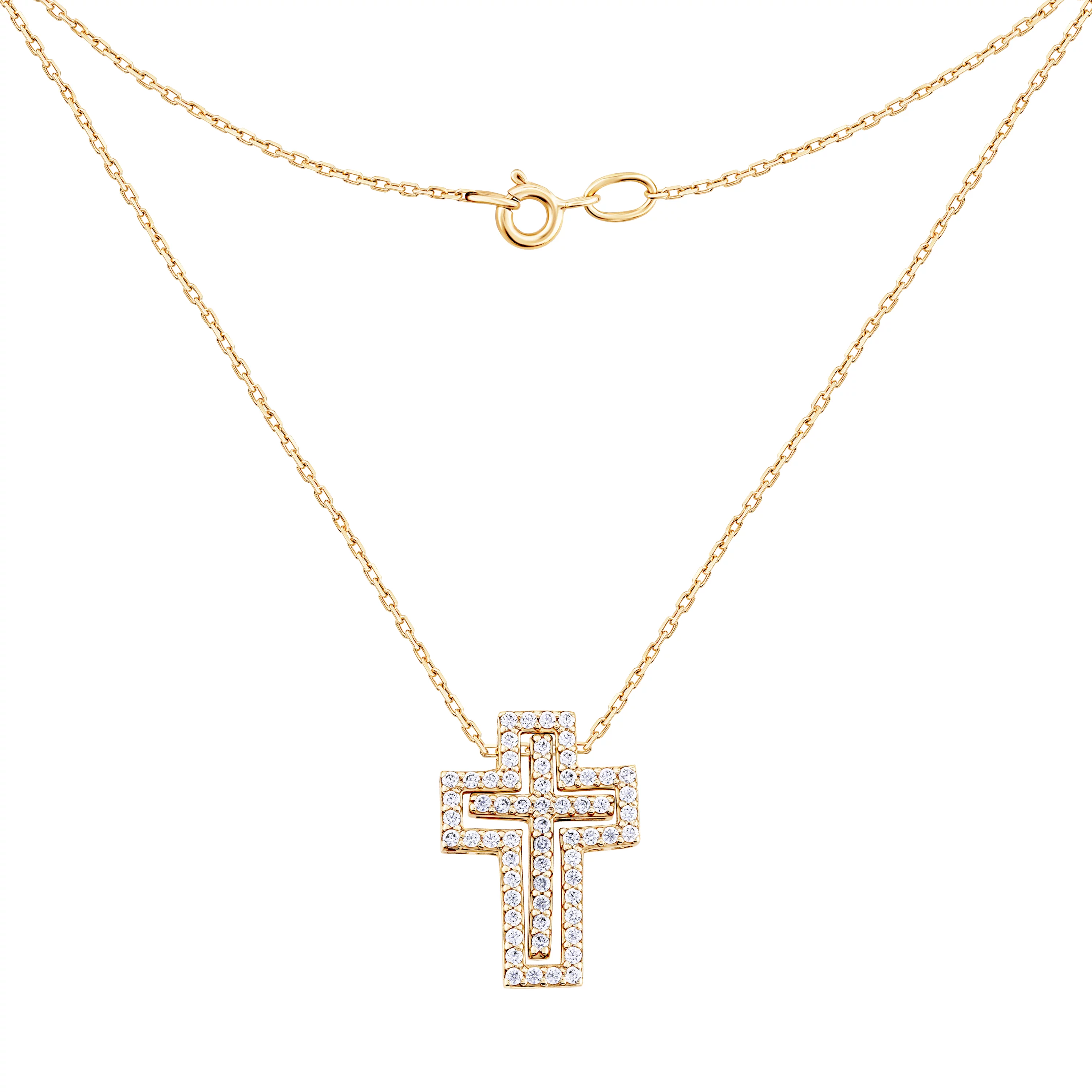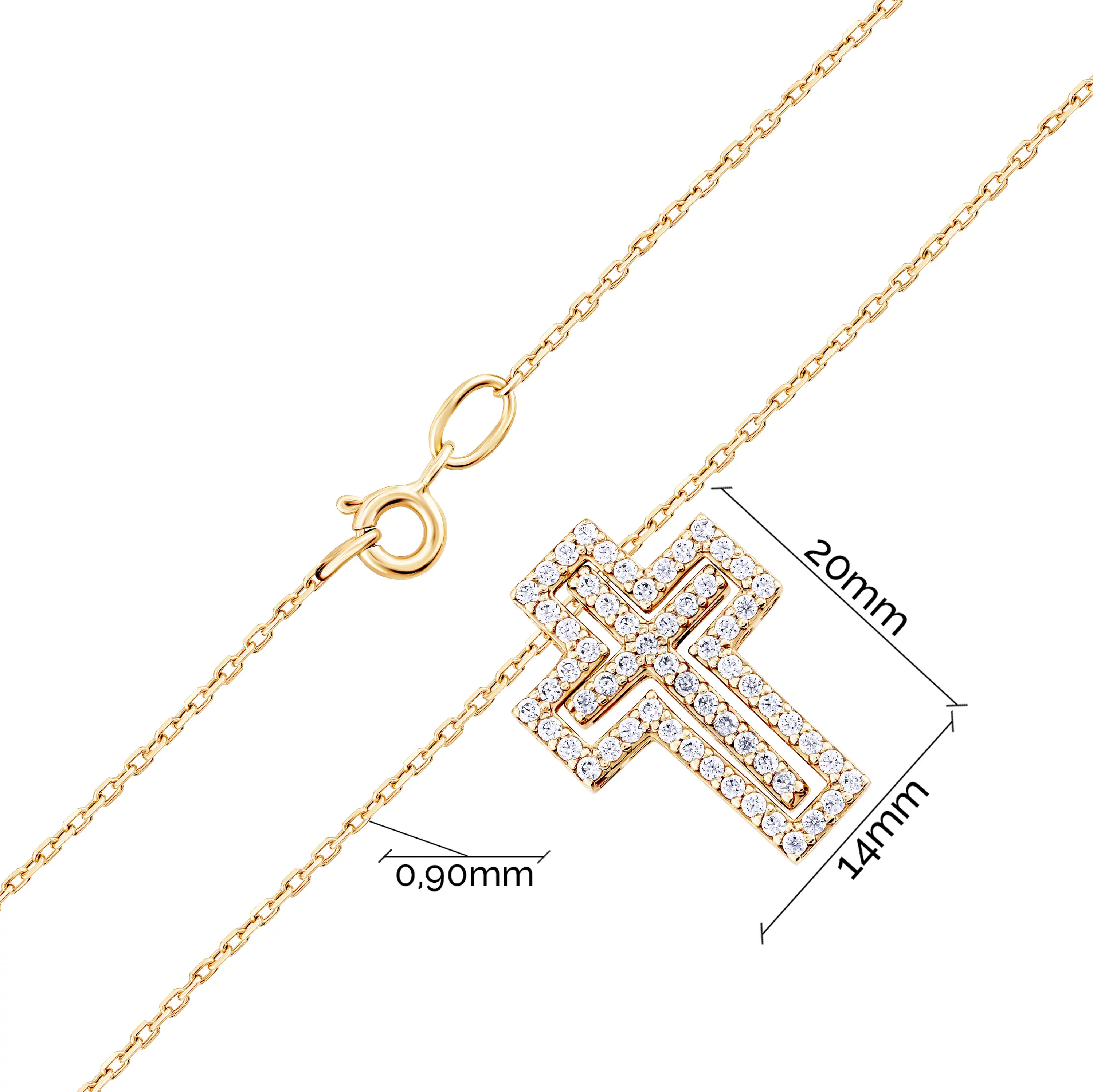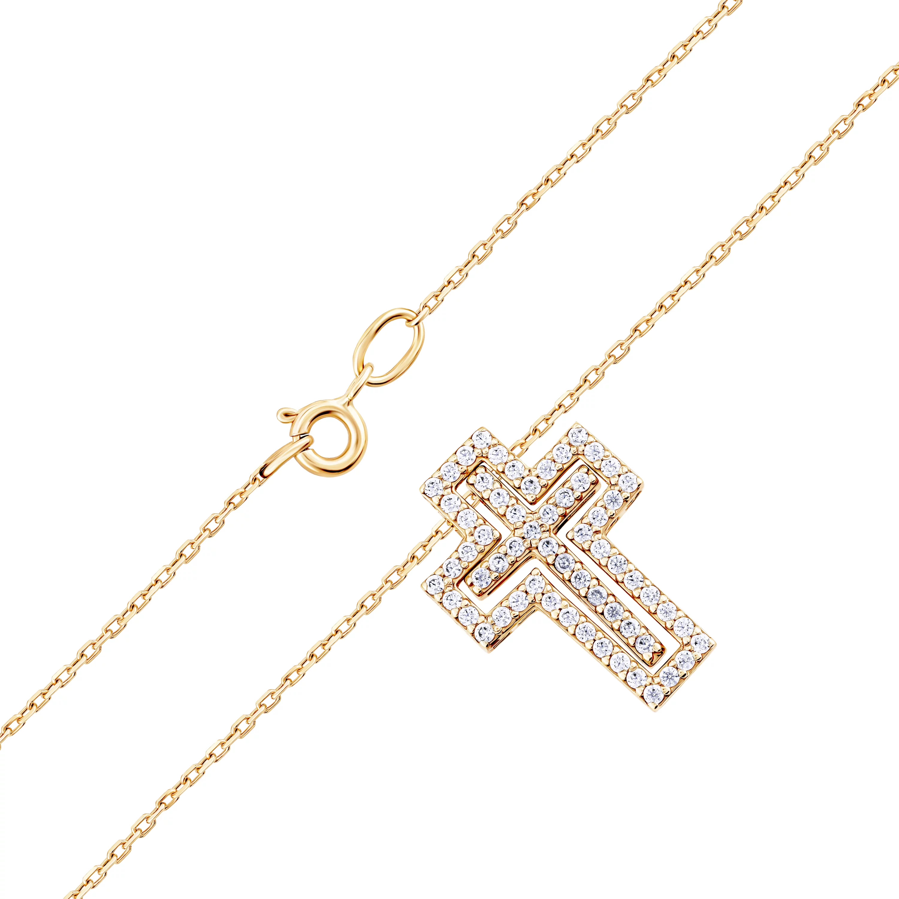 Цепочка из желтого золота с подвесом "Крестик" и фианитами с якорным плетением - 1688851