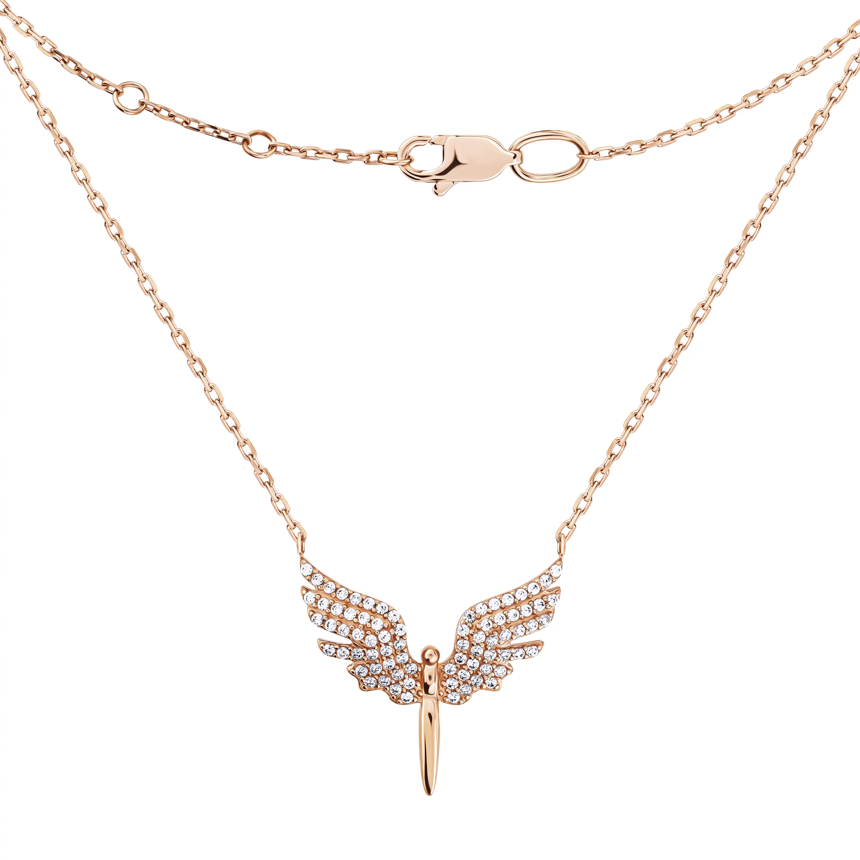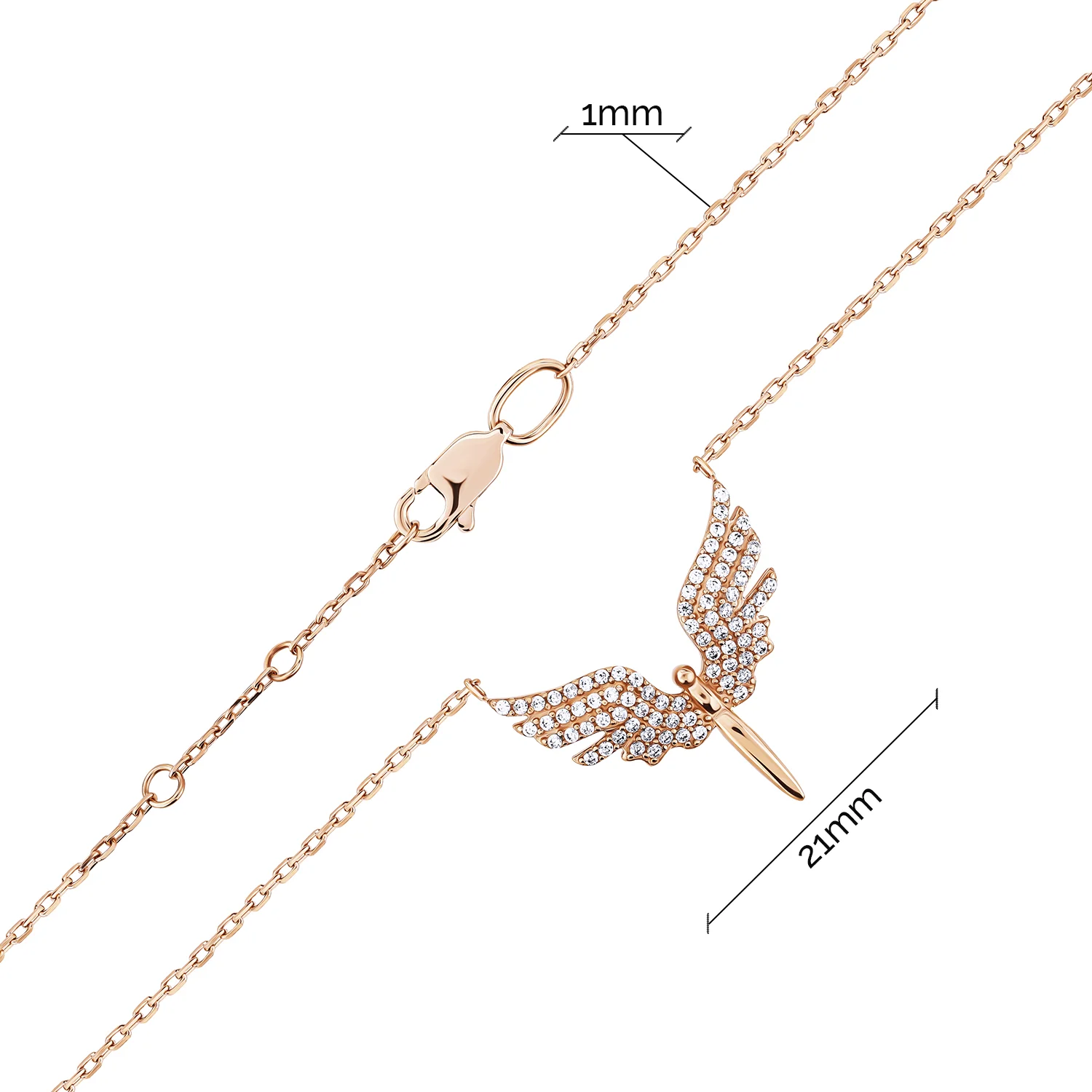 Элегантная цепочка с подвесом "Сердце" из красного золота с якорным плетением и фианитами - 1923915
