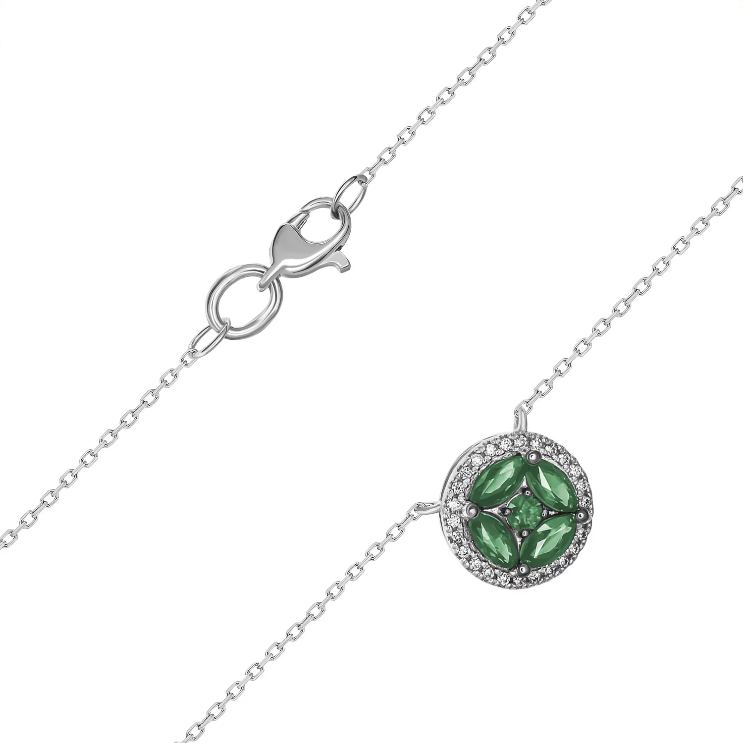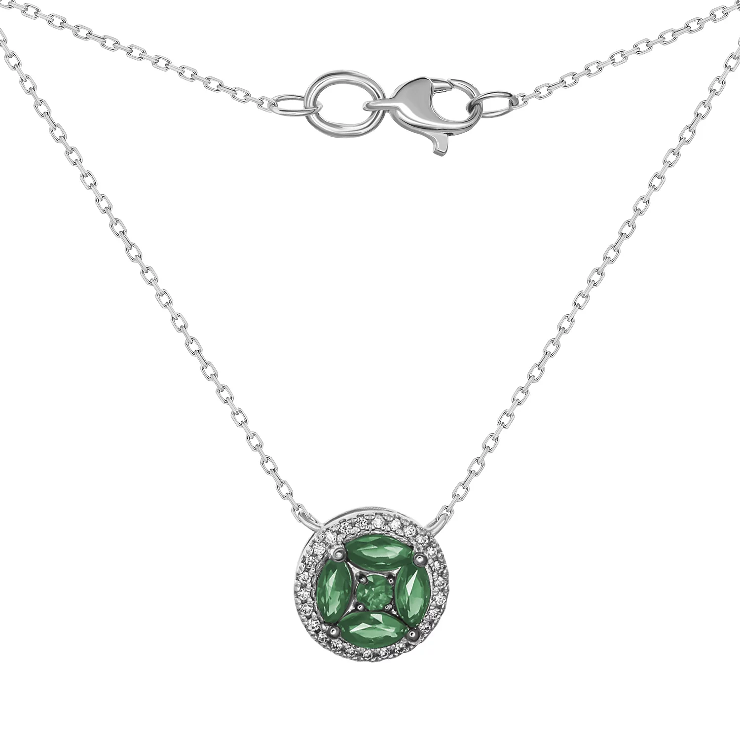 Колье из красного золота с подвесом с изумрудами и бриллиантами плетение якорное - 1683919