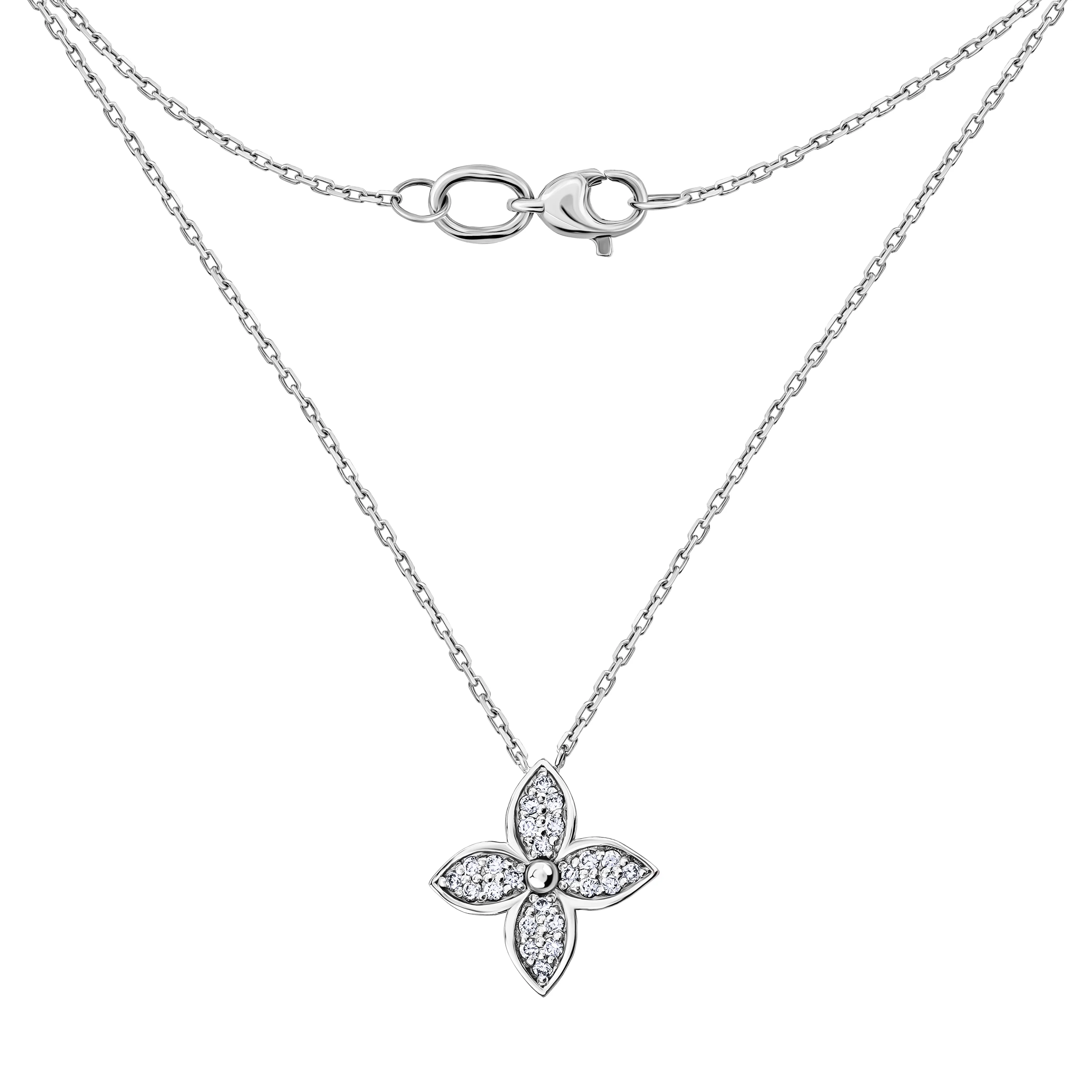 Стильное колье с подвесами "Цветок" из белого золота с подвесом бриллиантами и якорным плетением - 1858593