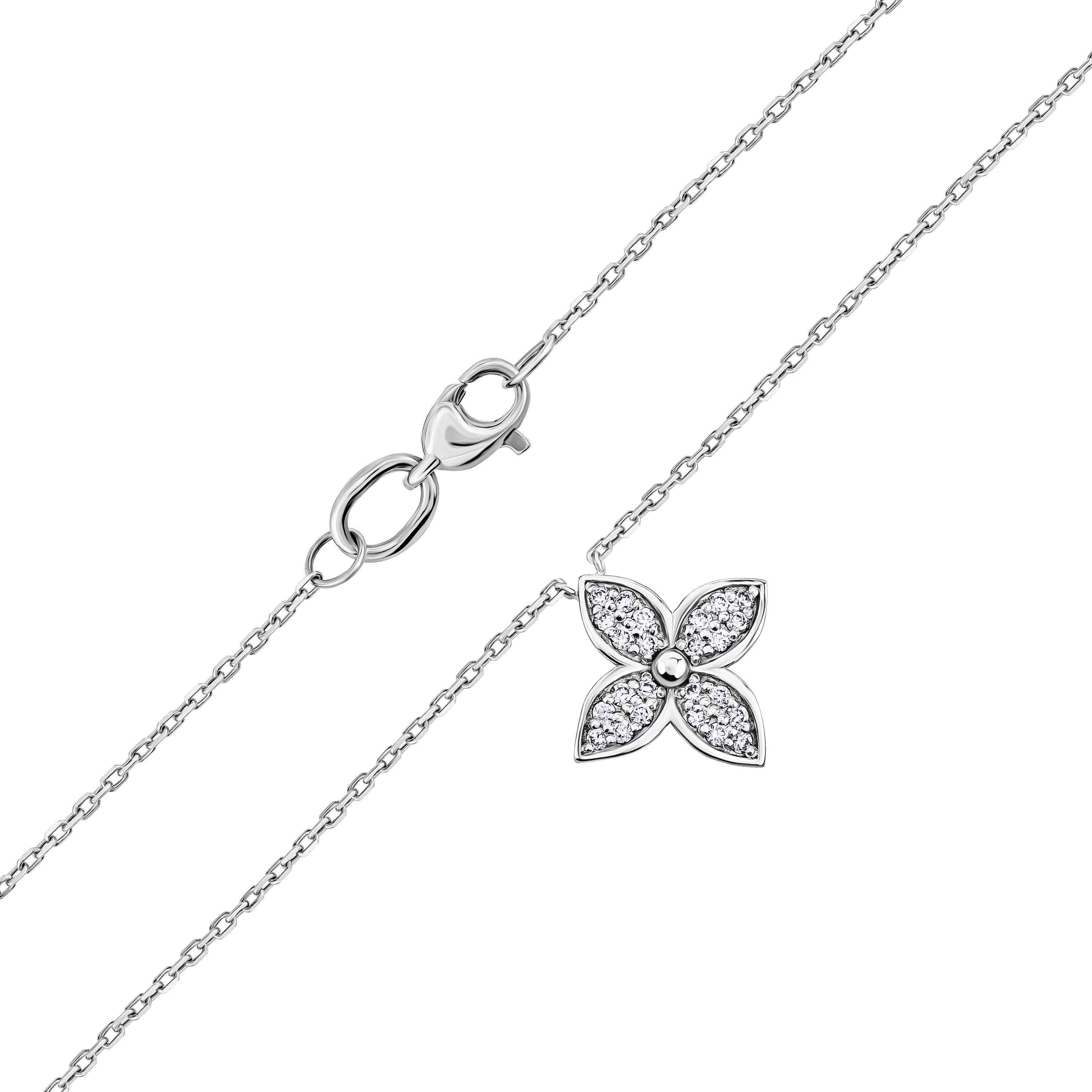 Стильное колье с подвеской "Цветок" из белого золота с бриллиантом и якорным плетением - 1879109