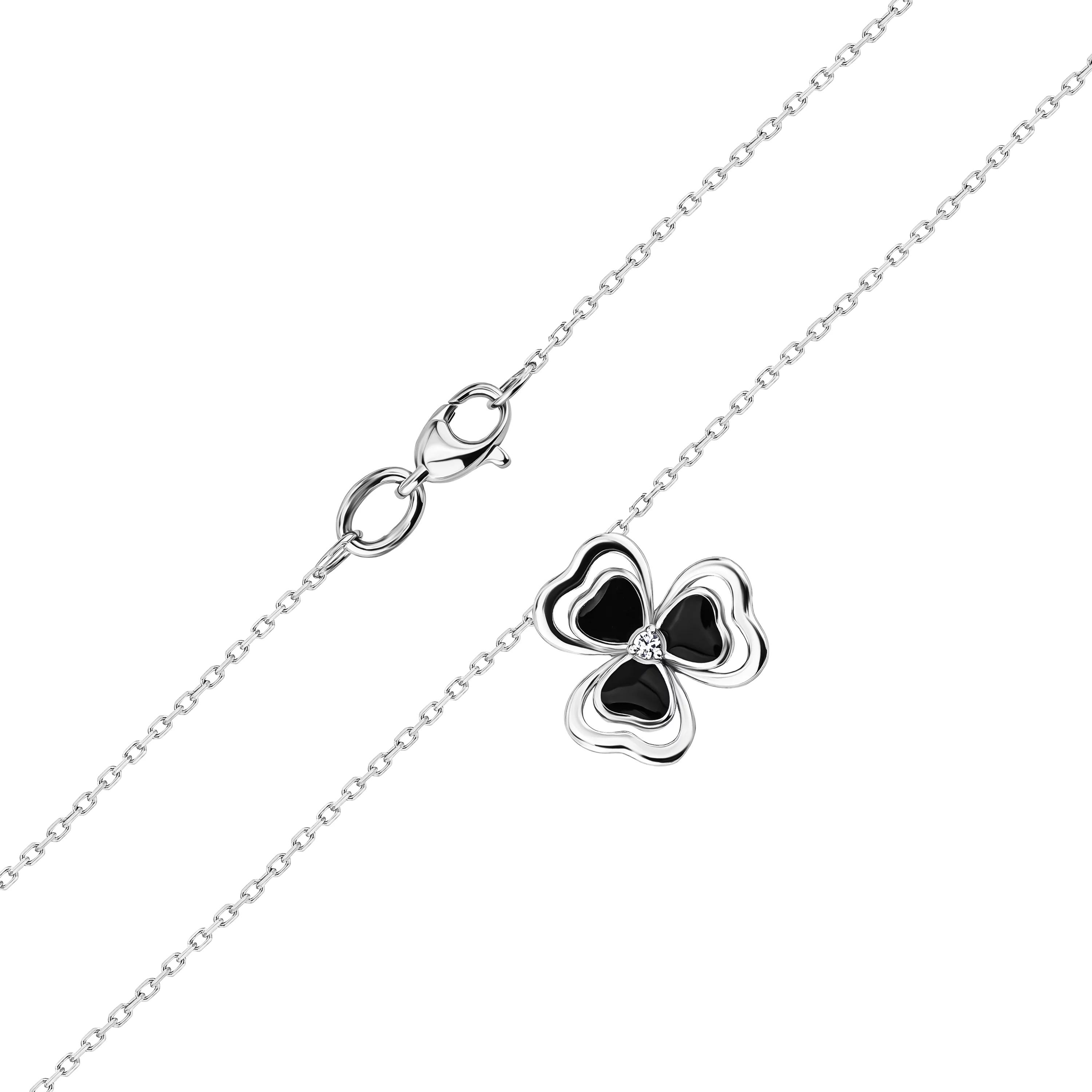 Колье с подвесом "Флора" в красном золоте с якорным плетением с фианитом и эмалью - 1915884