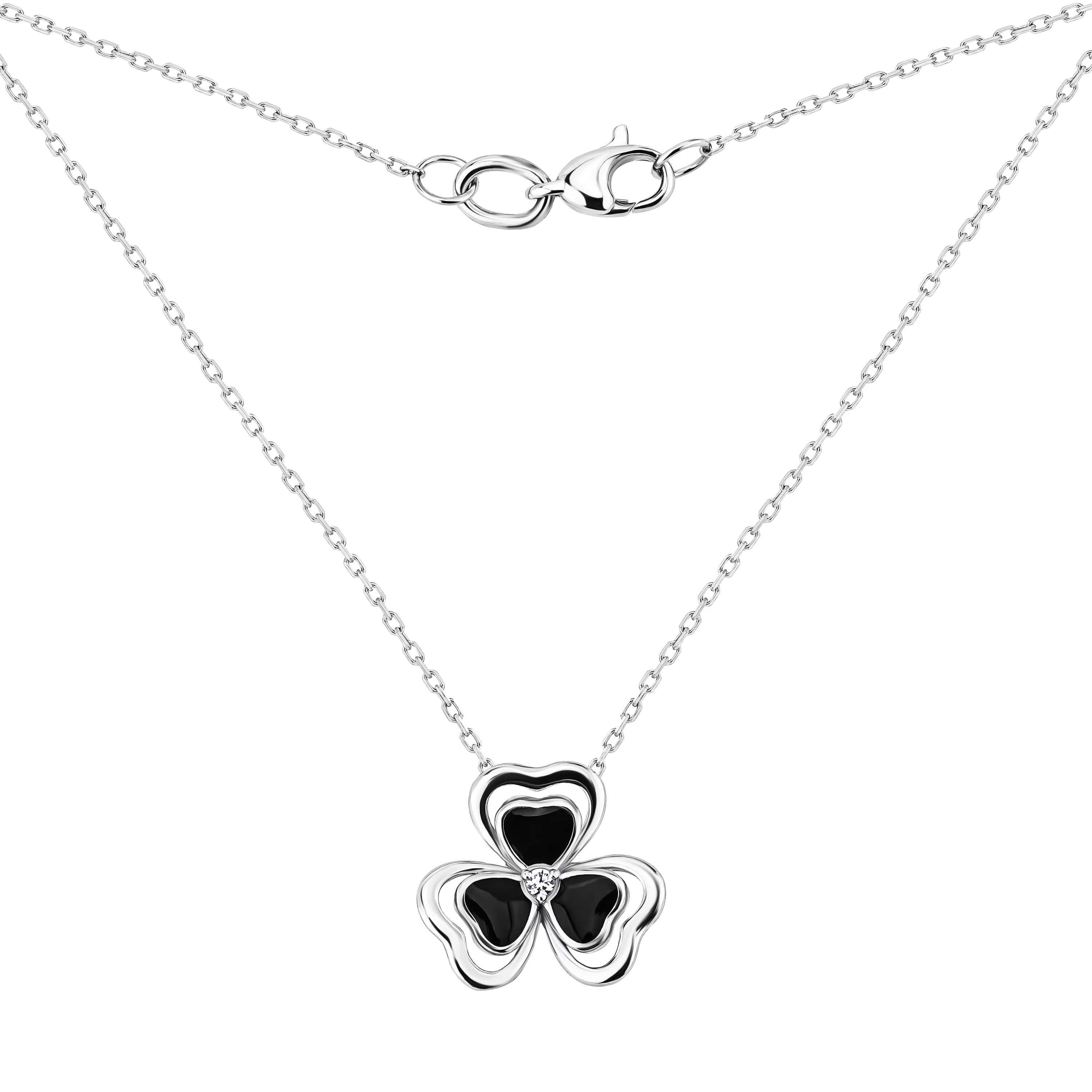 Колье из красного золота с подвесом "Клевер" с фианитом якорное плетение - 1688537