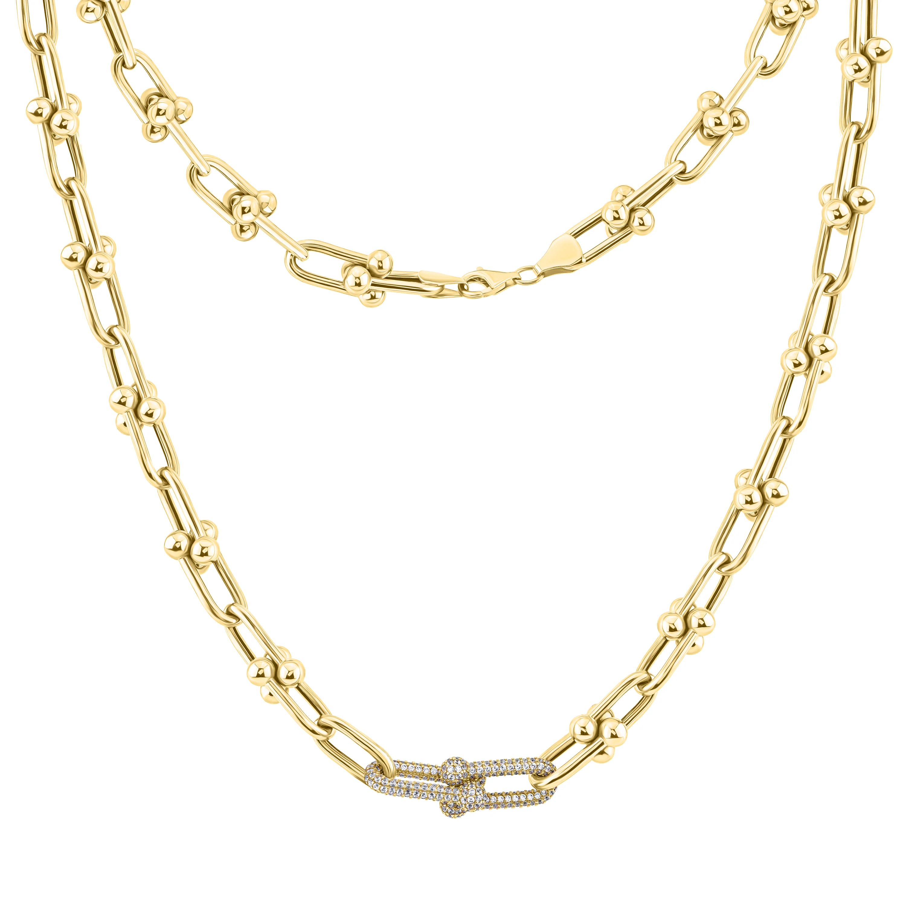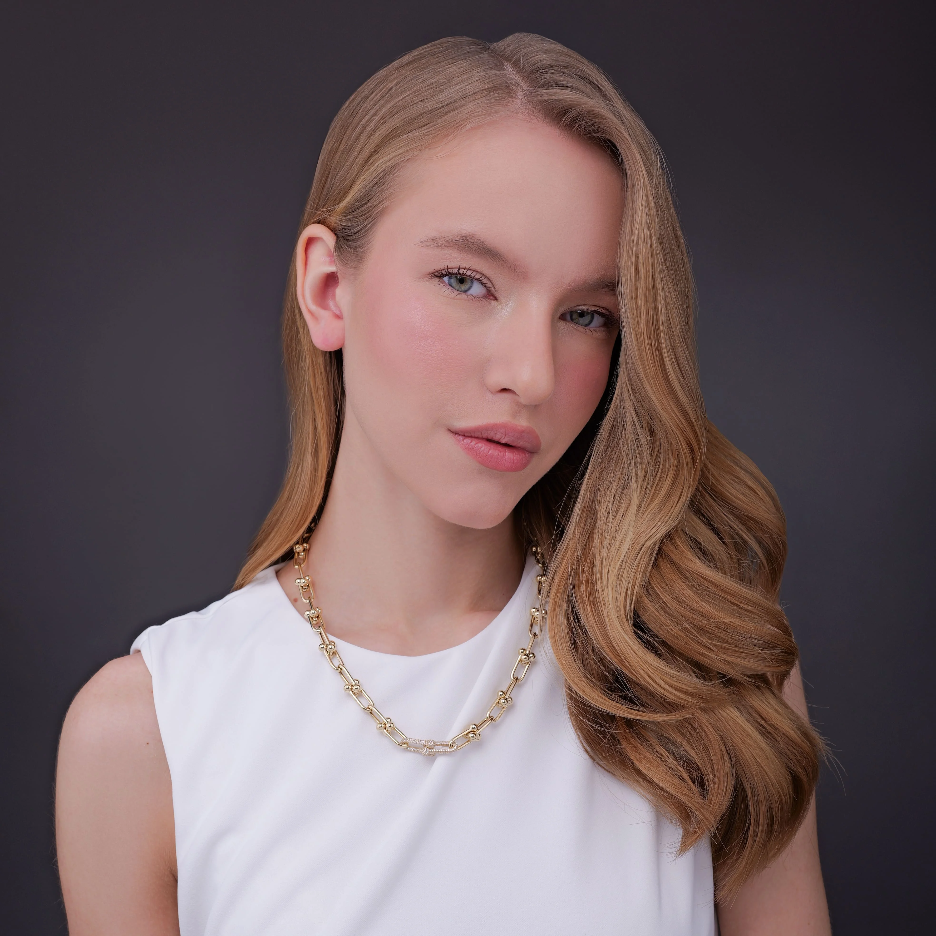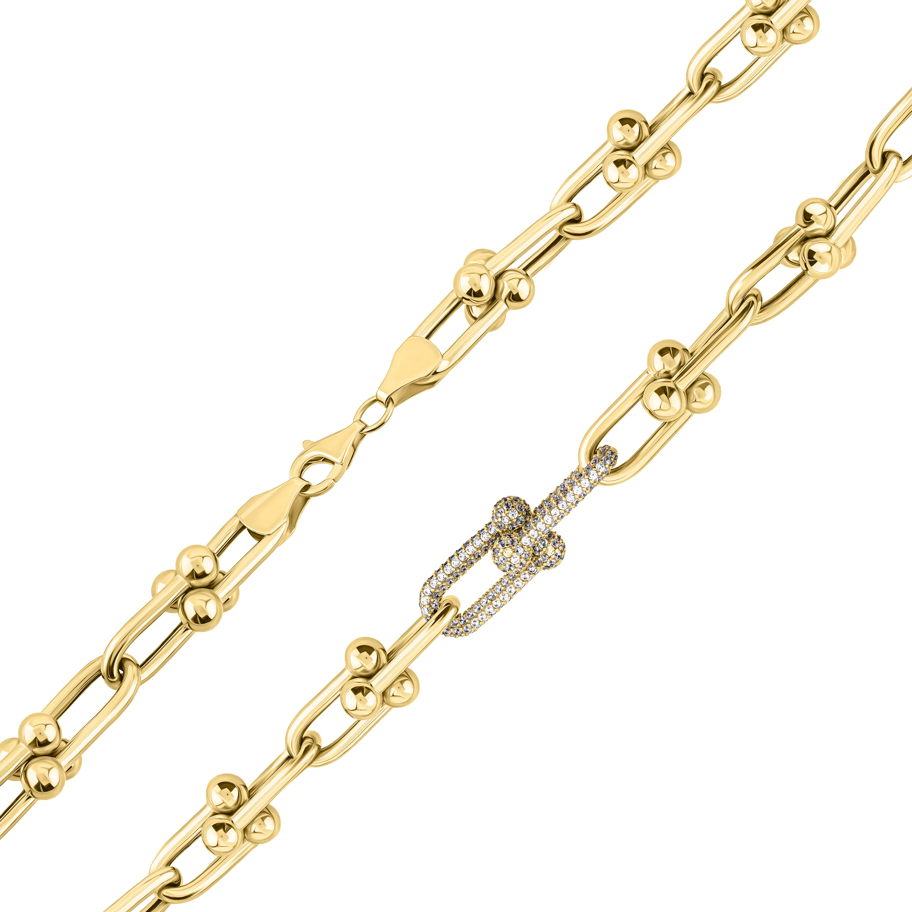 Стильное колье "Звенья" в желтом золоте с фианитами плетение якорь - 1984563