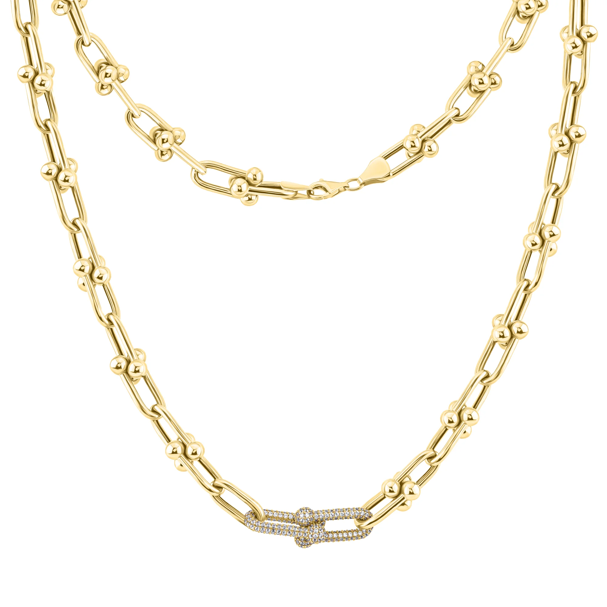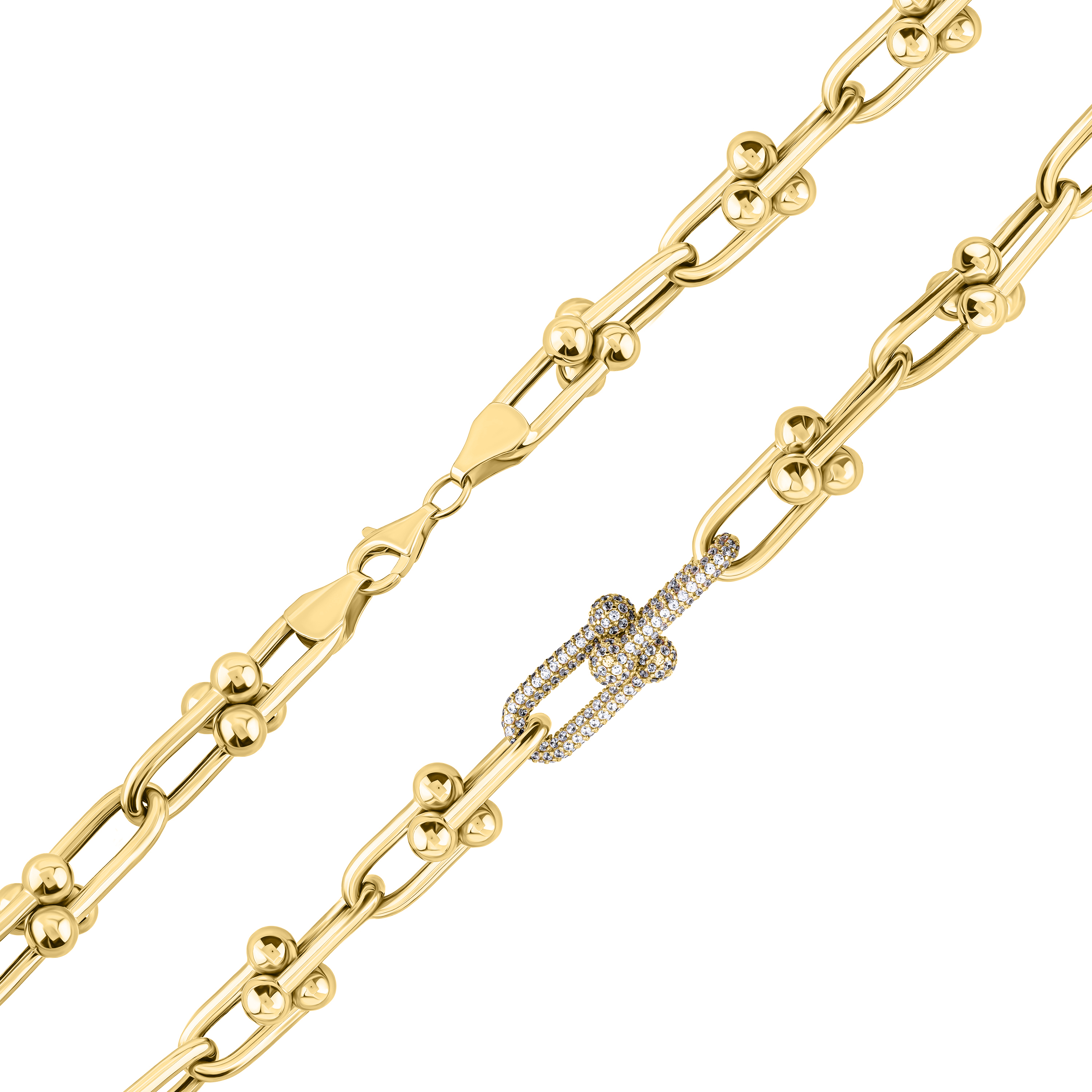 Стильное колье "Звенья" в желтом золоте с фианитами - 1984563