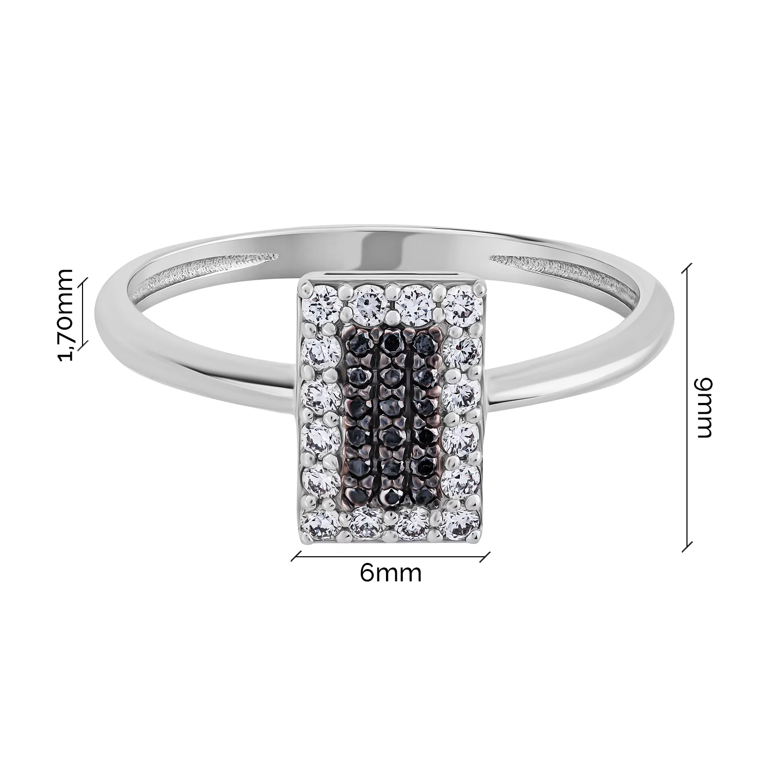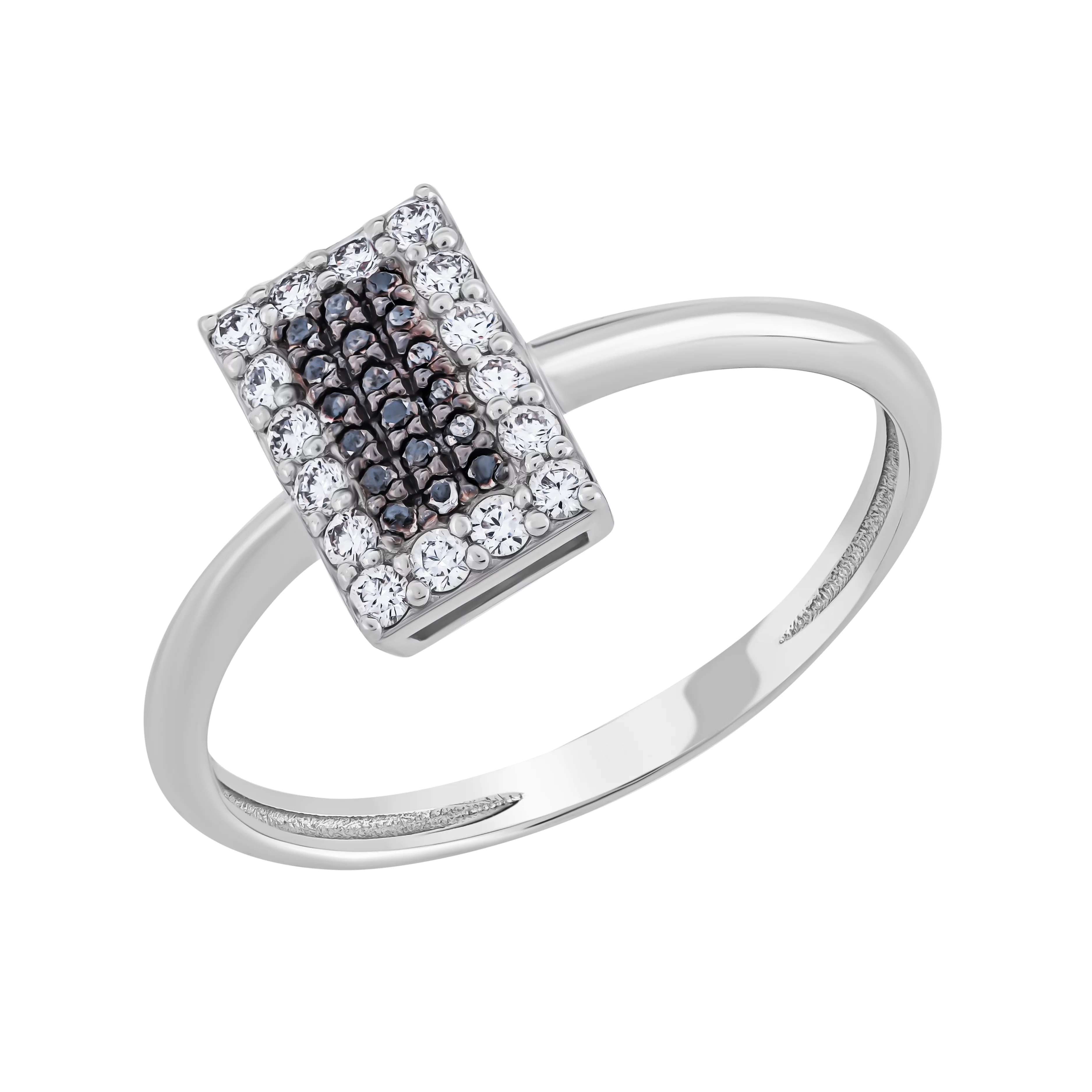Стильное кольцо "Квадрат" в белом золоте с бриллиантами - 1946782