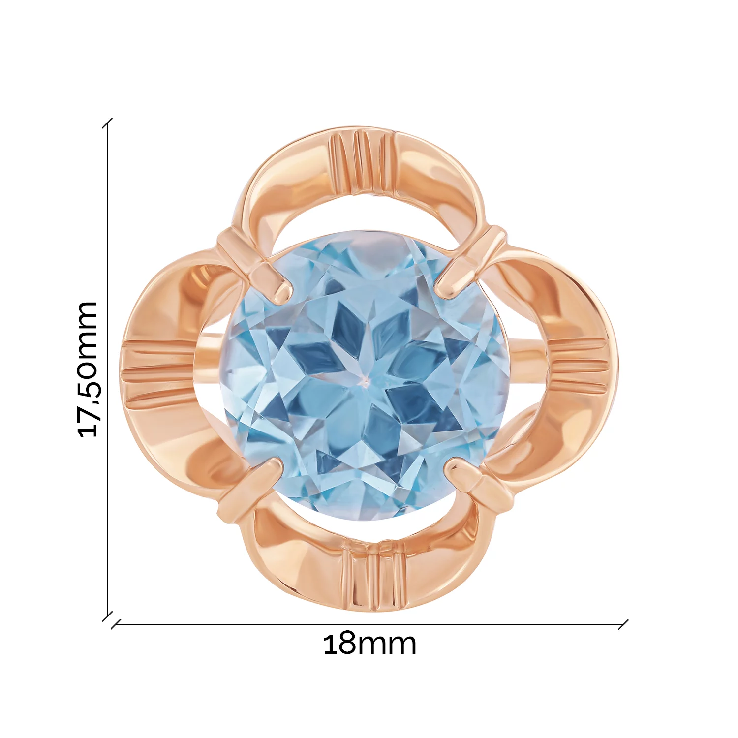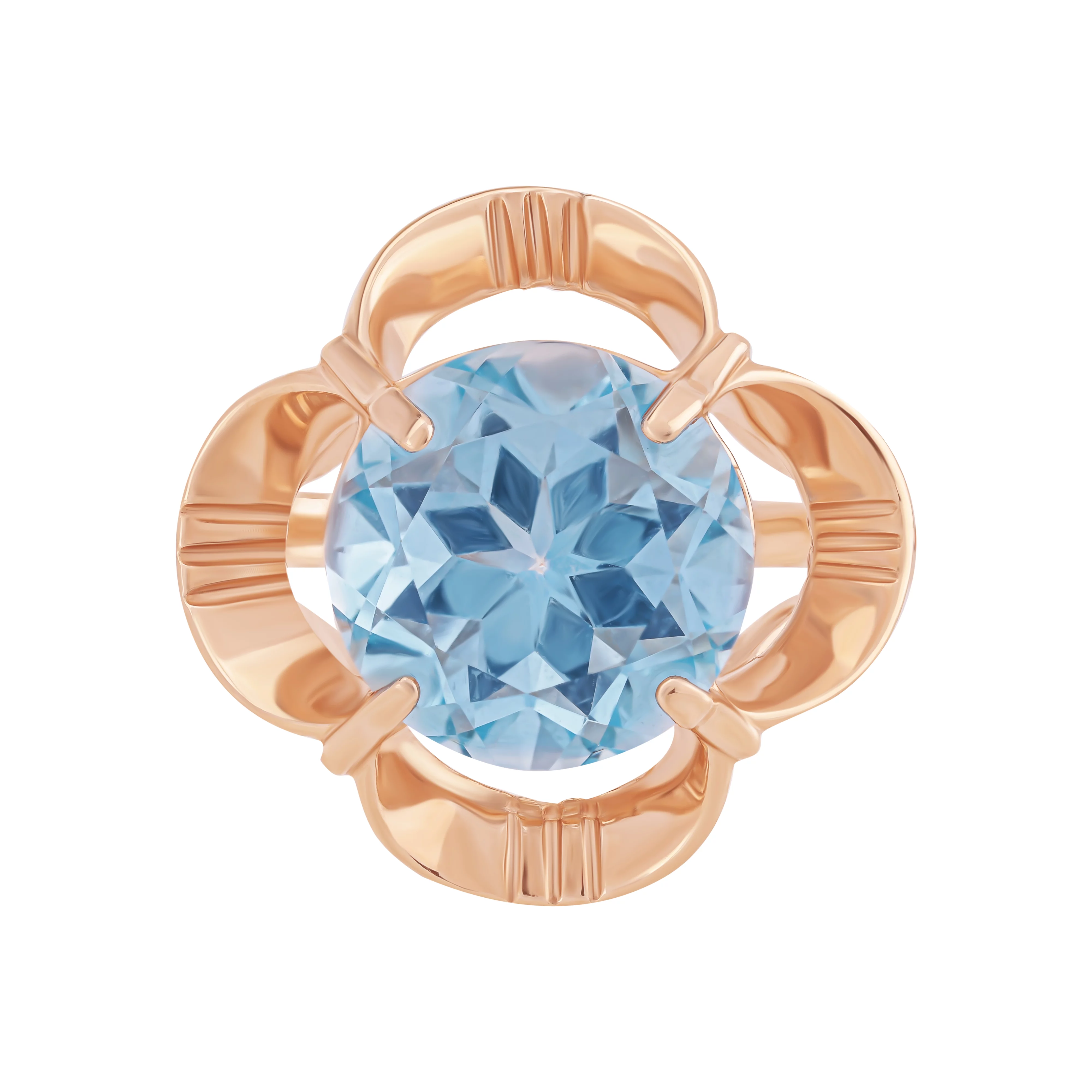 Стильное кольцо в геометричном стиле в красном золоте с топазом и фианитами - 1939740