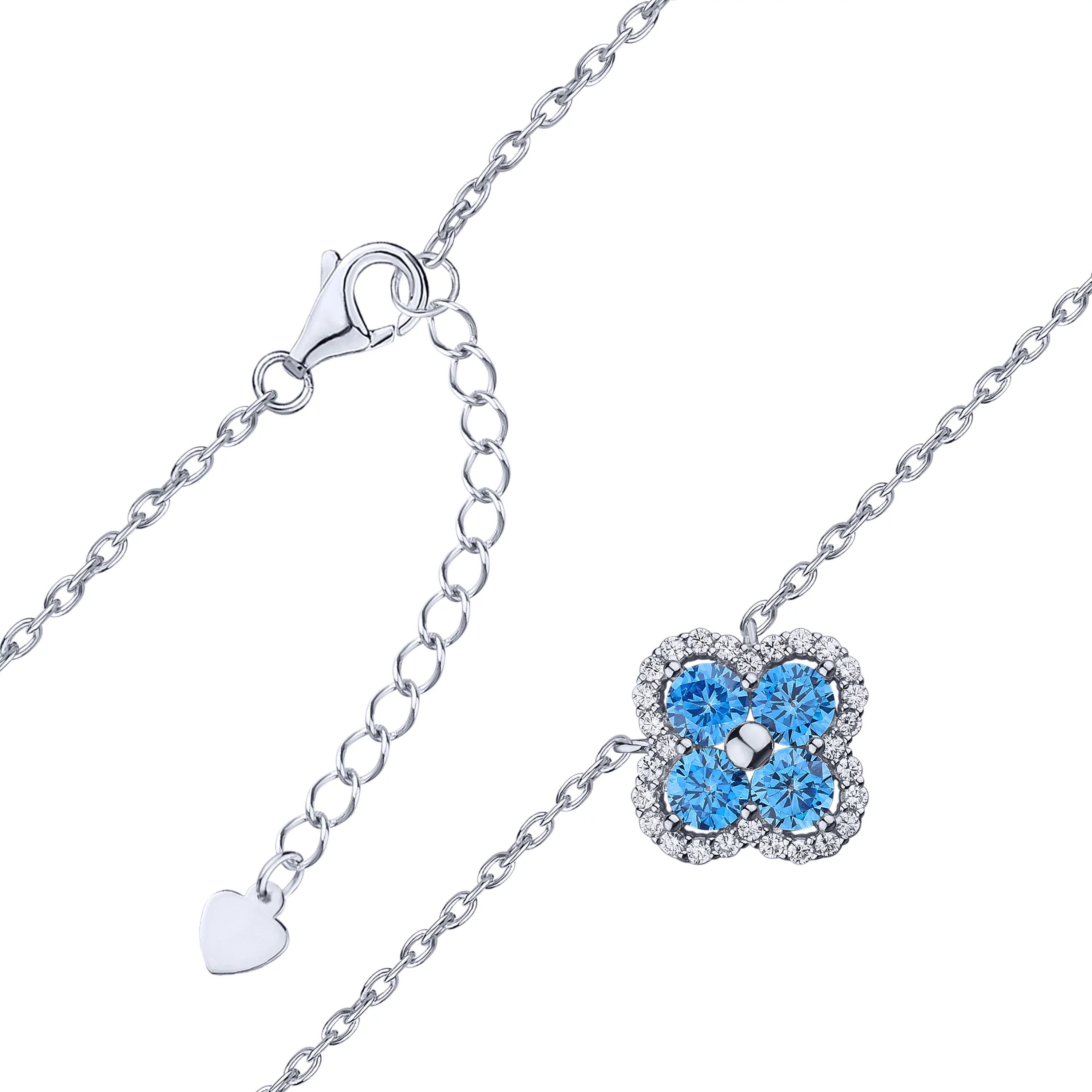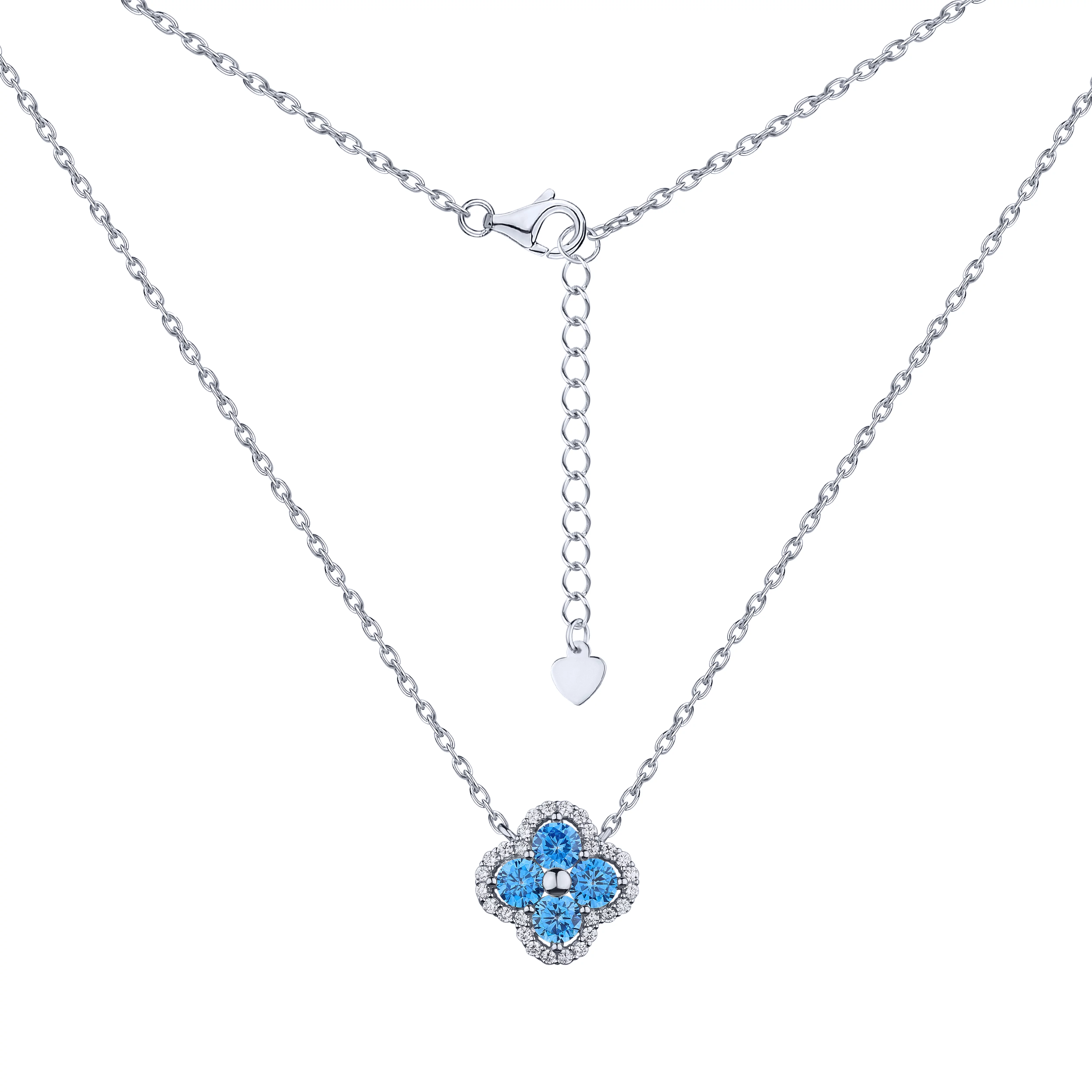 Элегантное колье из серебера с подвесом "Клевер" с фианитами и якорным плетением - 1962877