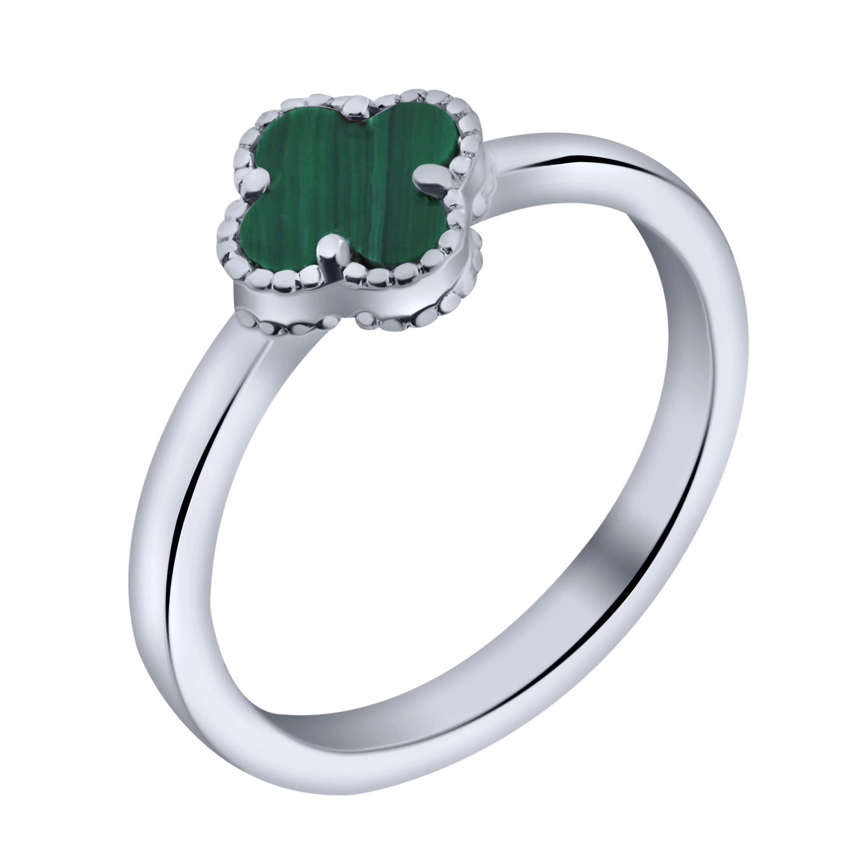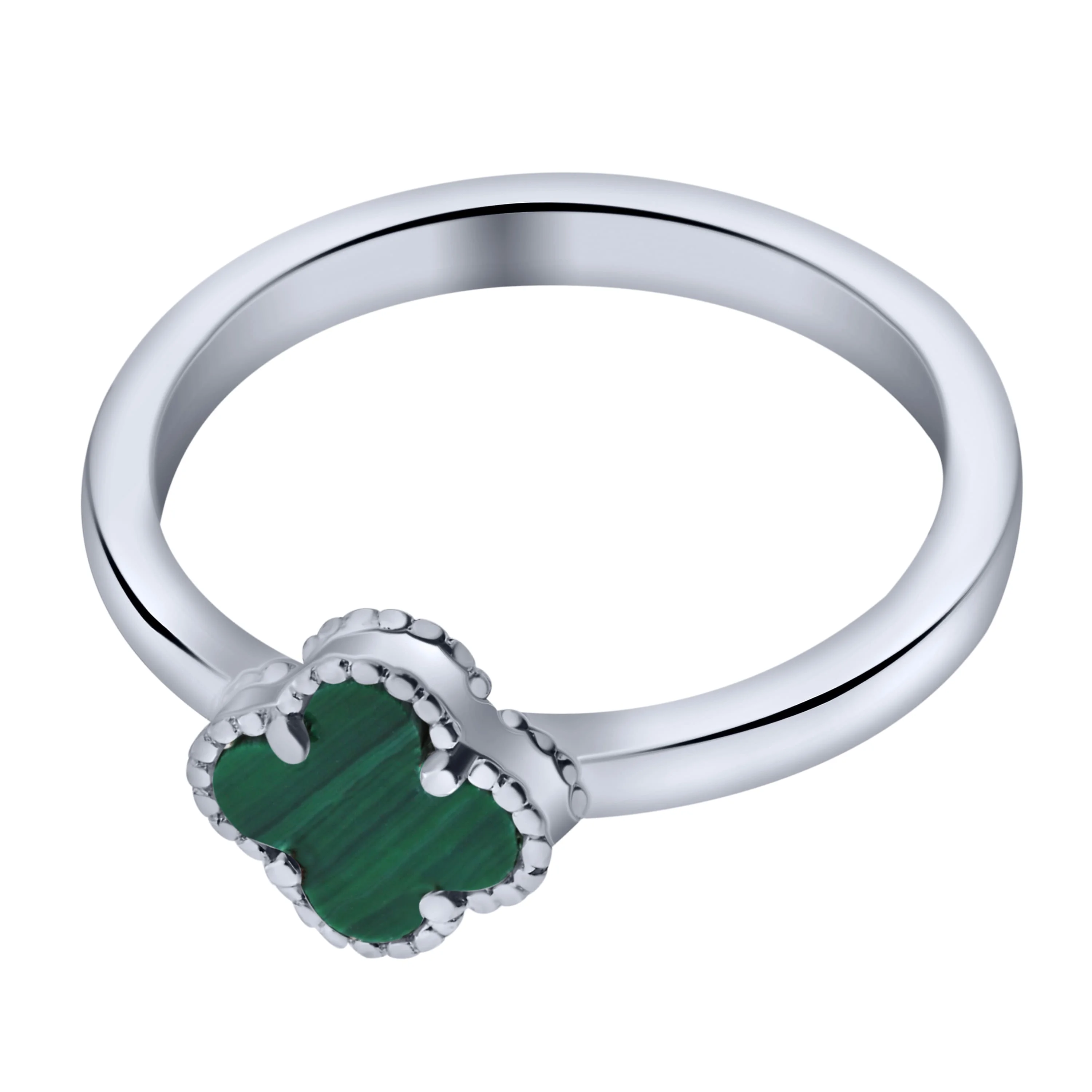 Стильное серебряное кольцо "Клевер" с малахитом - 1978381