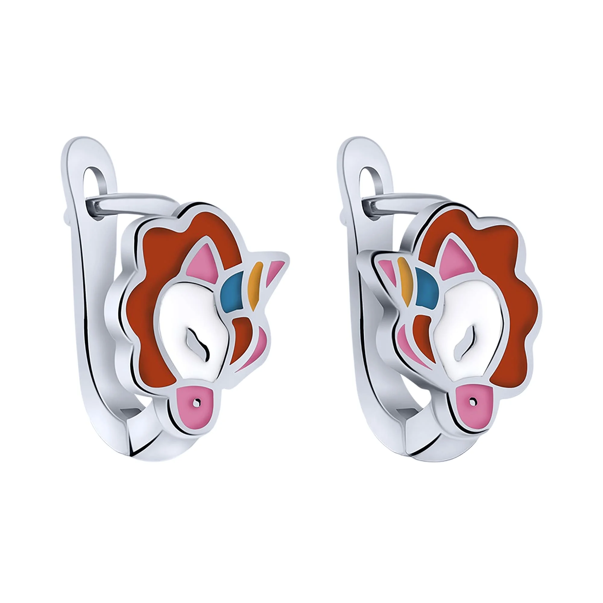 Стильные детские сережки "Единорог" с эмалью - 1978671