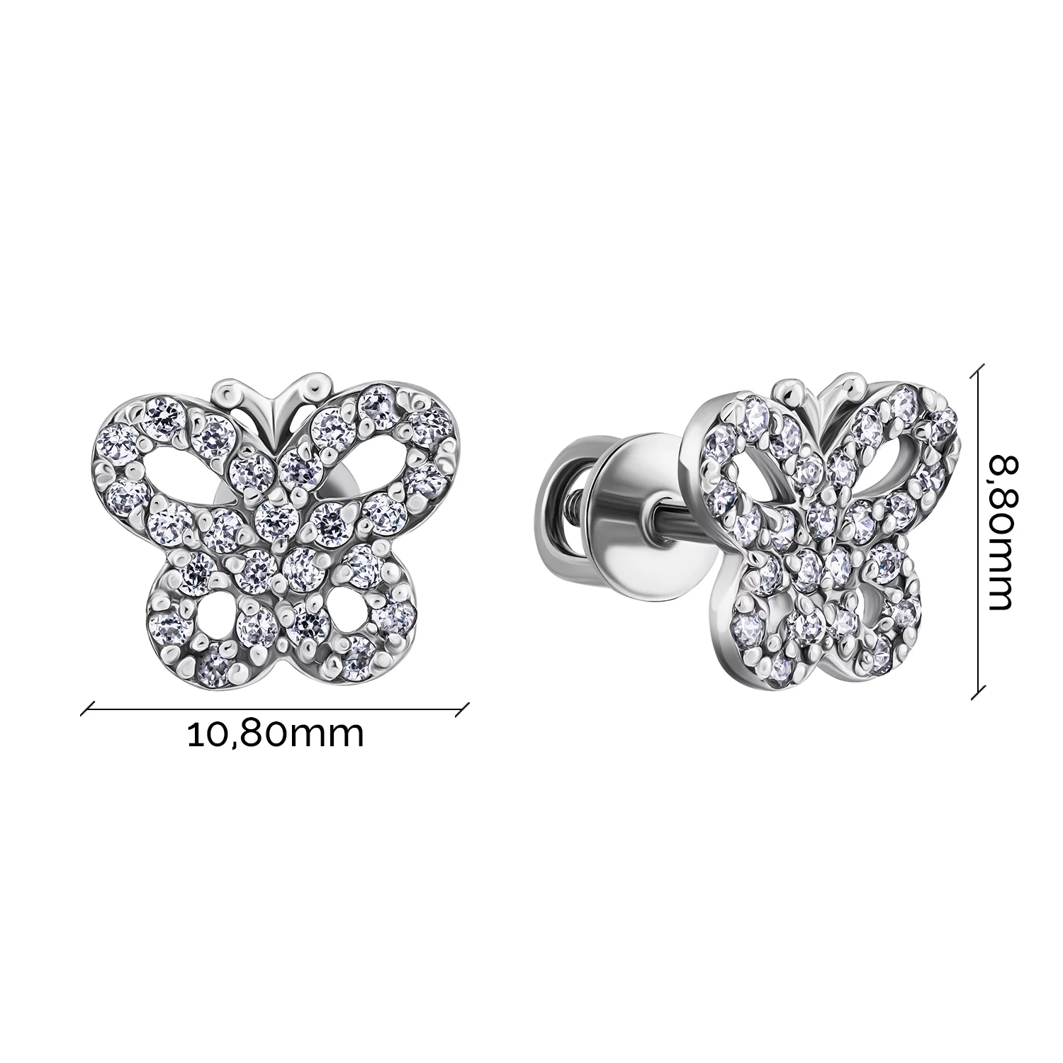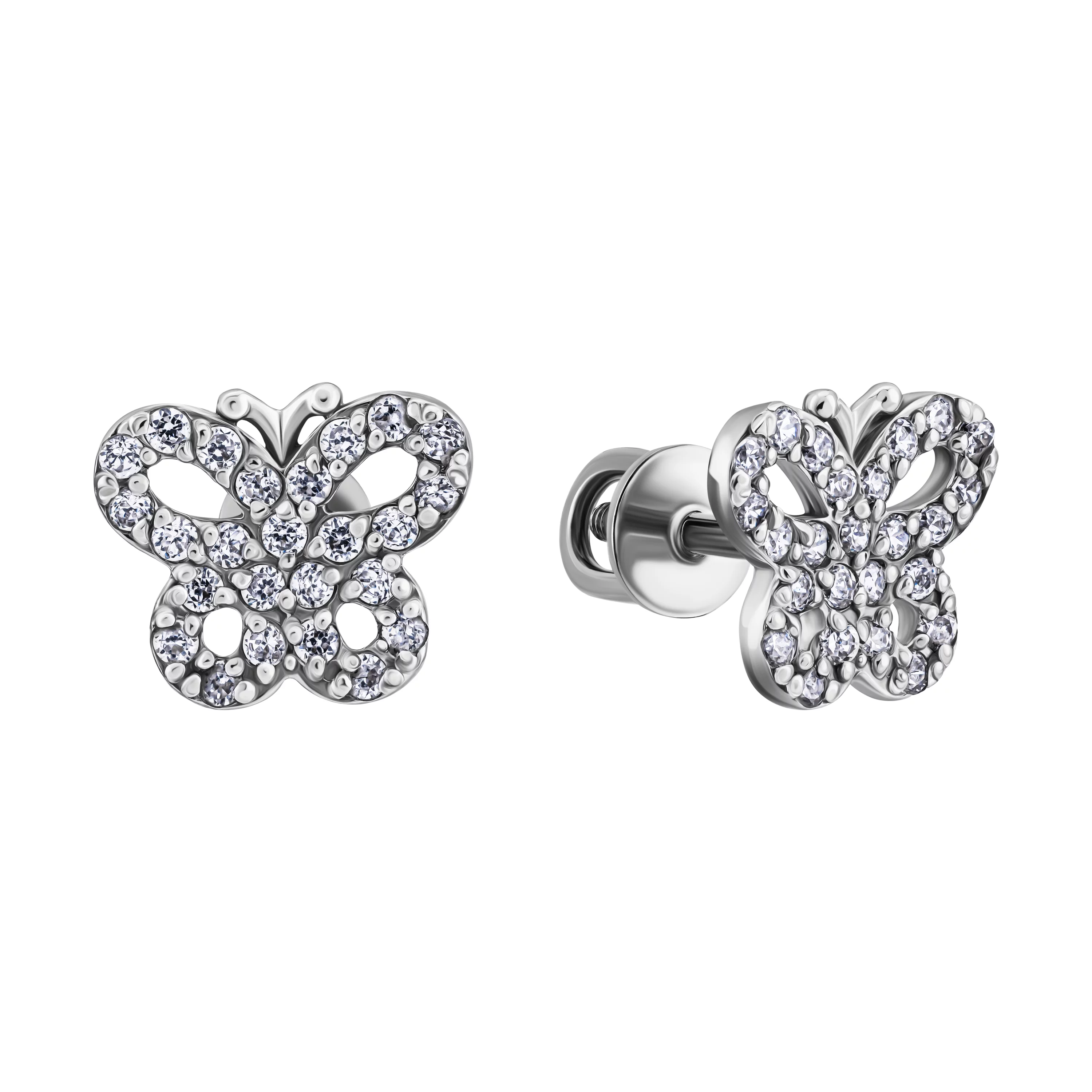 Элегантные серебряные сережки-пусеты "Бабочка" с россыпью фианитов - 1938063