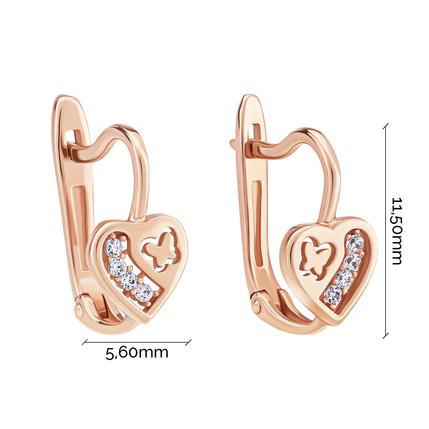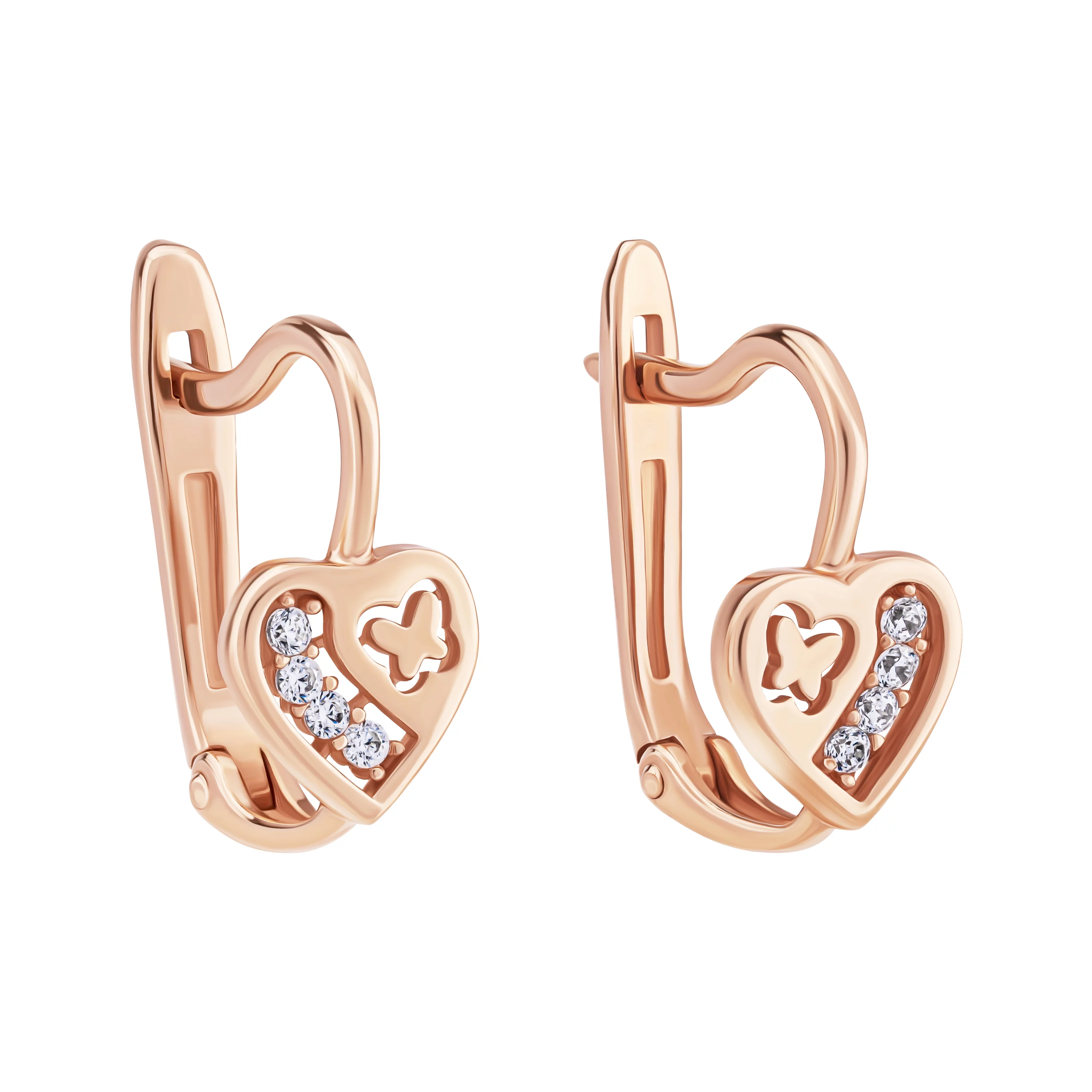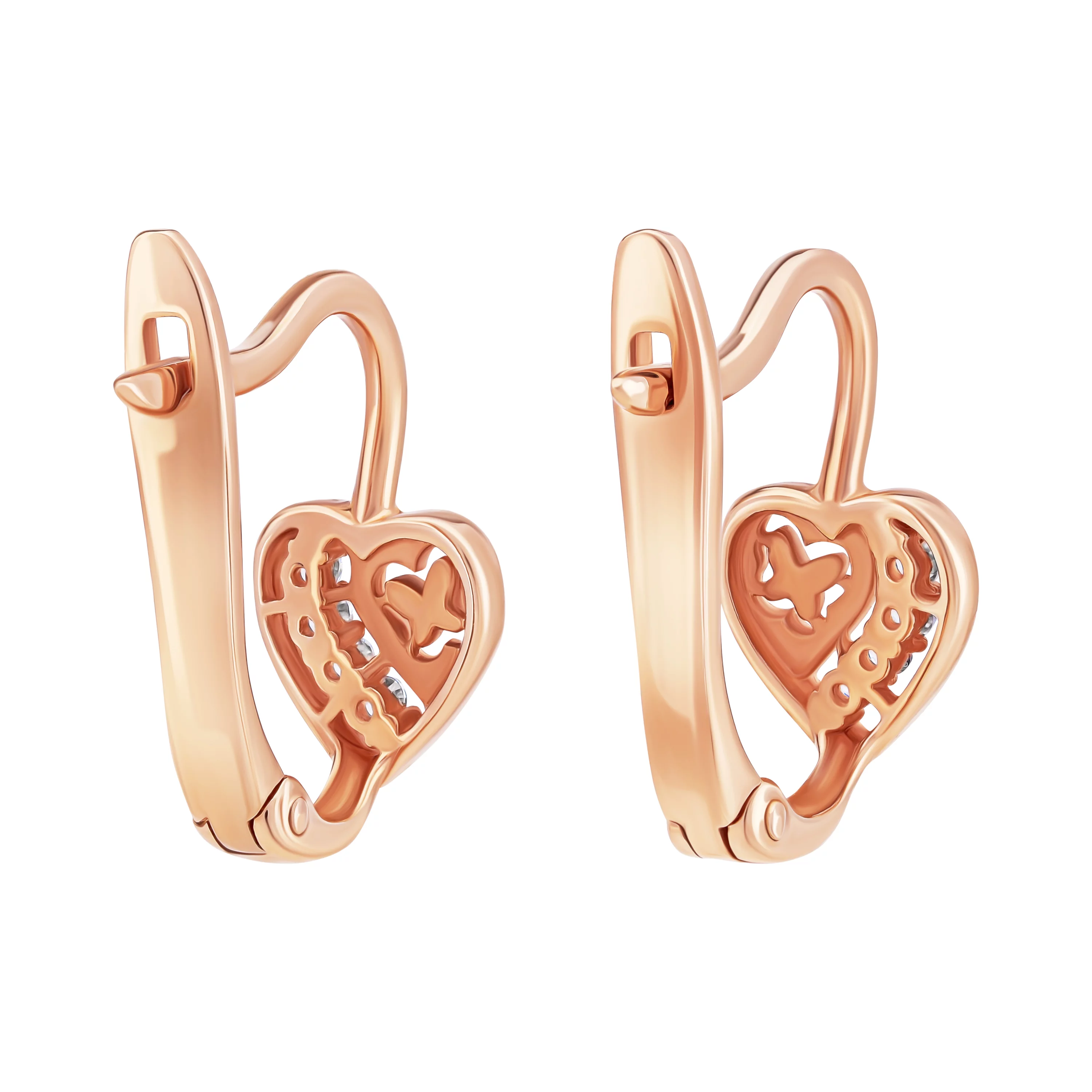 Элегантные сережки-гвоздики в форме сердца из красного золота с фианитами - 1877491