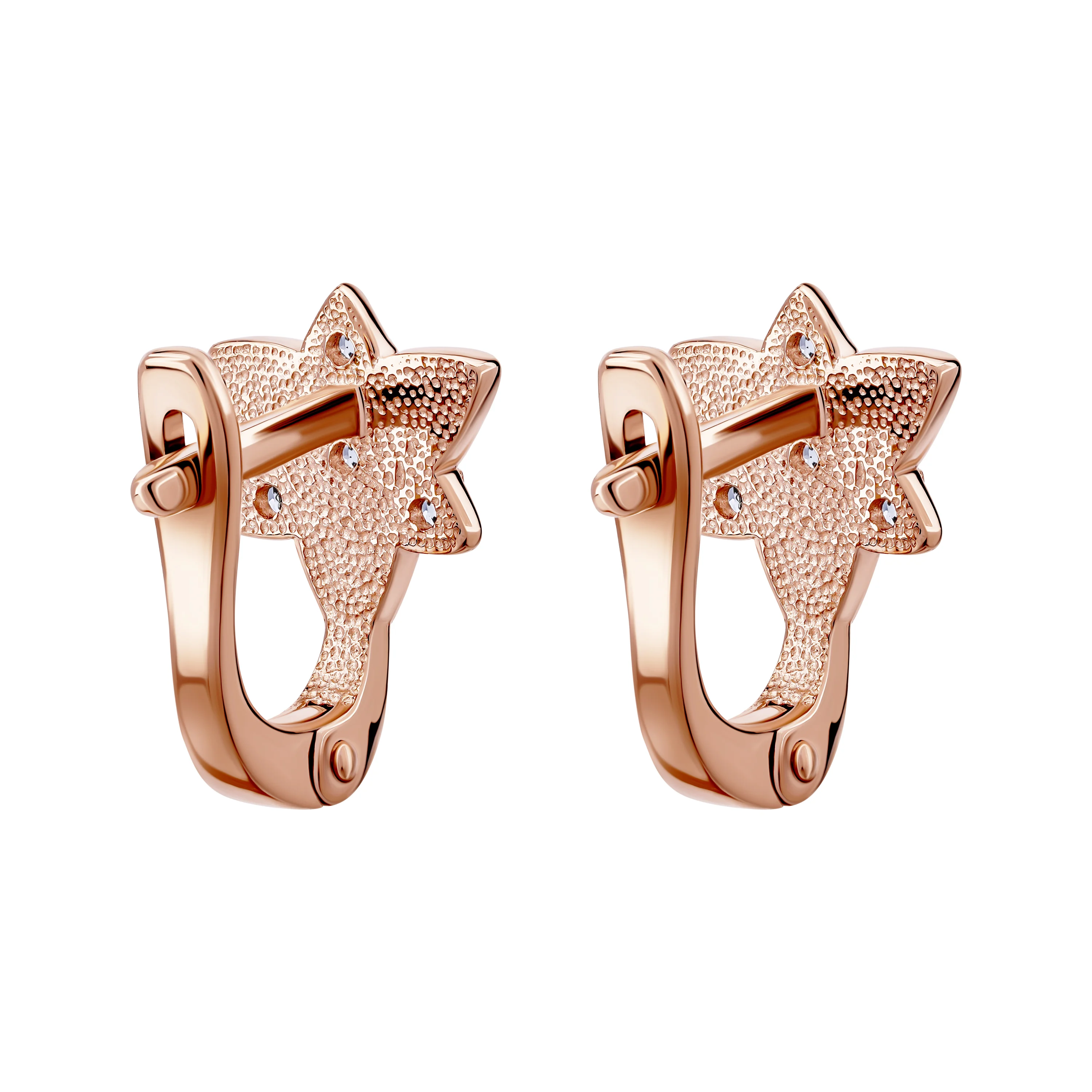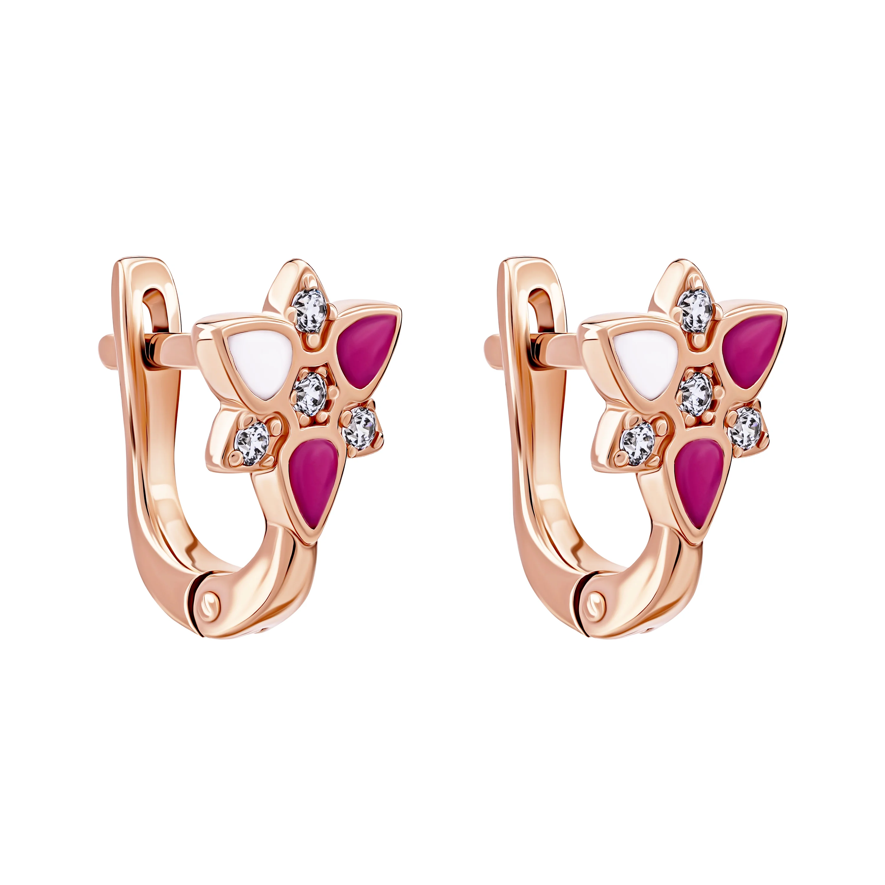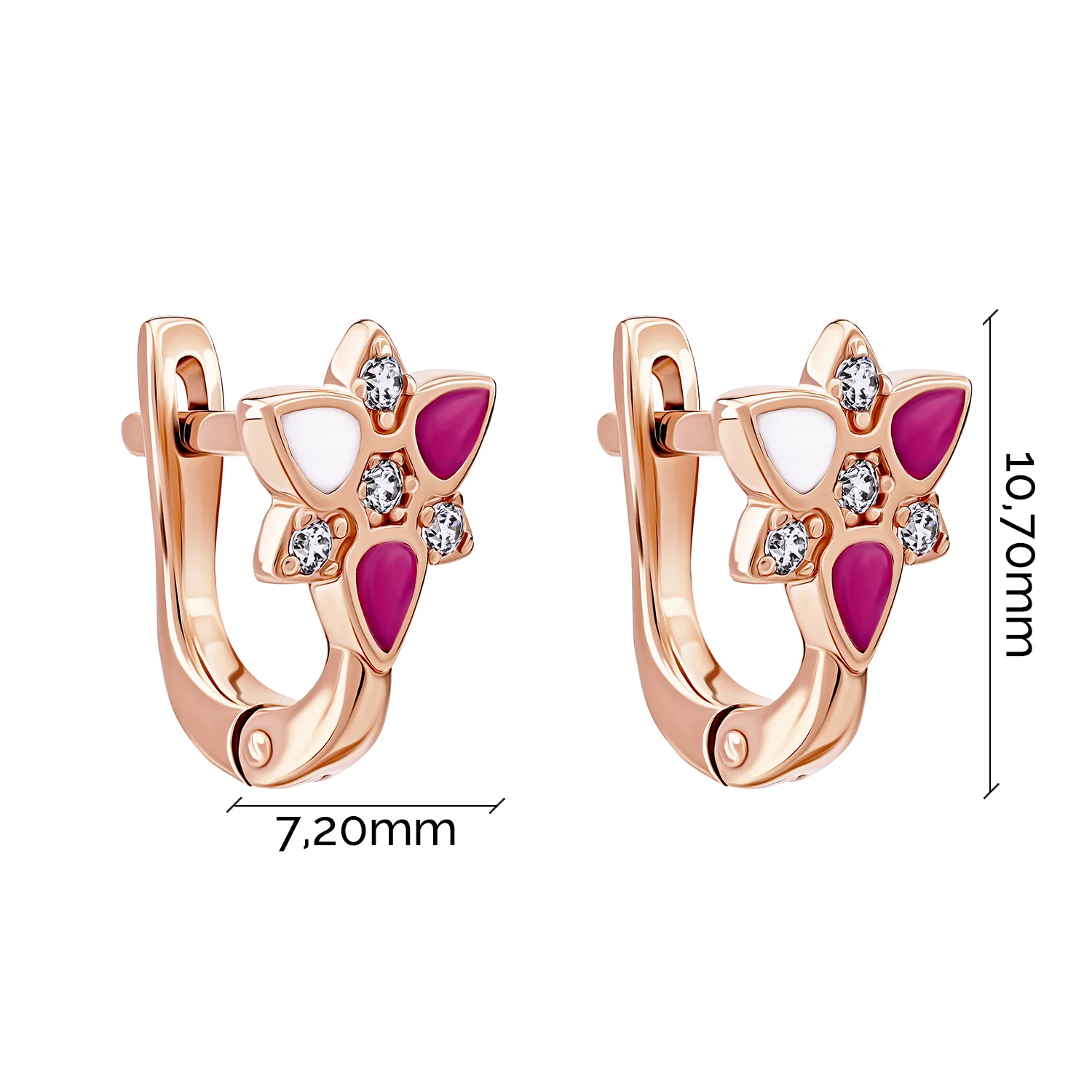 Стильные детские сережки "Цветок" в красном золоте с фианитами и эмалью - 1973672