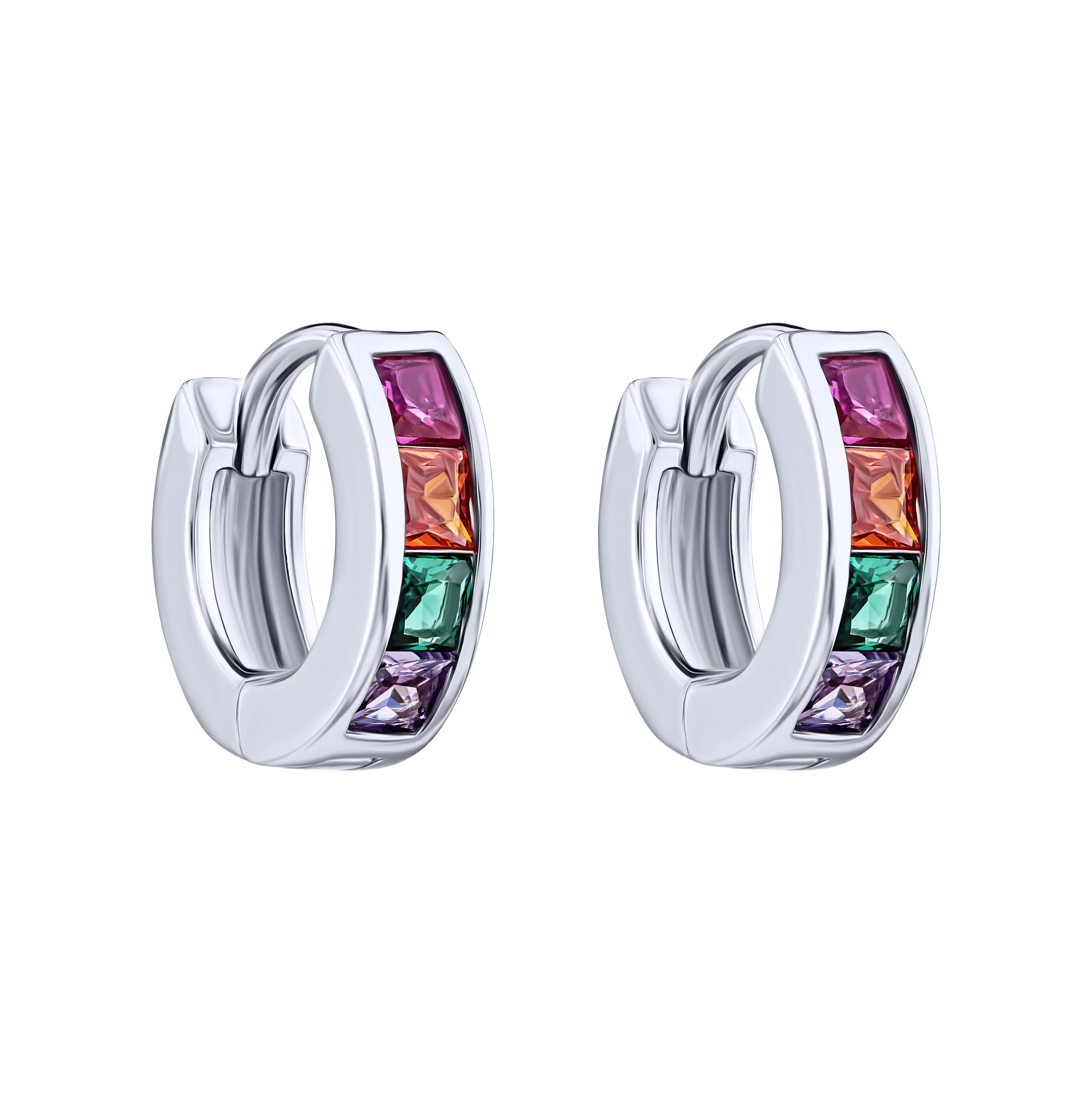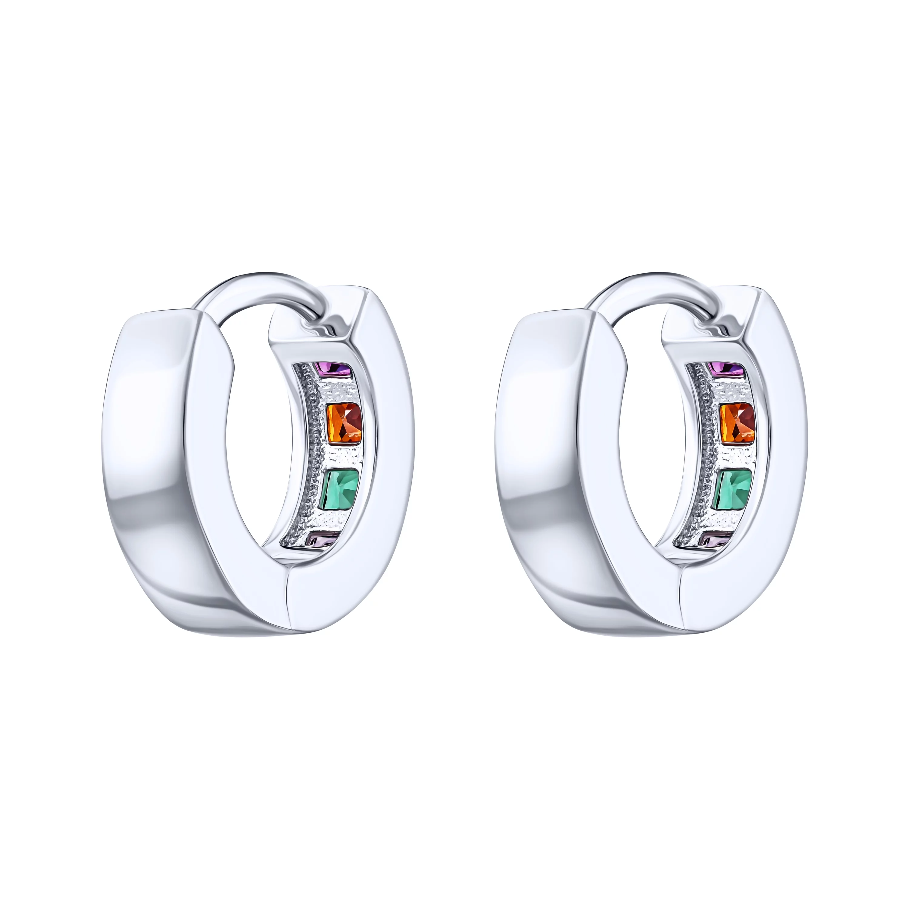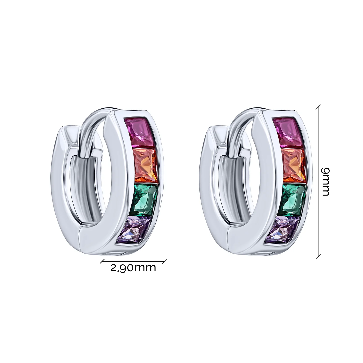 Серебряные стильные сережки-пусеты "Клевер" с ониксом и фианитами - 1940309