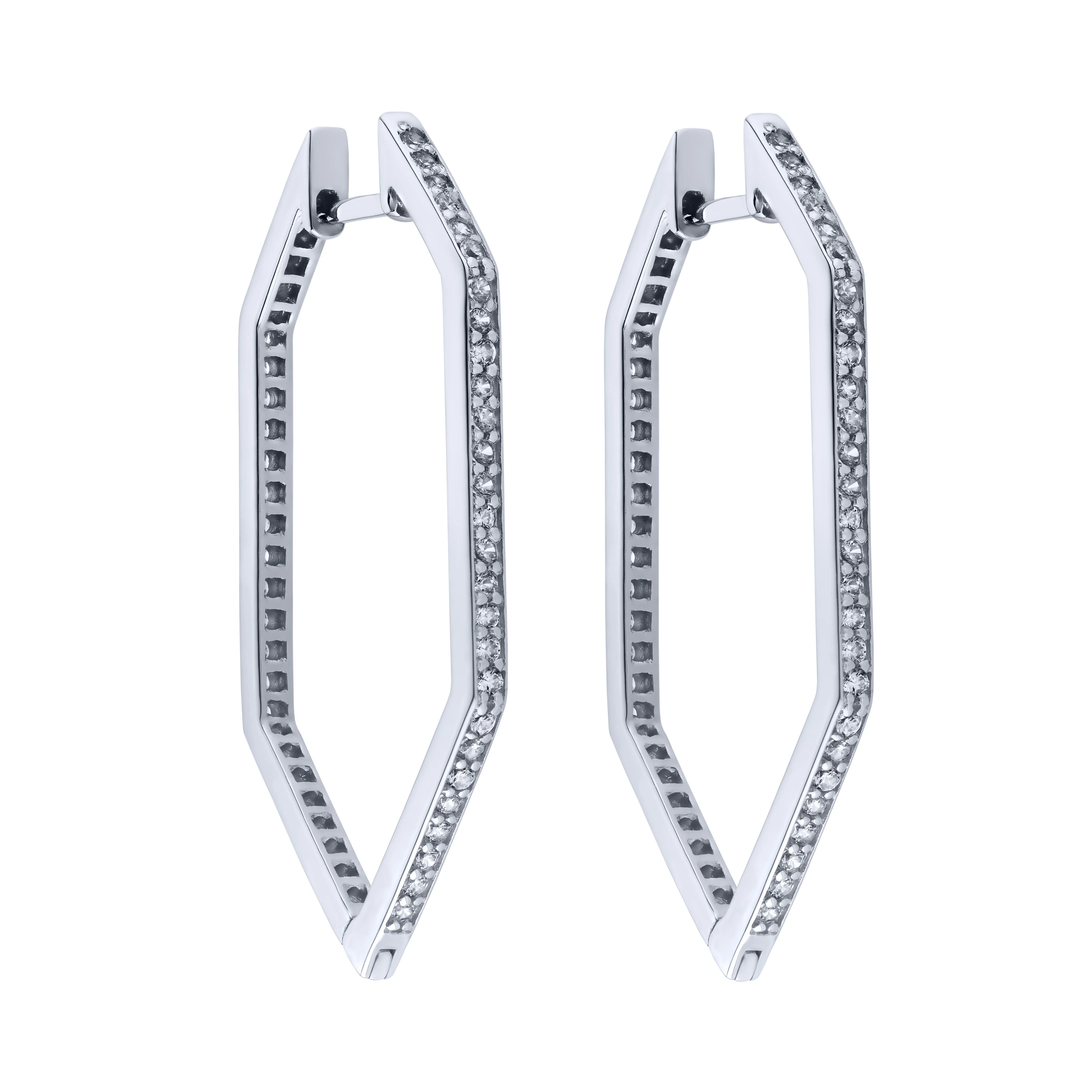 Стильные серебряные сережки-кольца с фианитами - 1979318