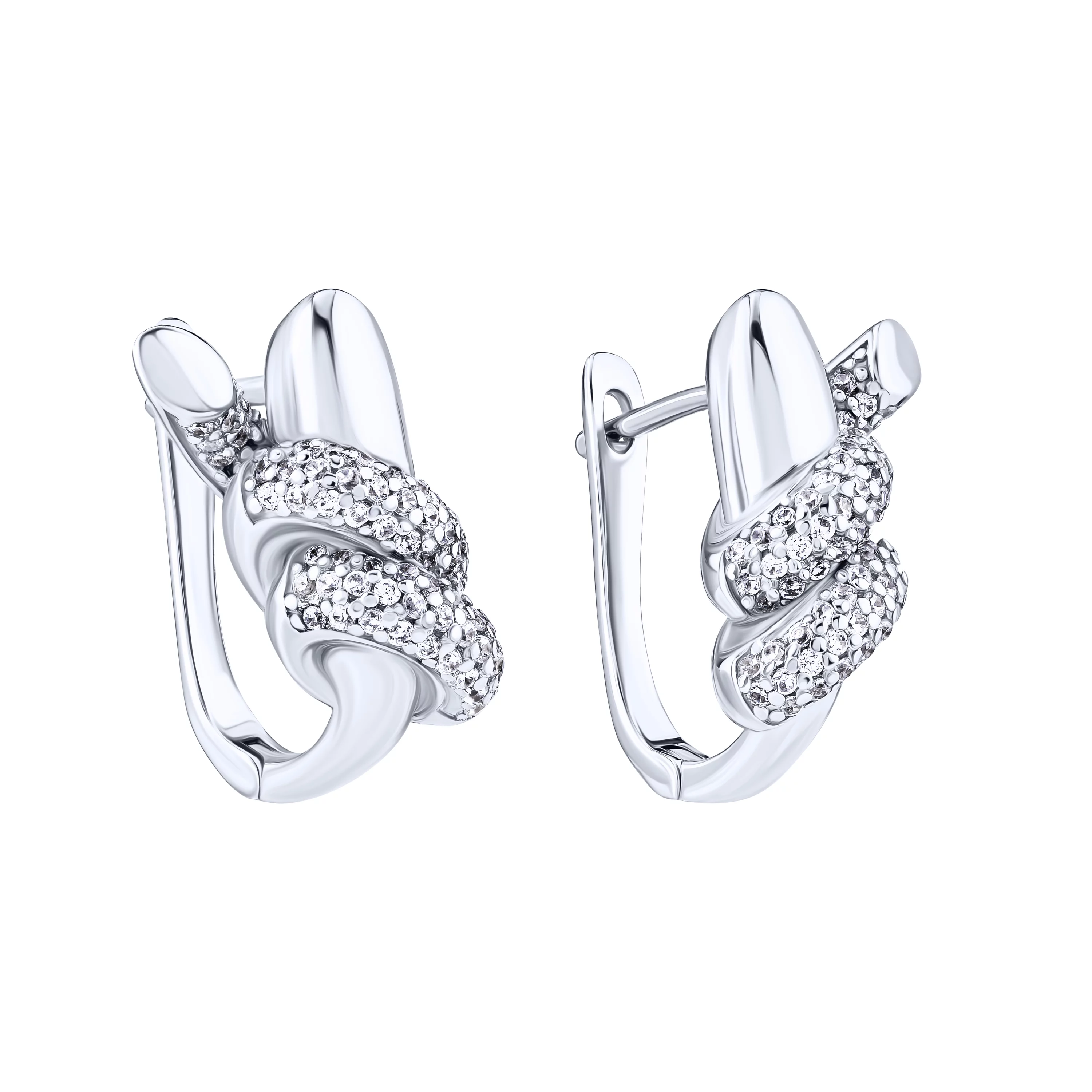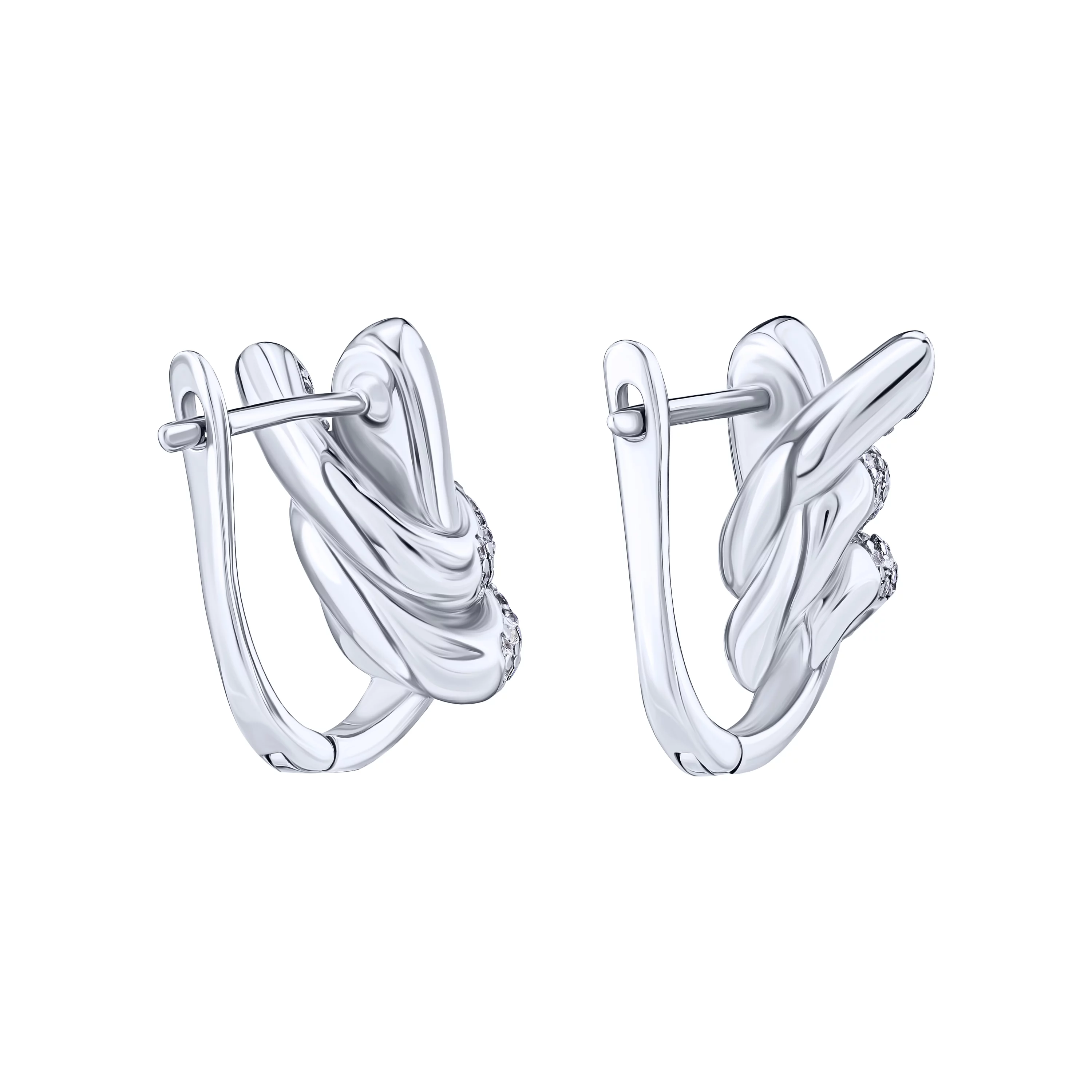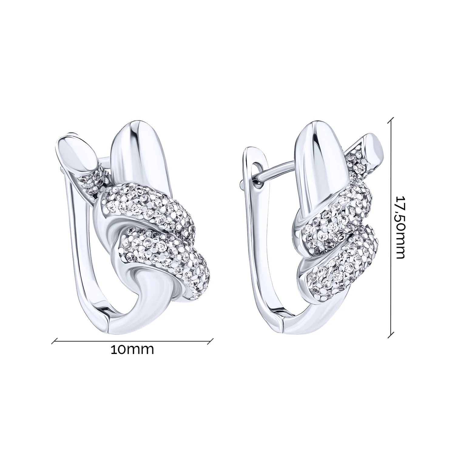 Серебряные стильные сережки-пусеты "Клевер" с ониксом и фианитами - 1940309