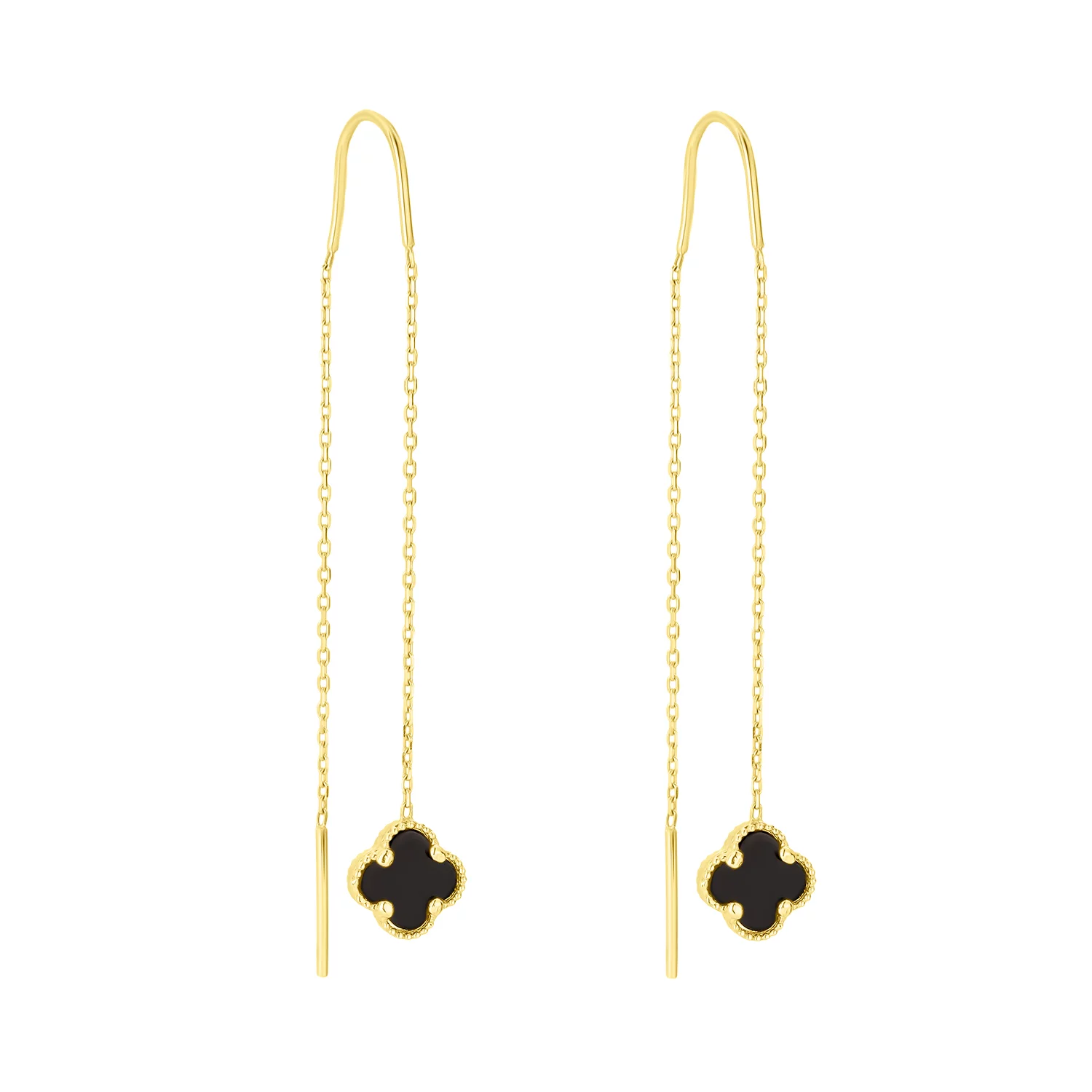 Стильные сережки-гвоздики "Клевер" из красного золота с ониксом - 1878296