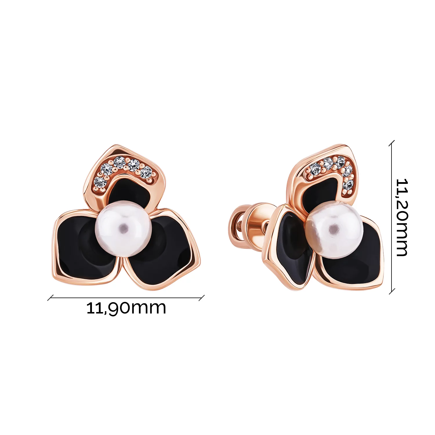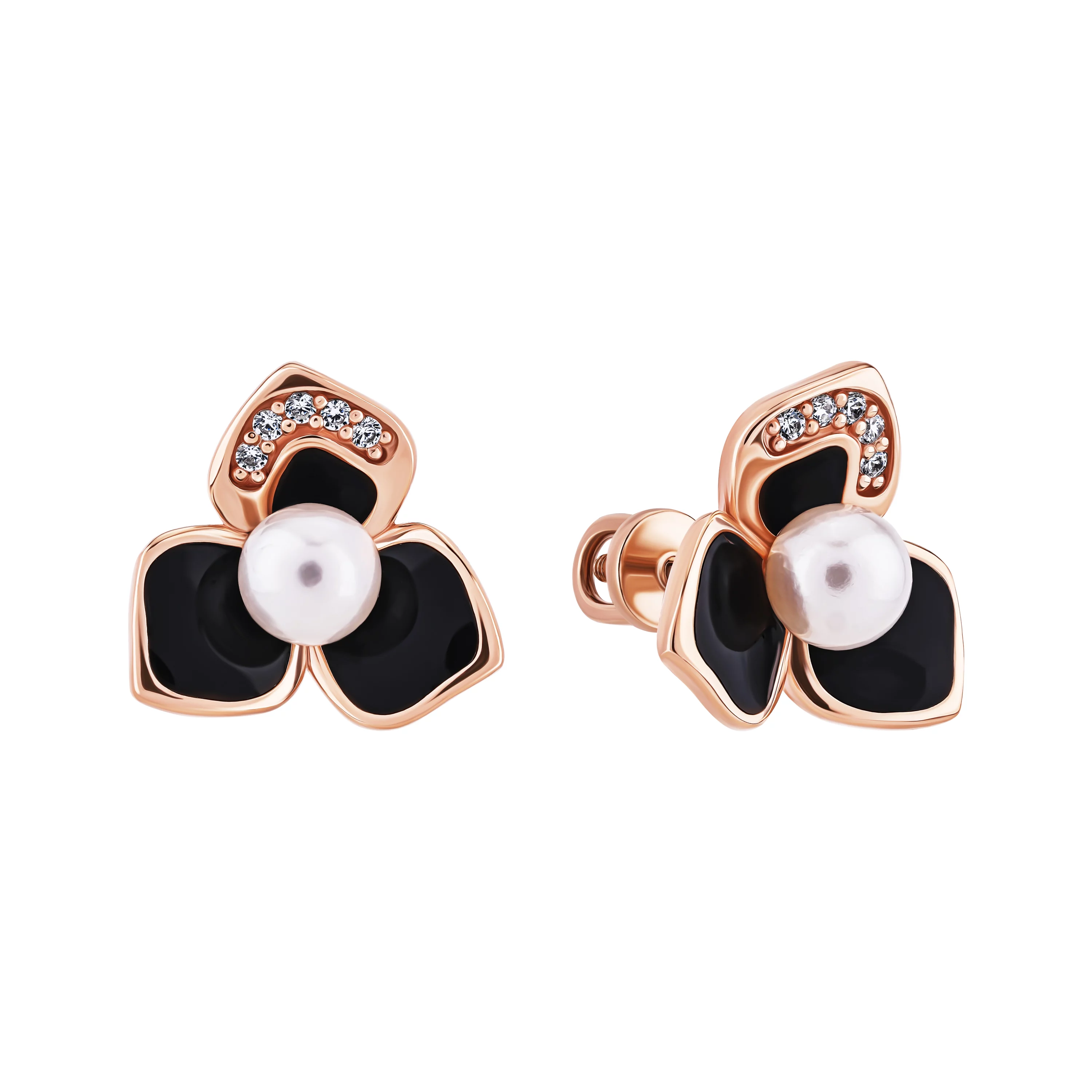 Сережки "Флора" в красном золоте с эмалью, жемчугом и фианитами - 1927692