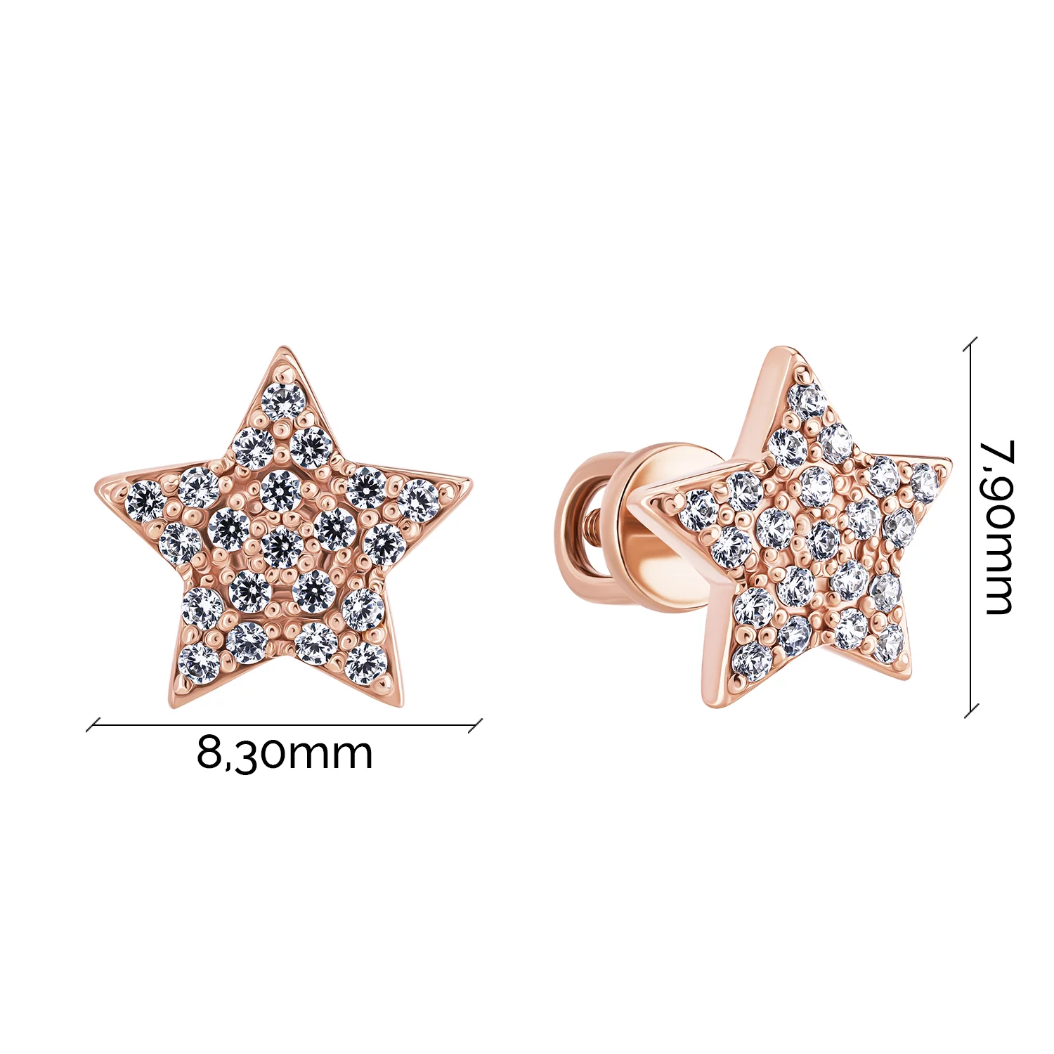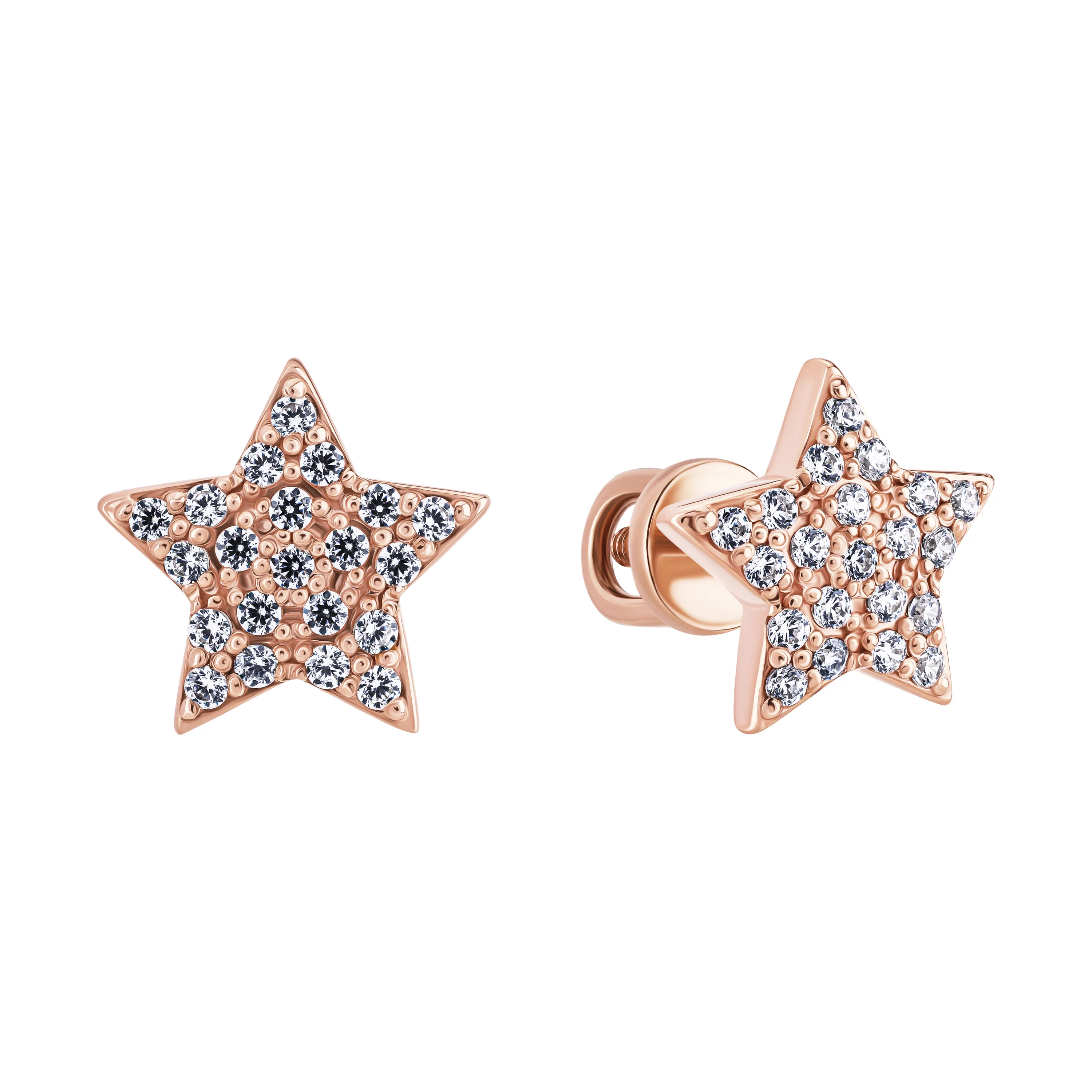 Сережки-гвоздики "Шестиугольник" из красного золота с фианитами - 1851507